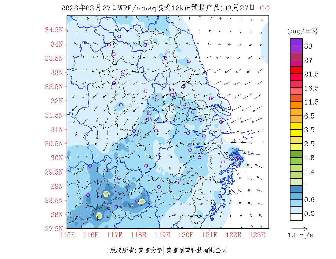 长三角地区浓度预报场(12km)