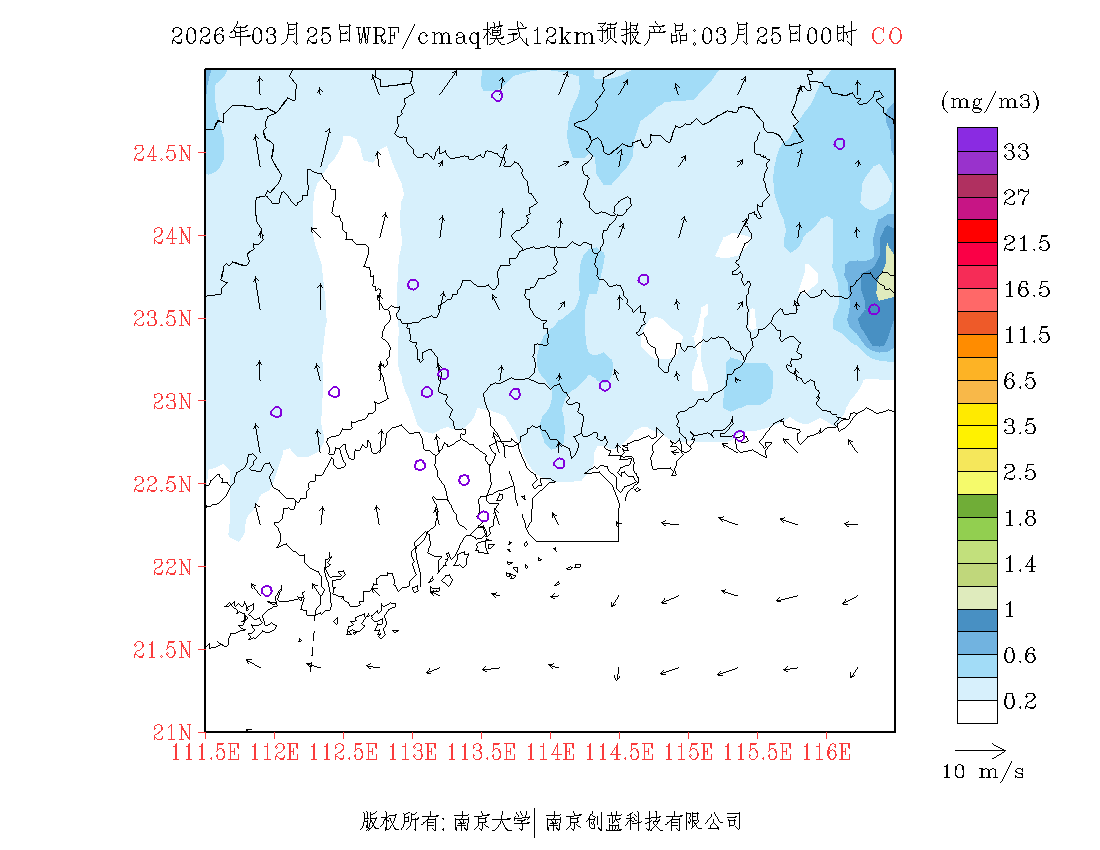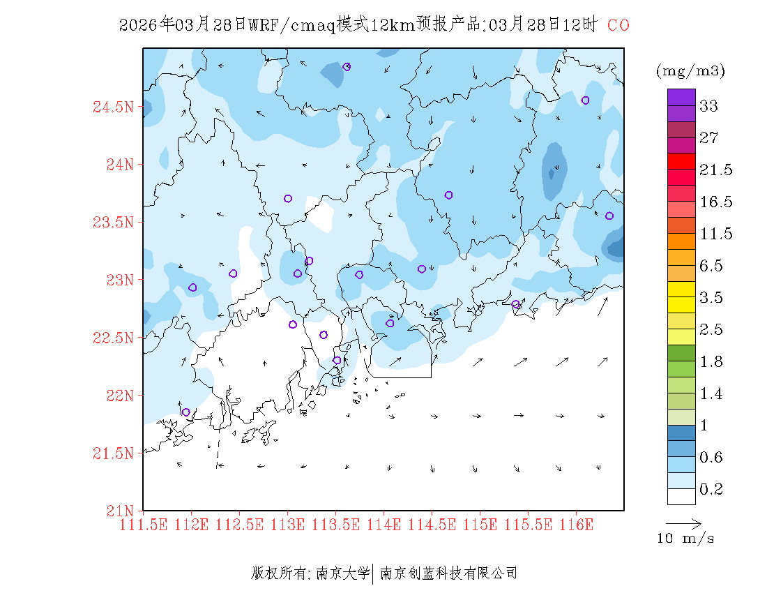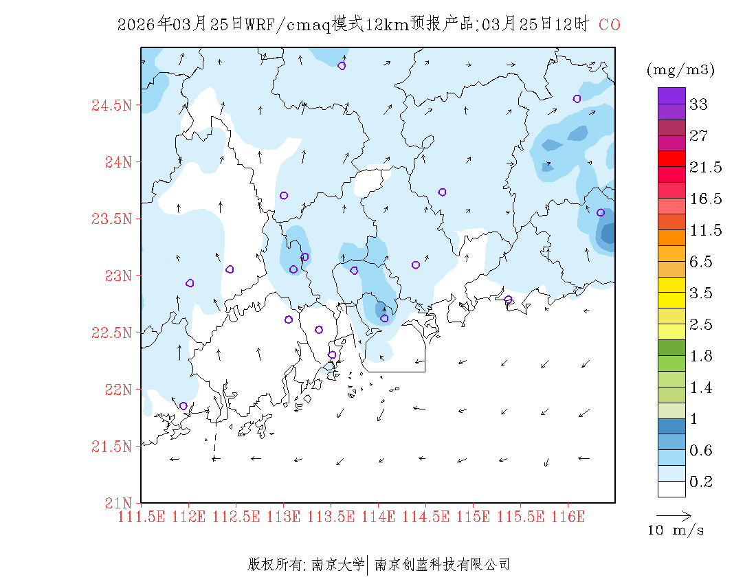 珠三角地区浓度预报场(12km)