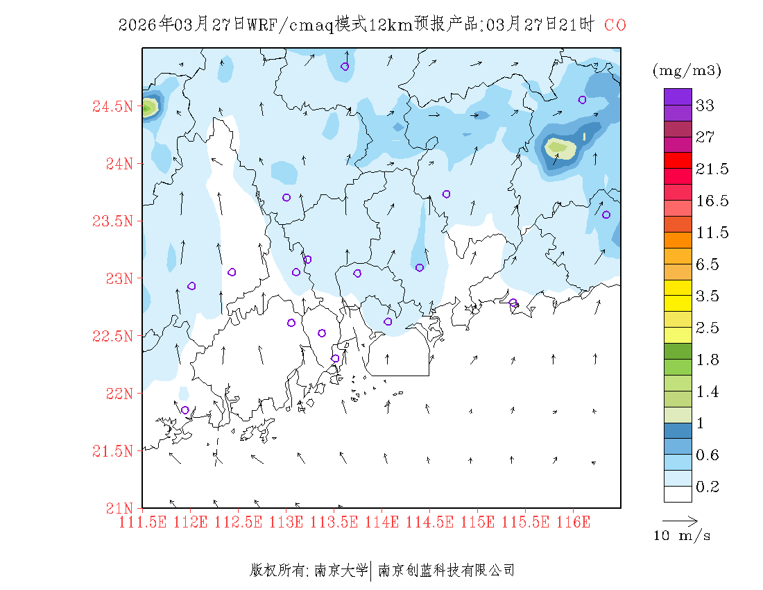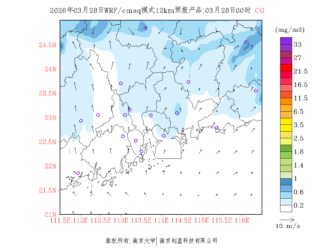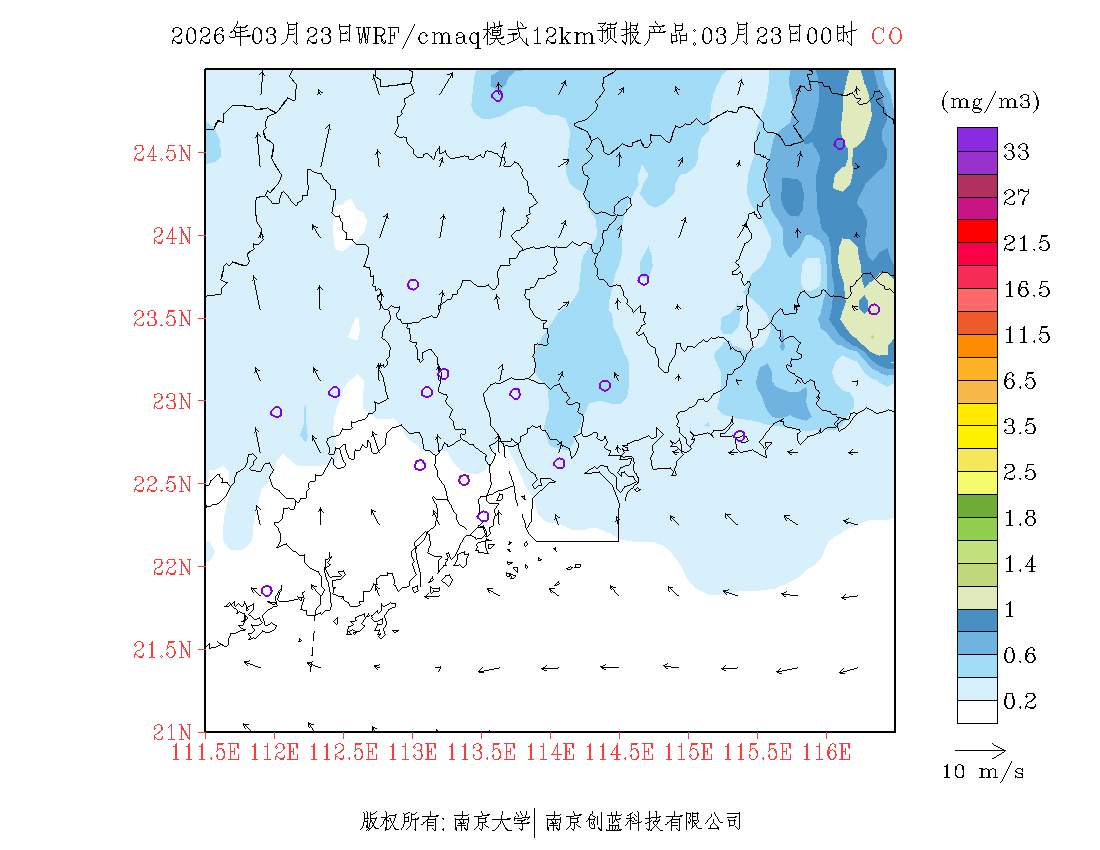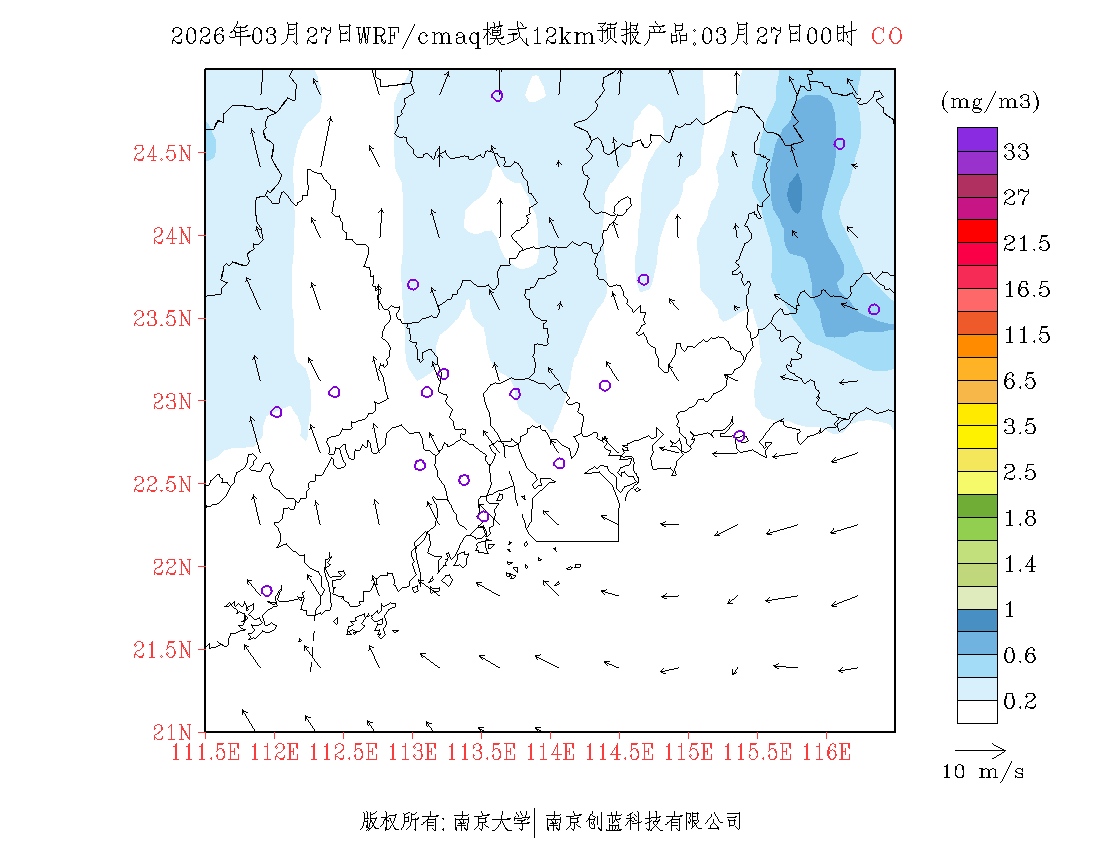 珠三角地区浓度预报场(12km)