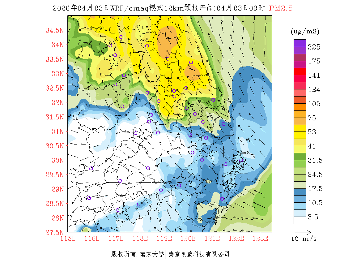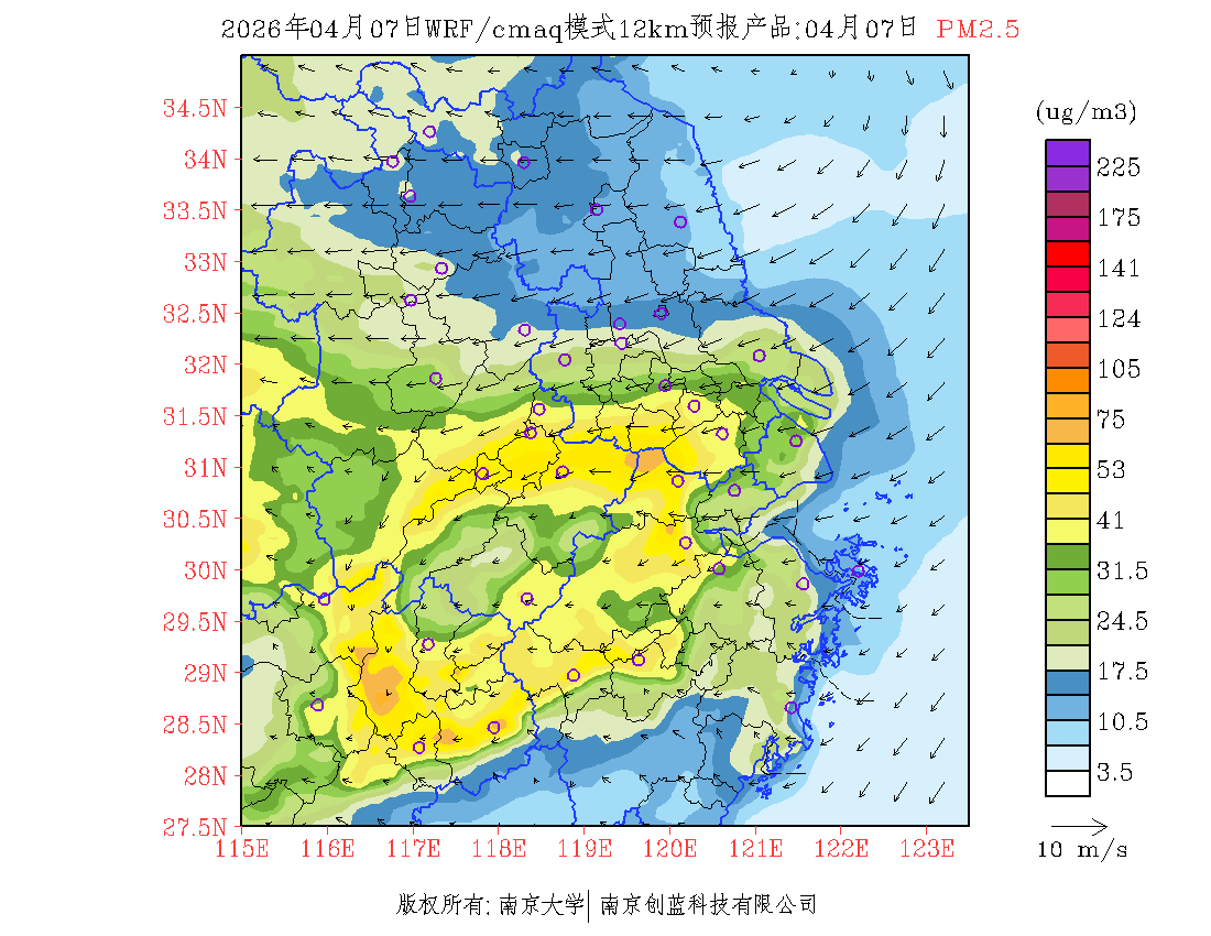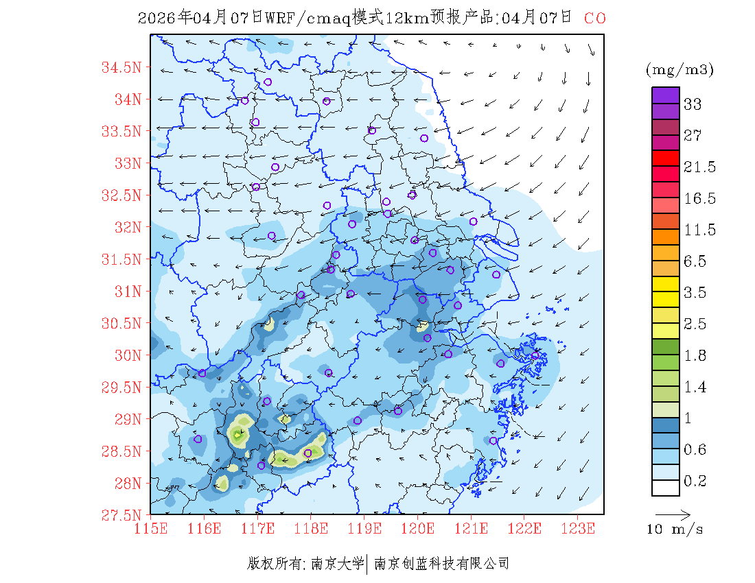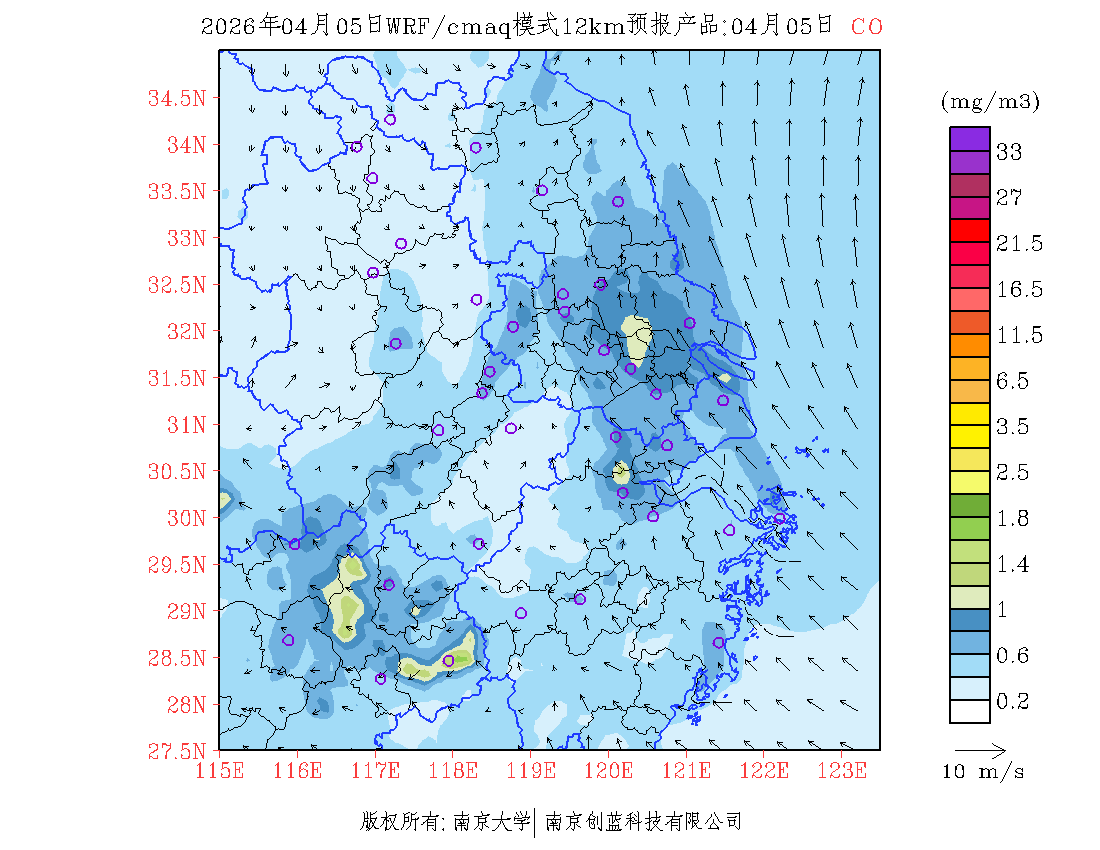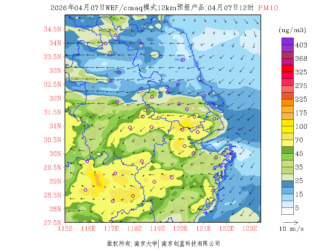 长三角地区浓度预报场(12km)