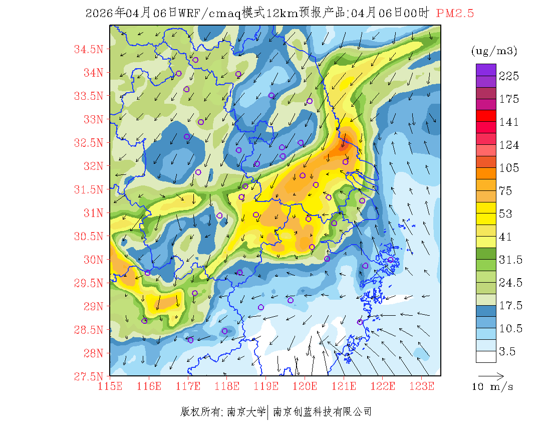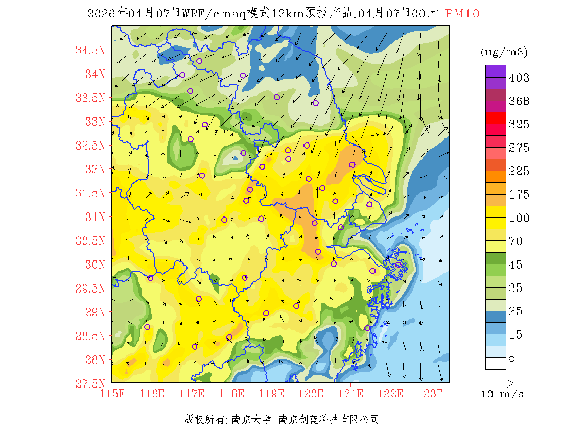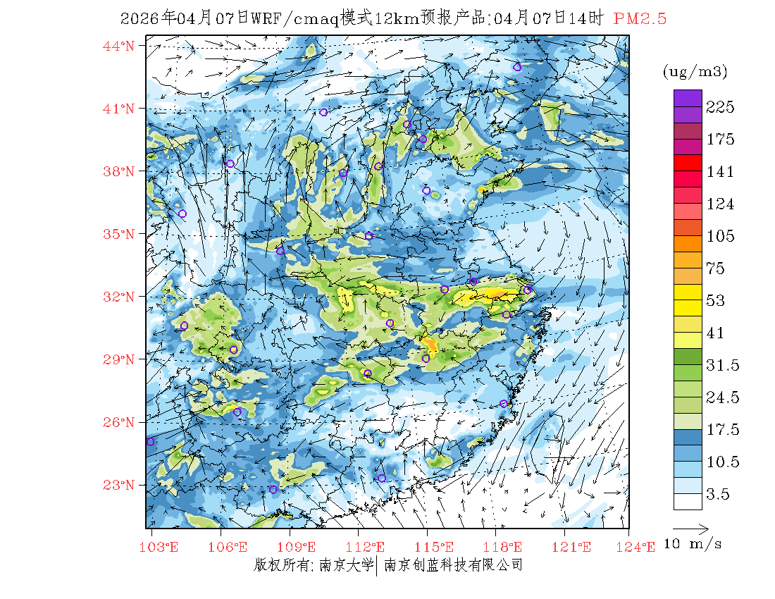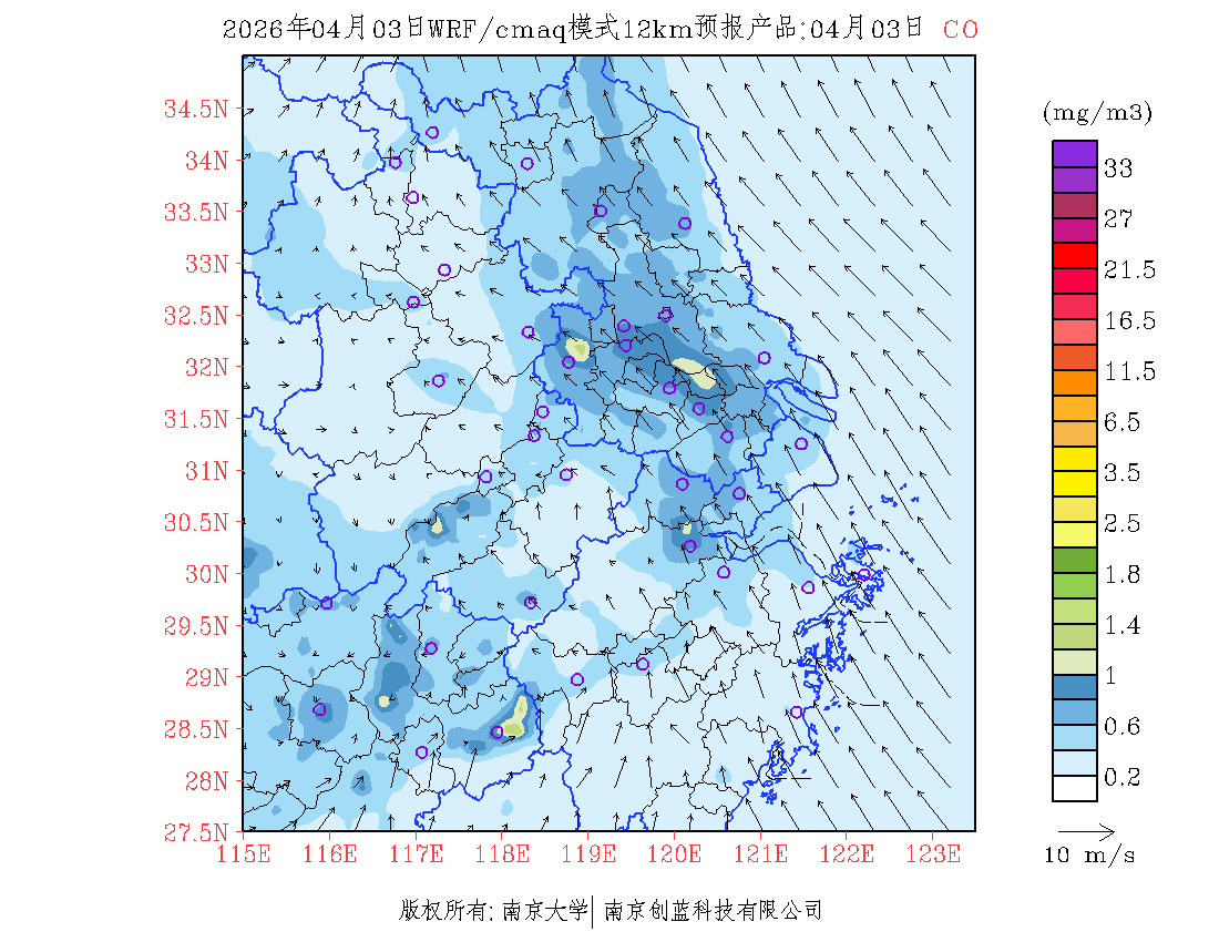 长三角地区浓度预报场(12km)