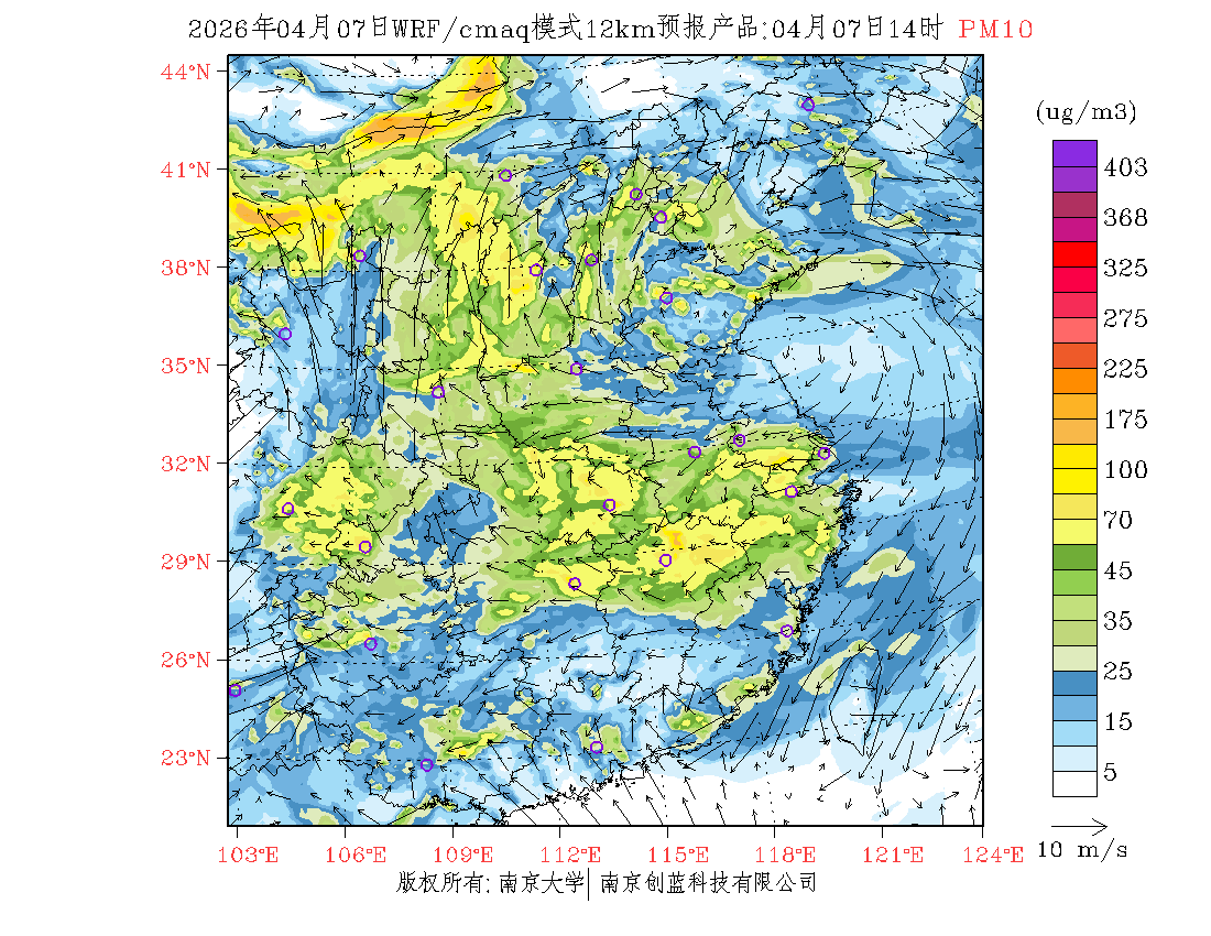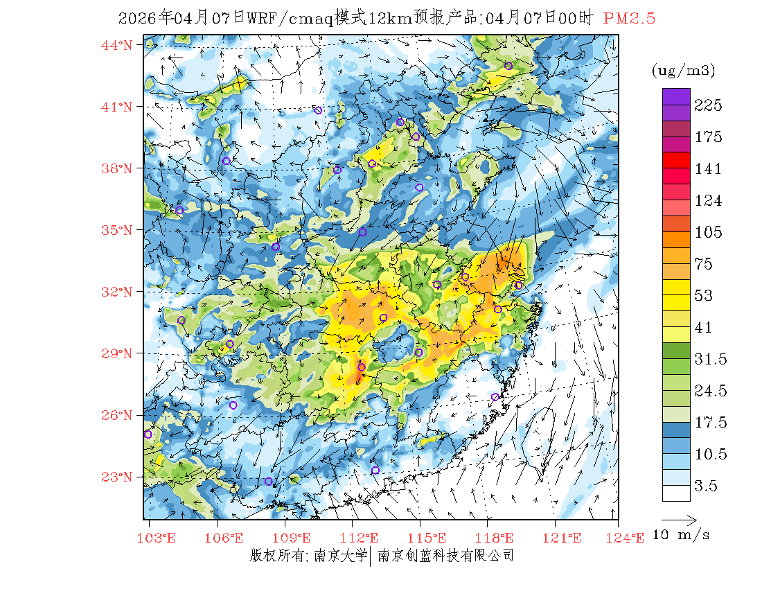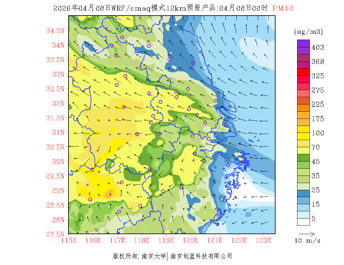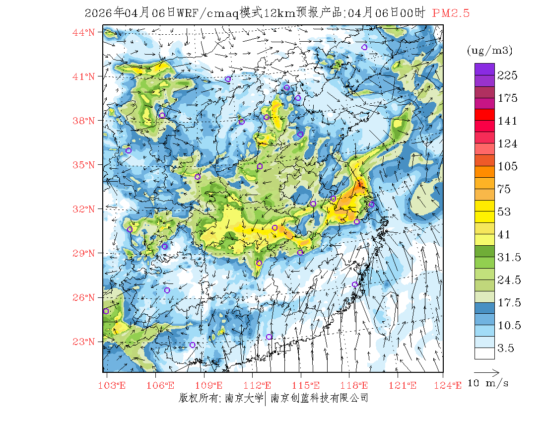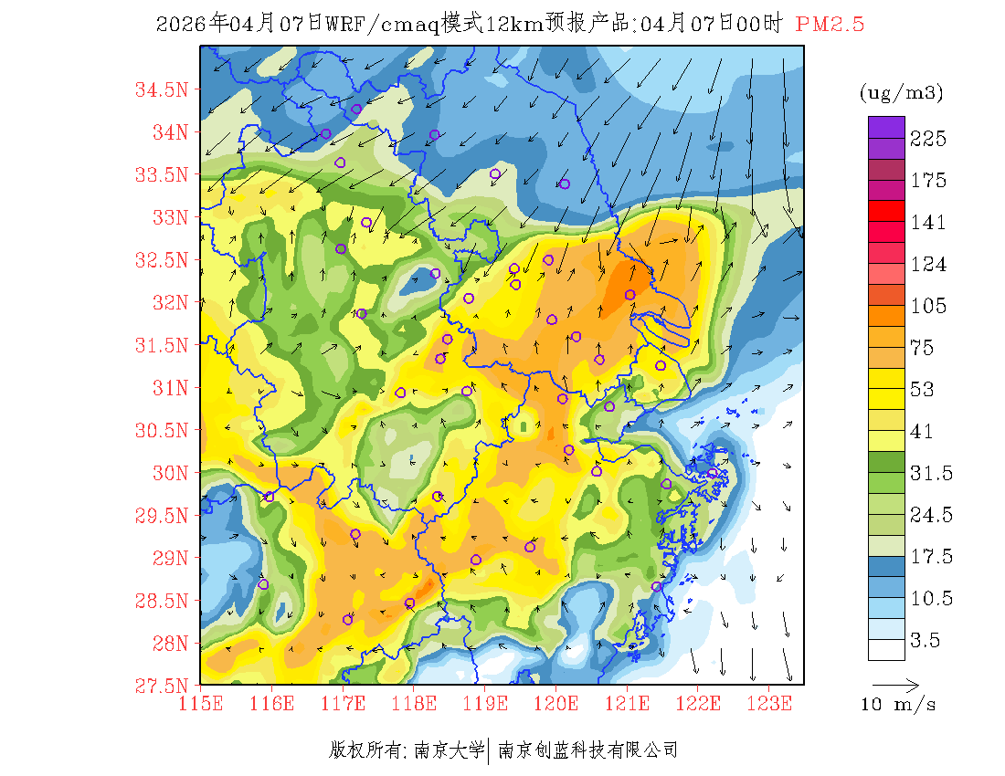 长三角地区浓度预报场(12km)