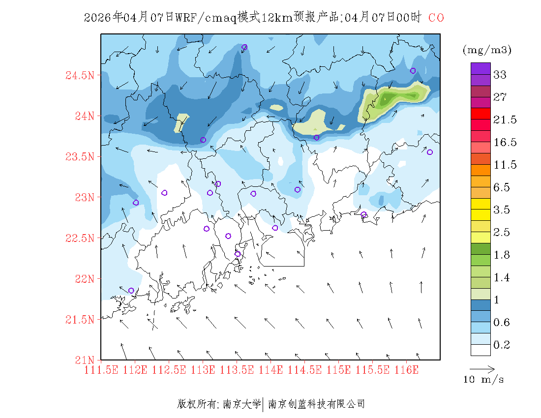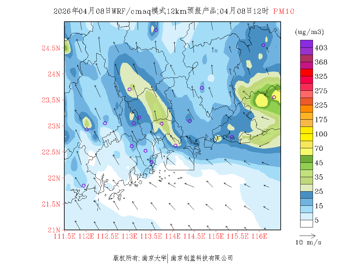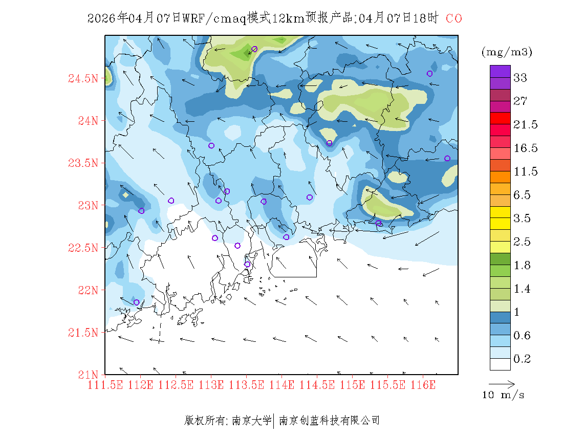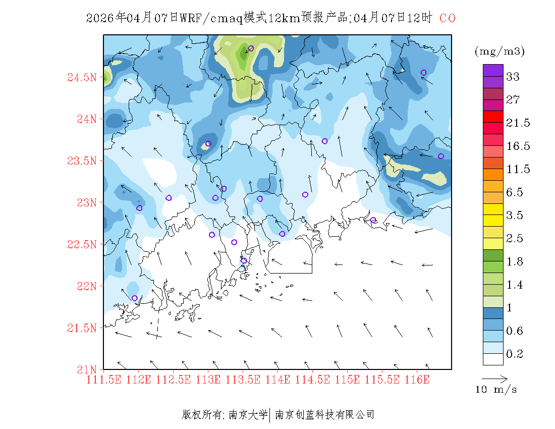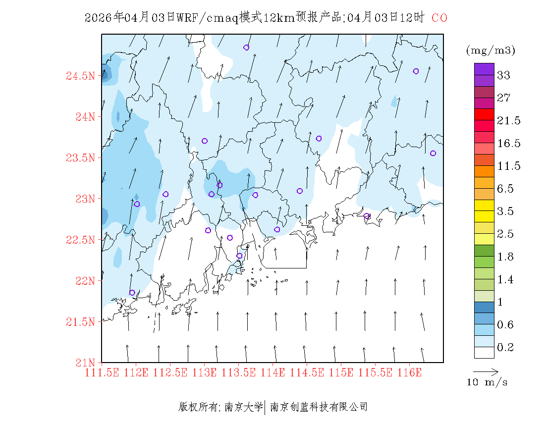 珠三角地区浓度预报场(12km)