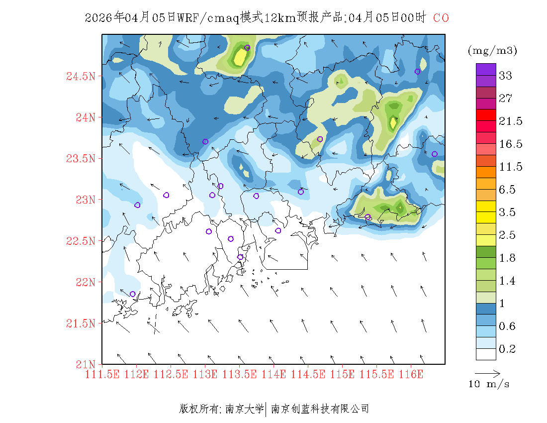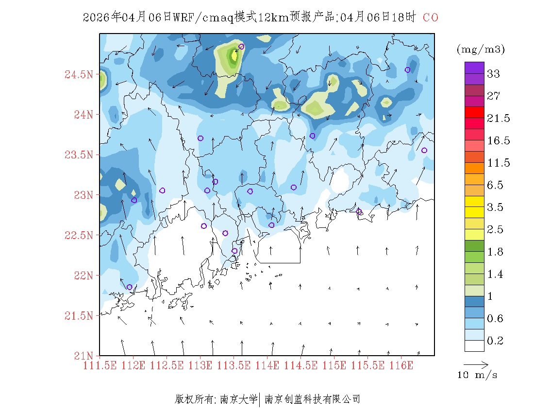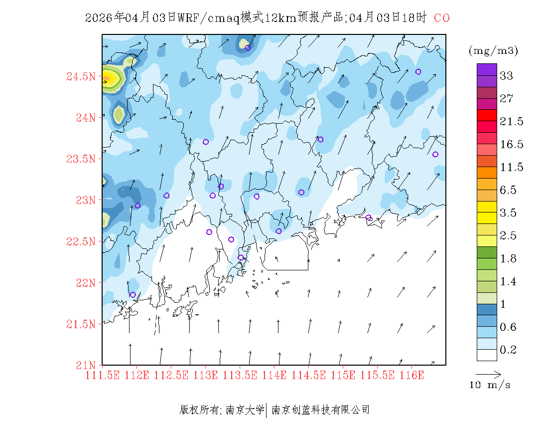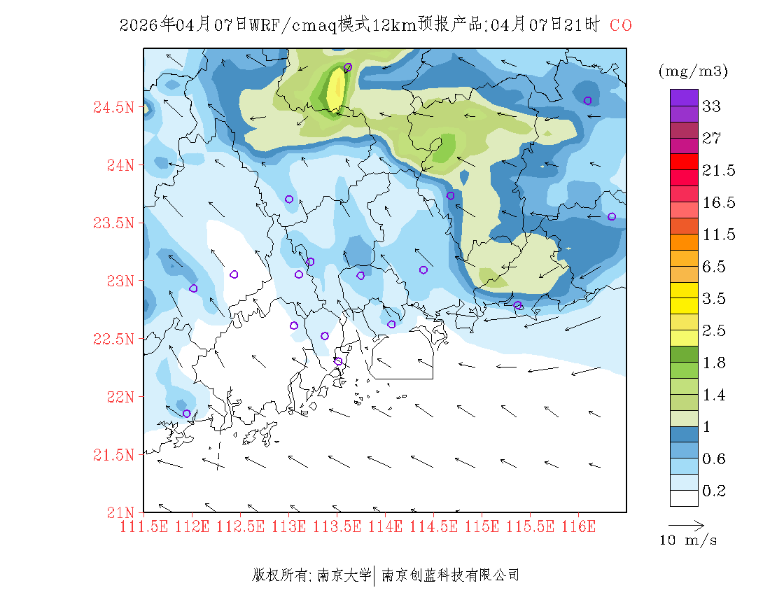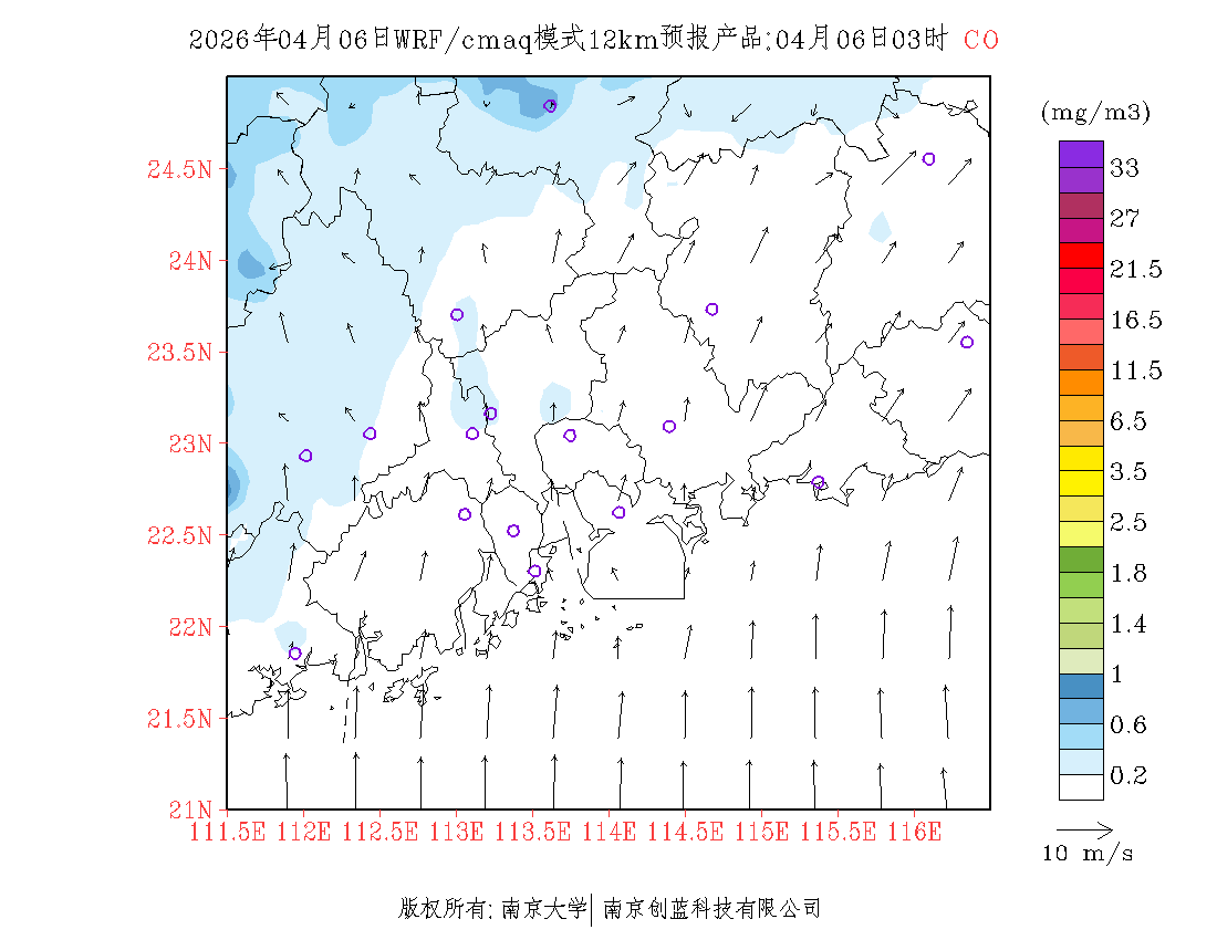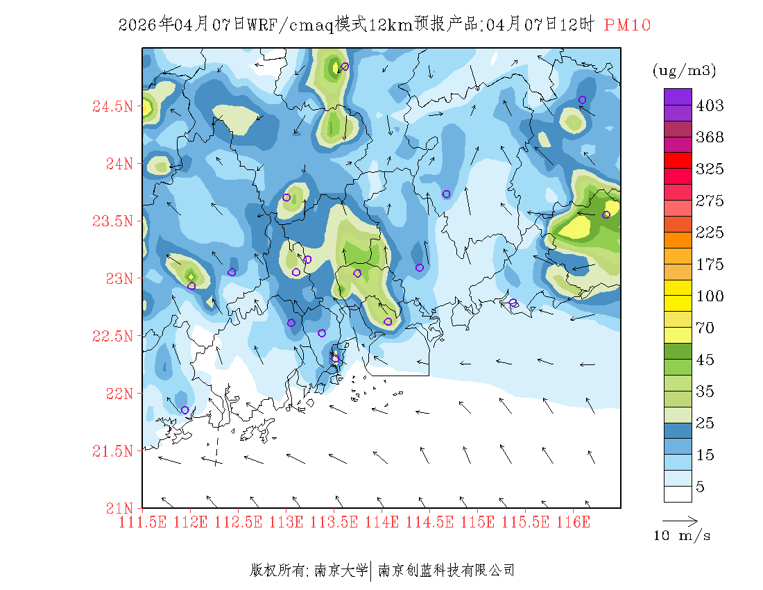 珠三角地区浓度预报场(12km)