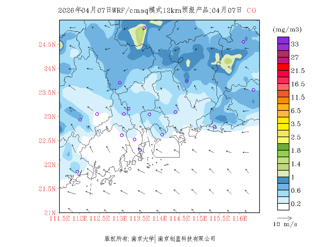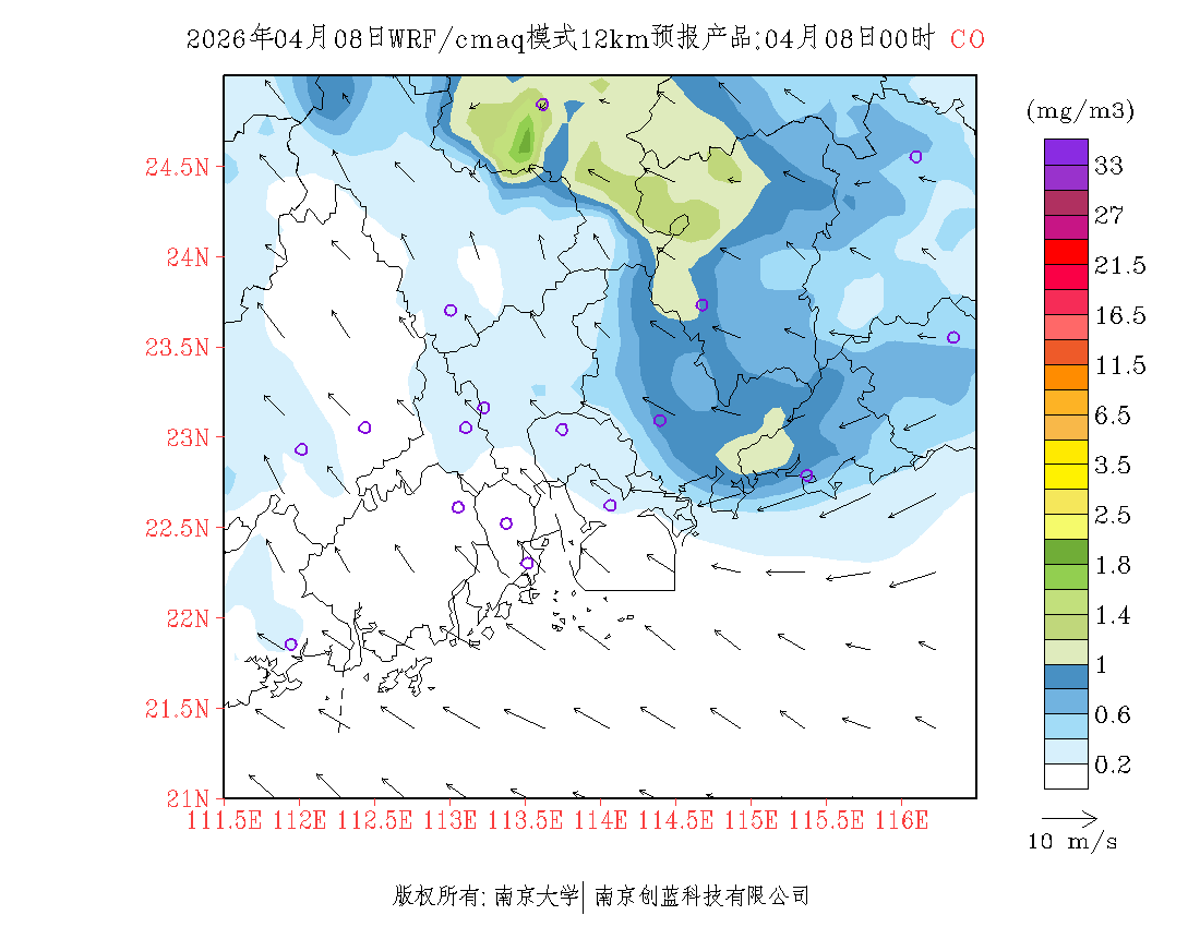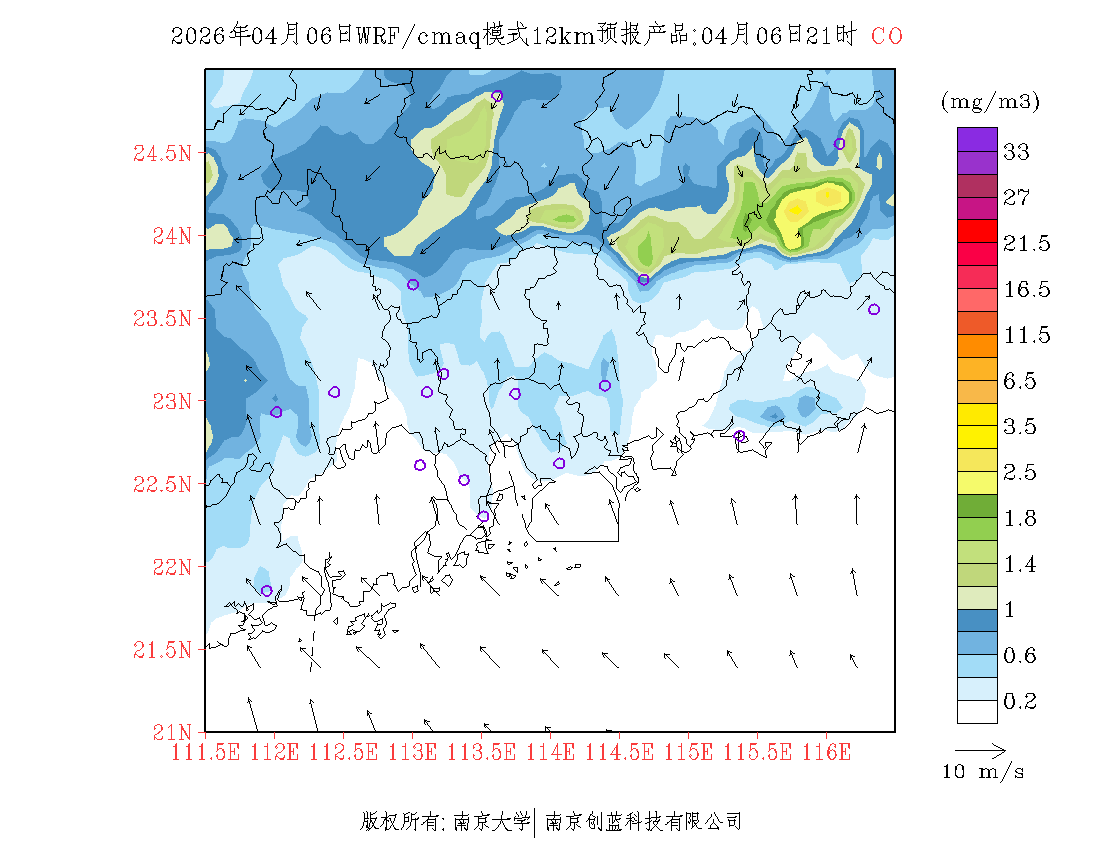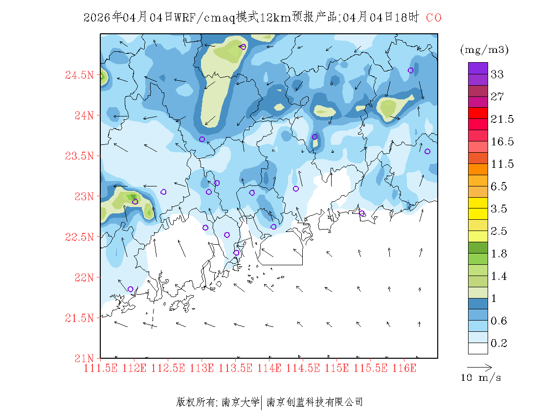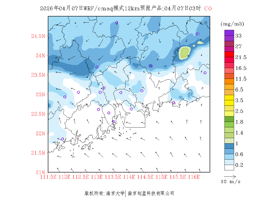 珠三角地区浓度预报场(12km)