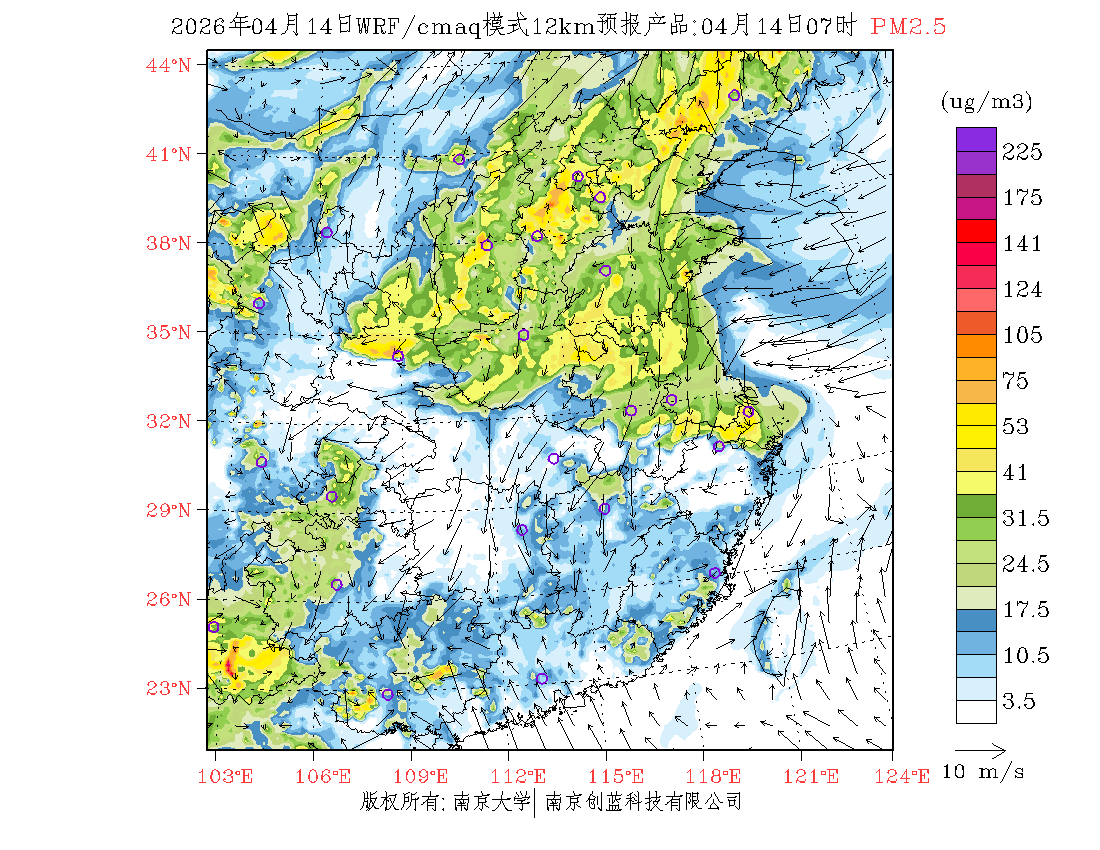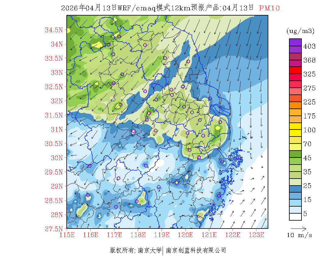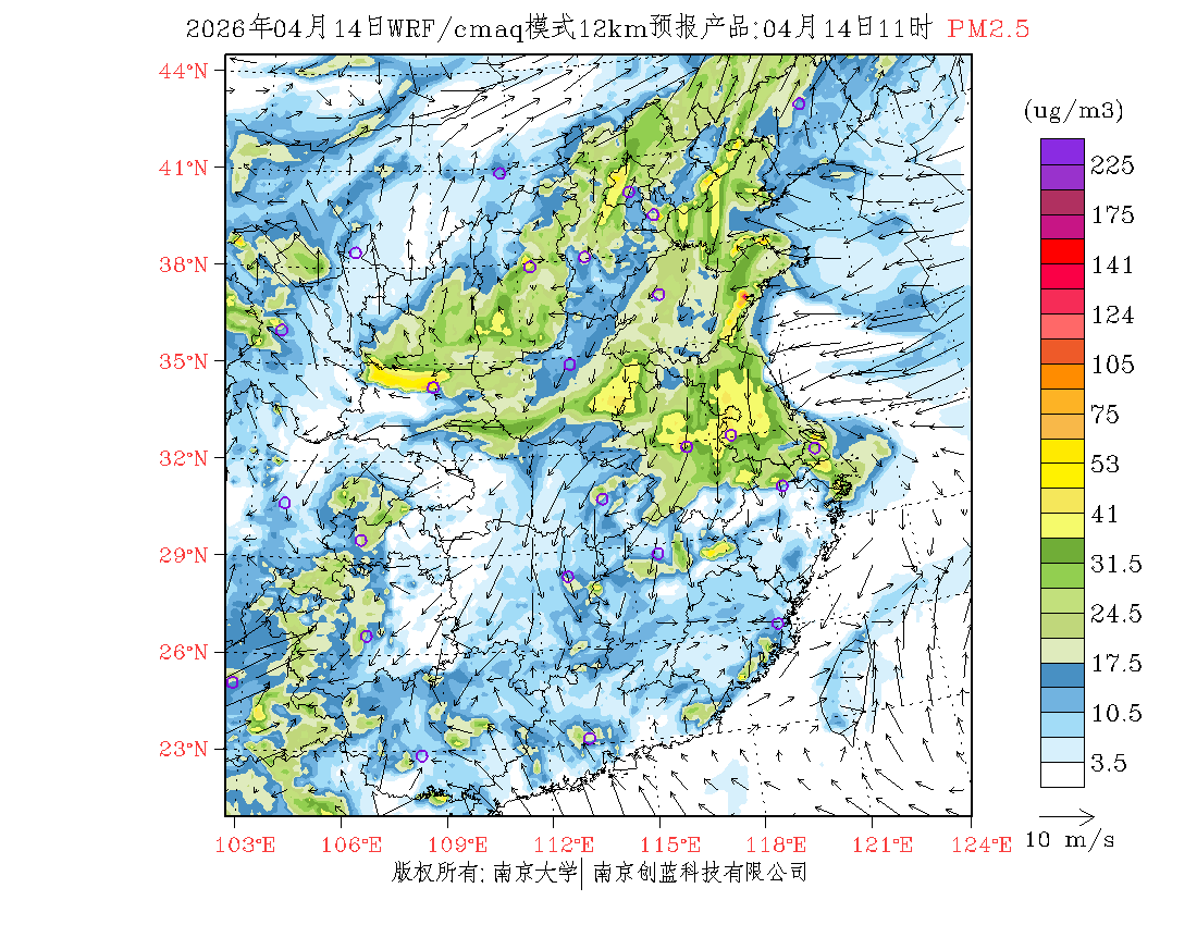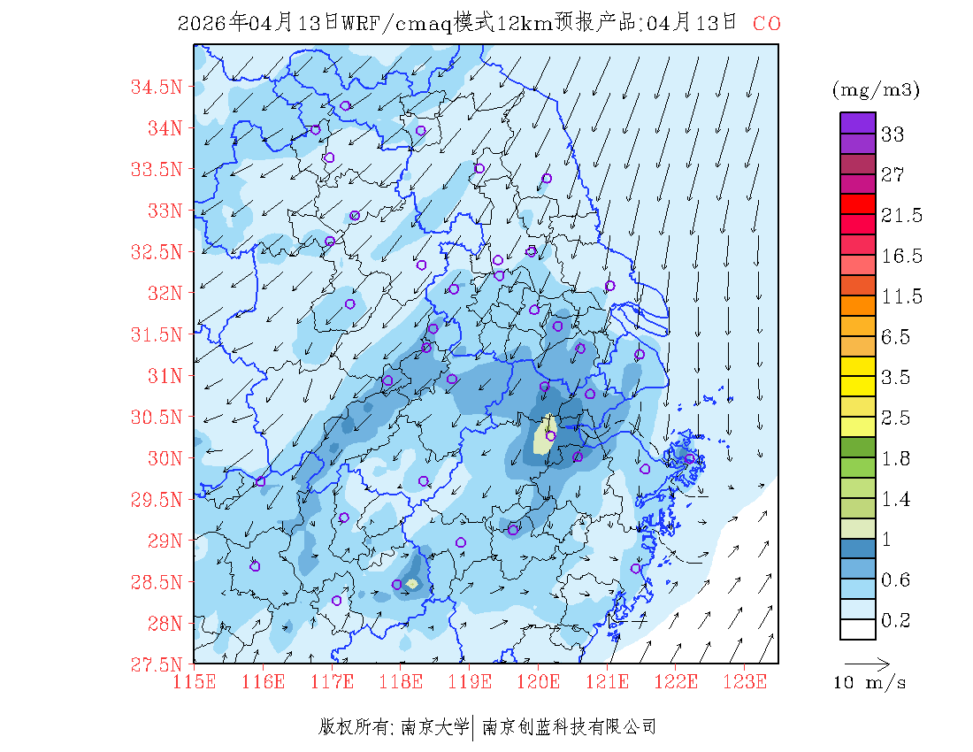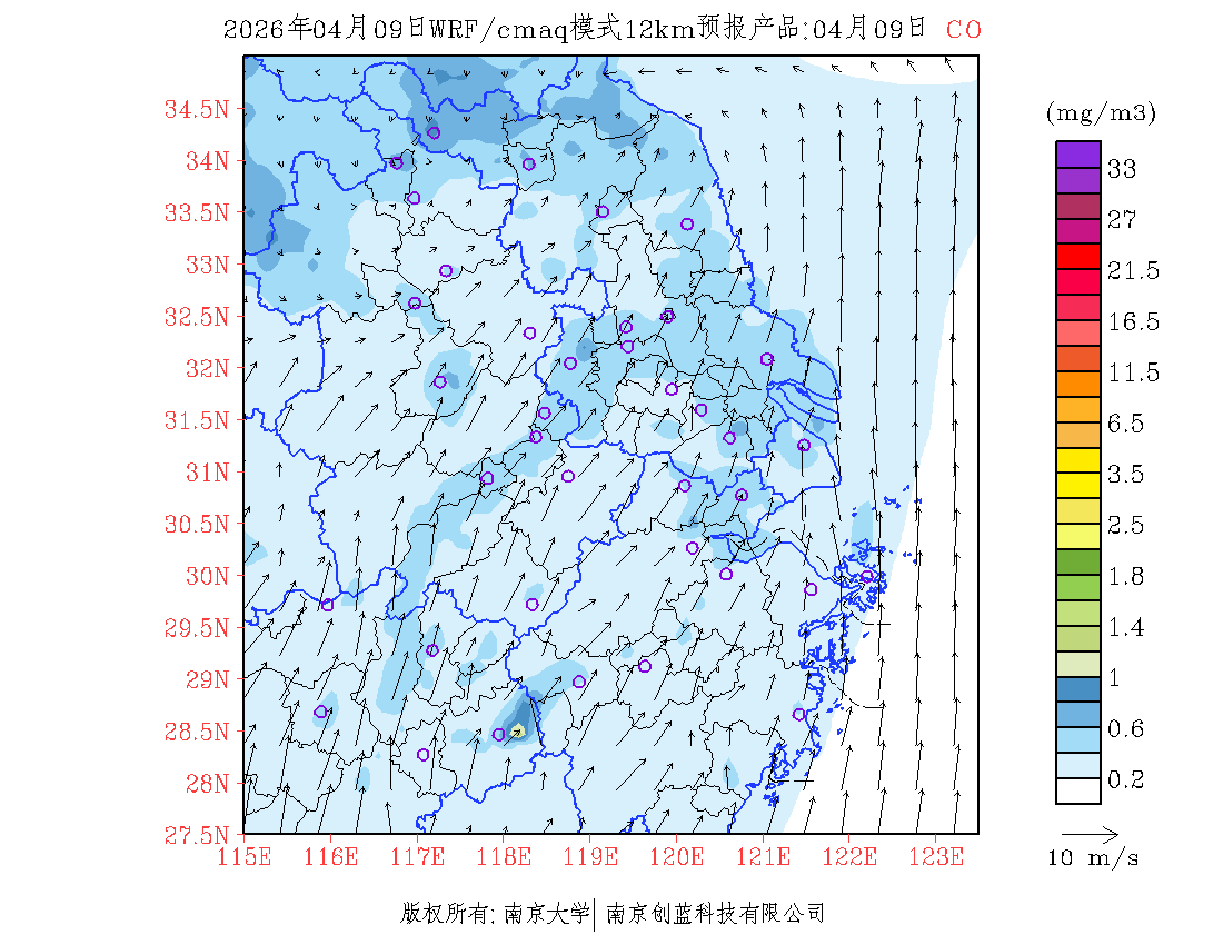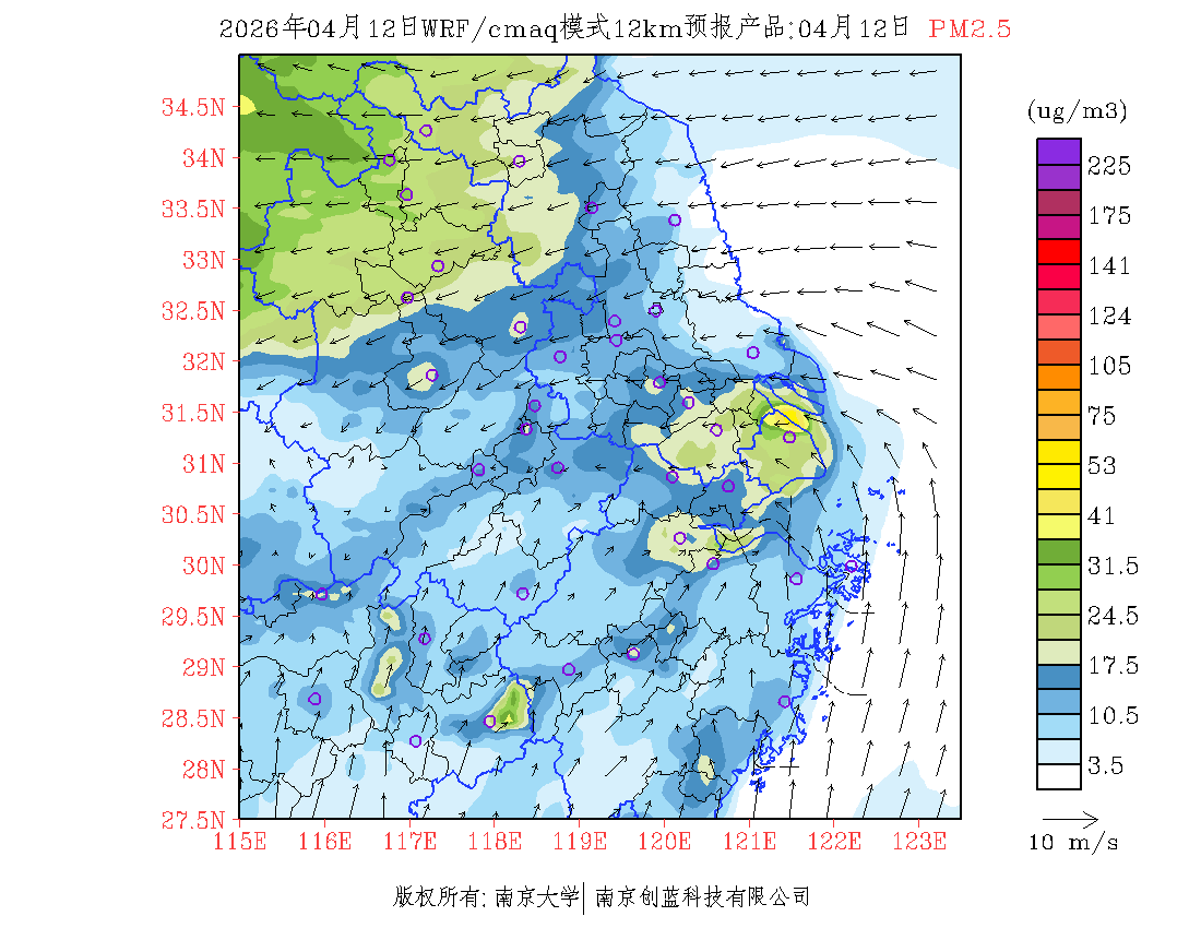 长三角地区浓度预报场(12km)