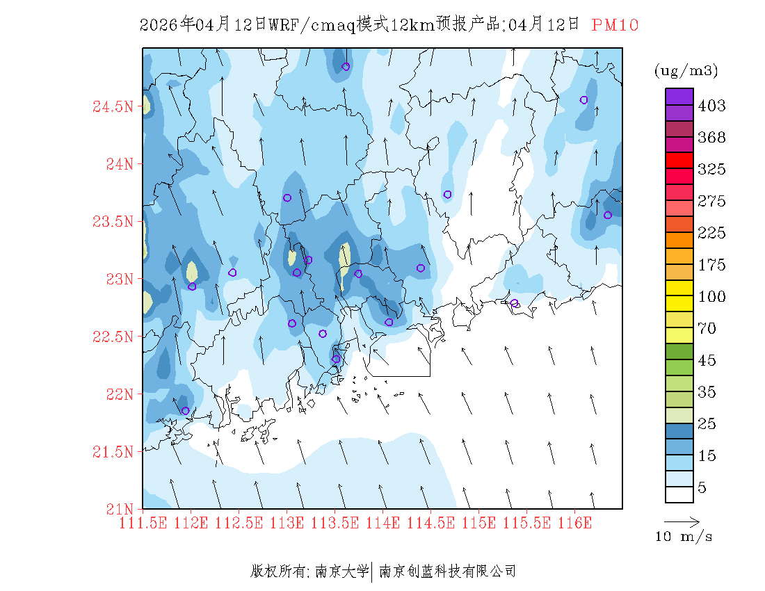珠三角地区浓度预报场(12km)