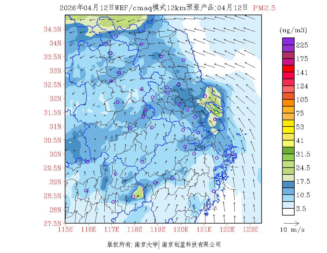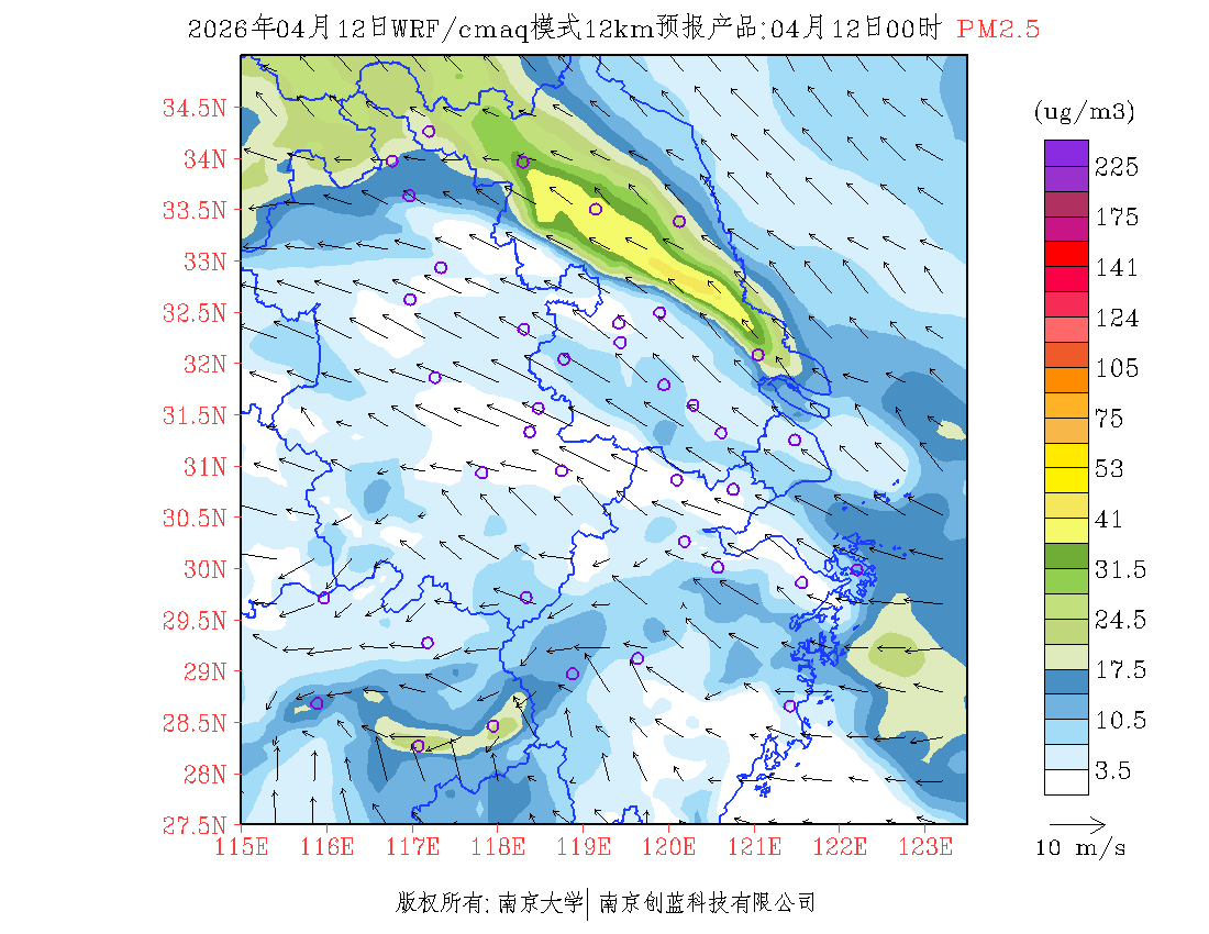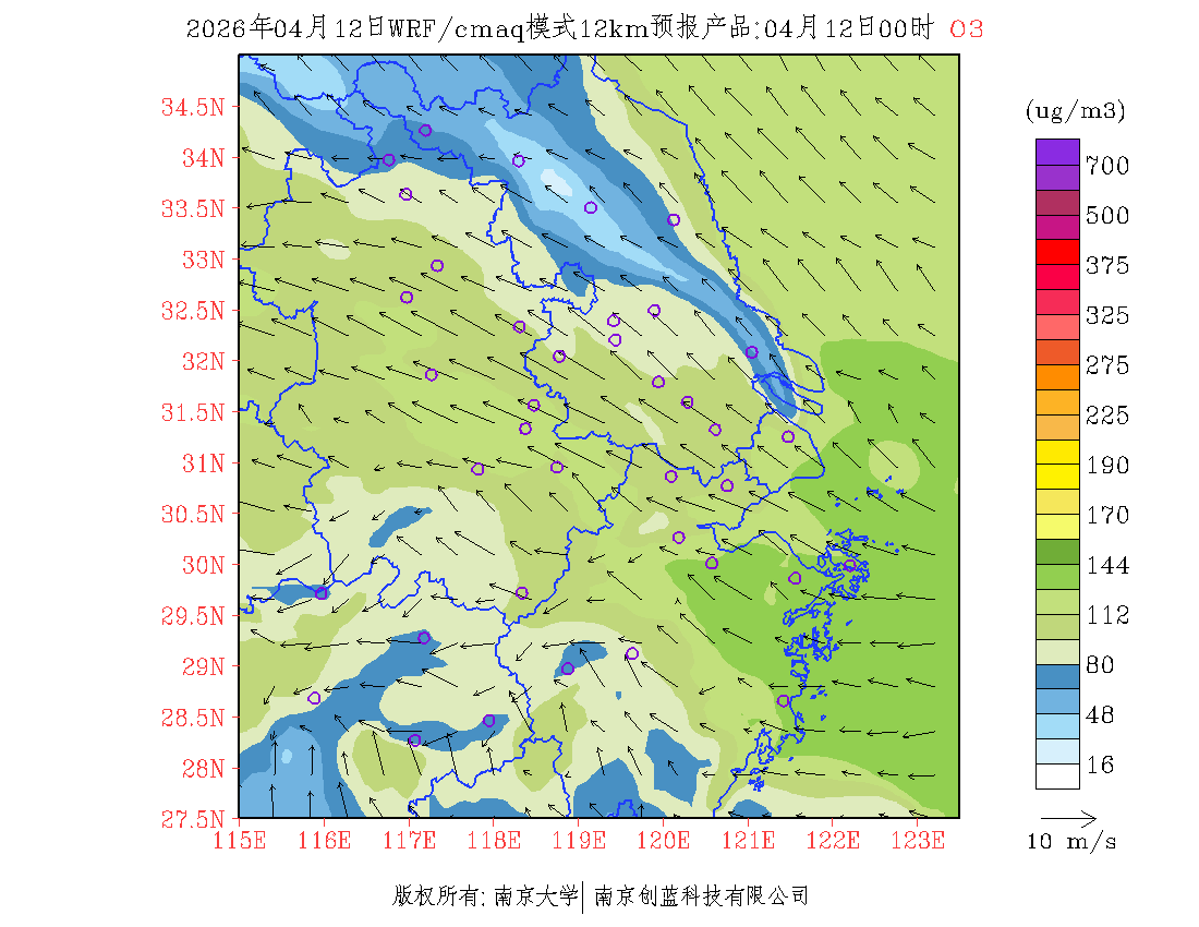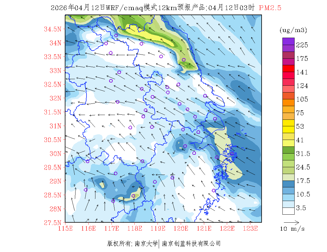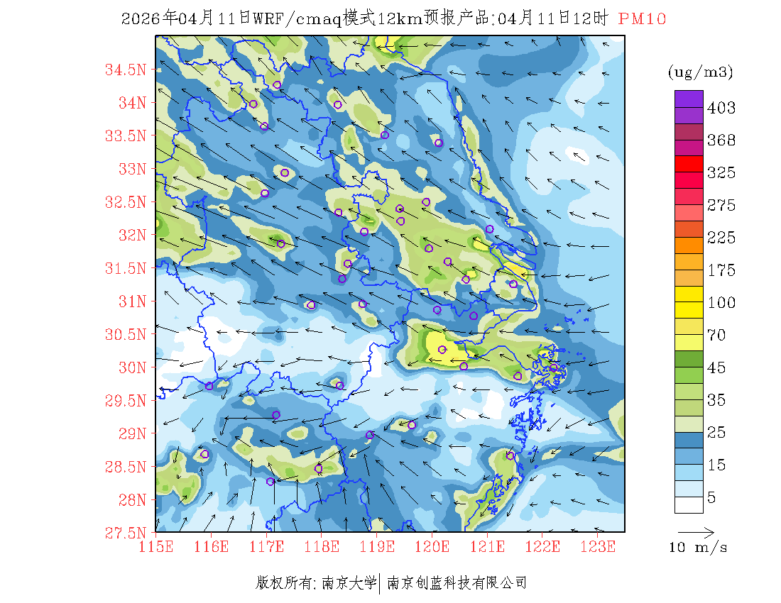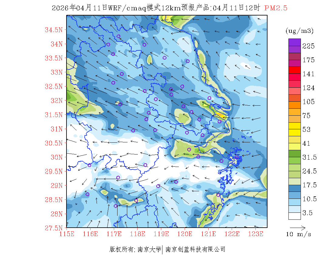 长三角地区浓度预报场(12km)