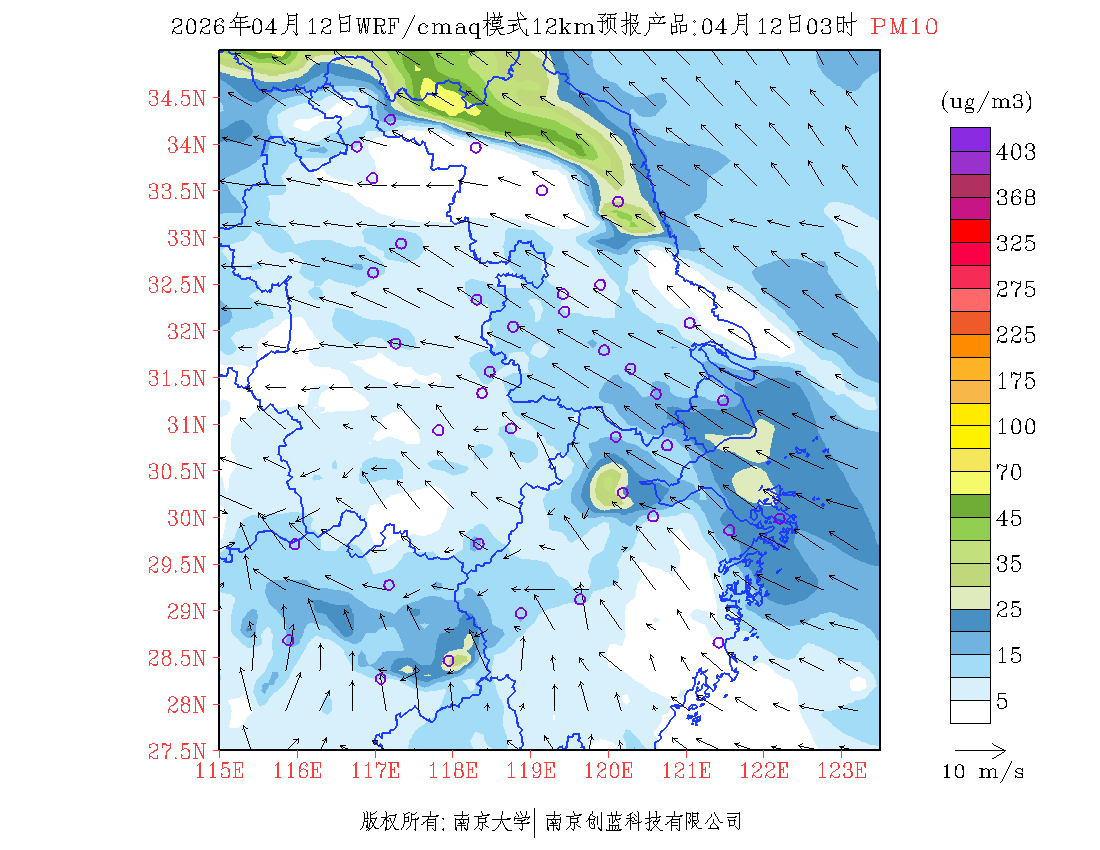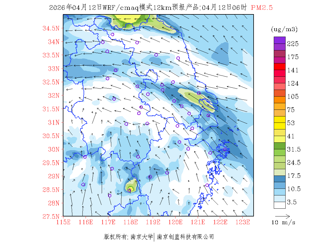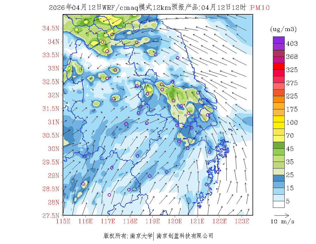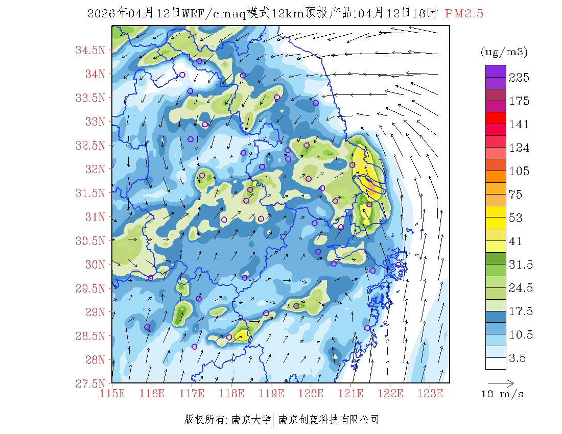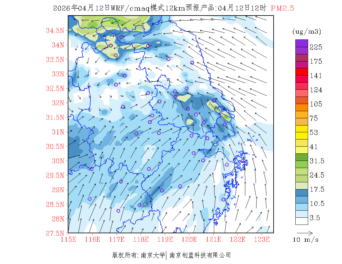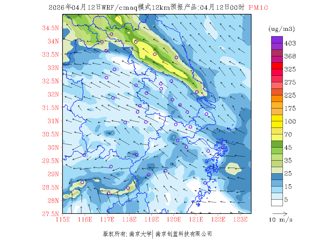 长三角地区浓度预报场(12km)