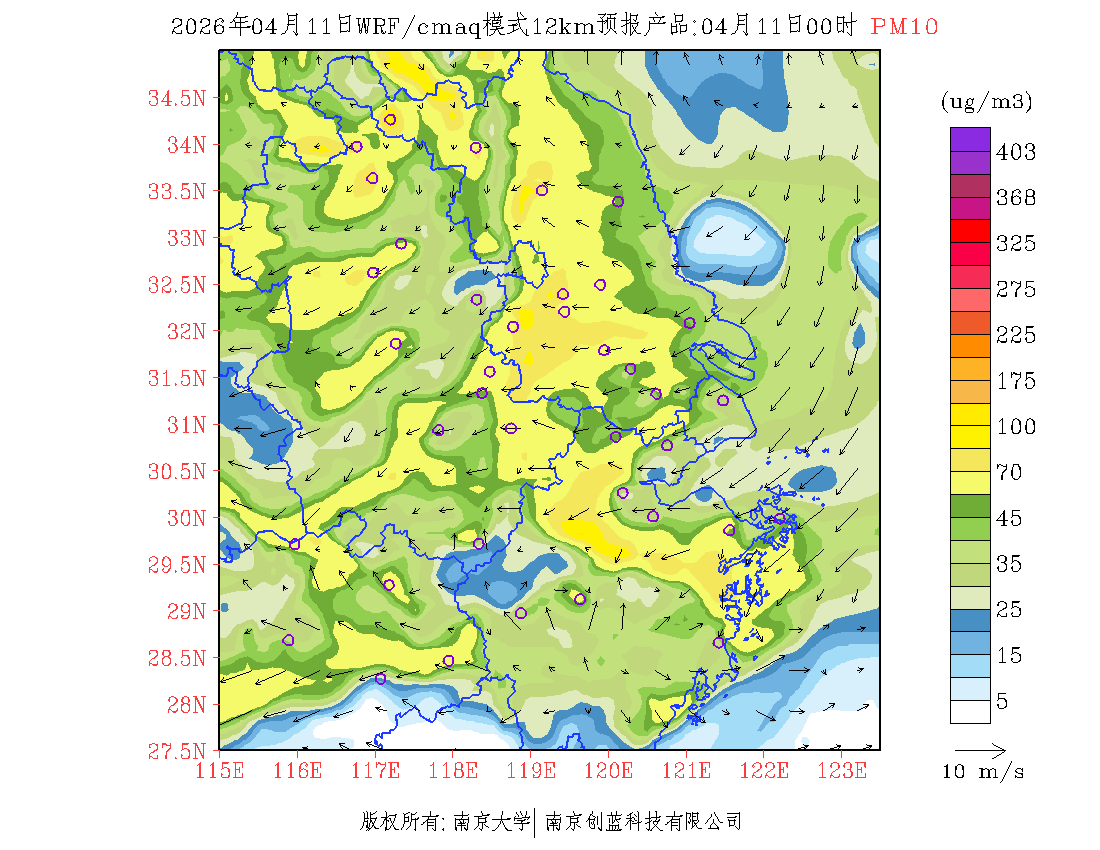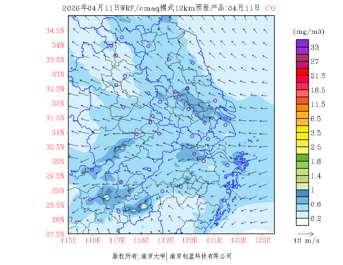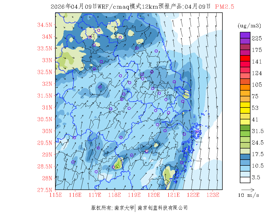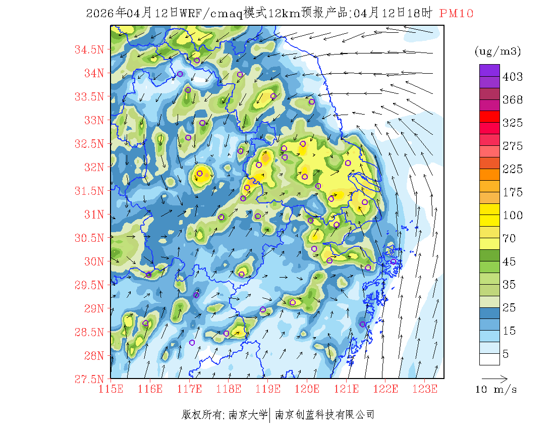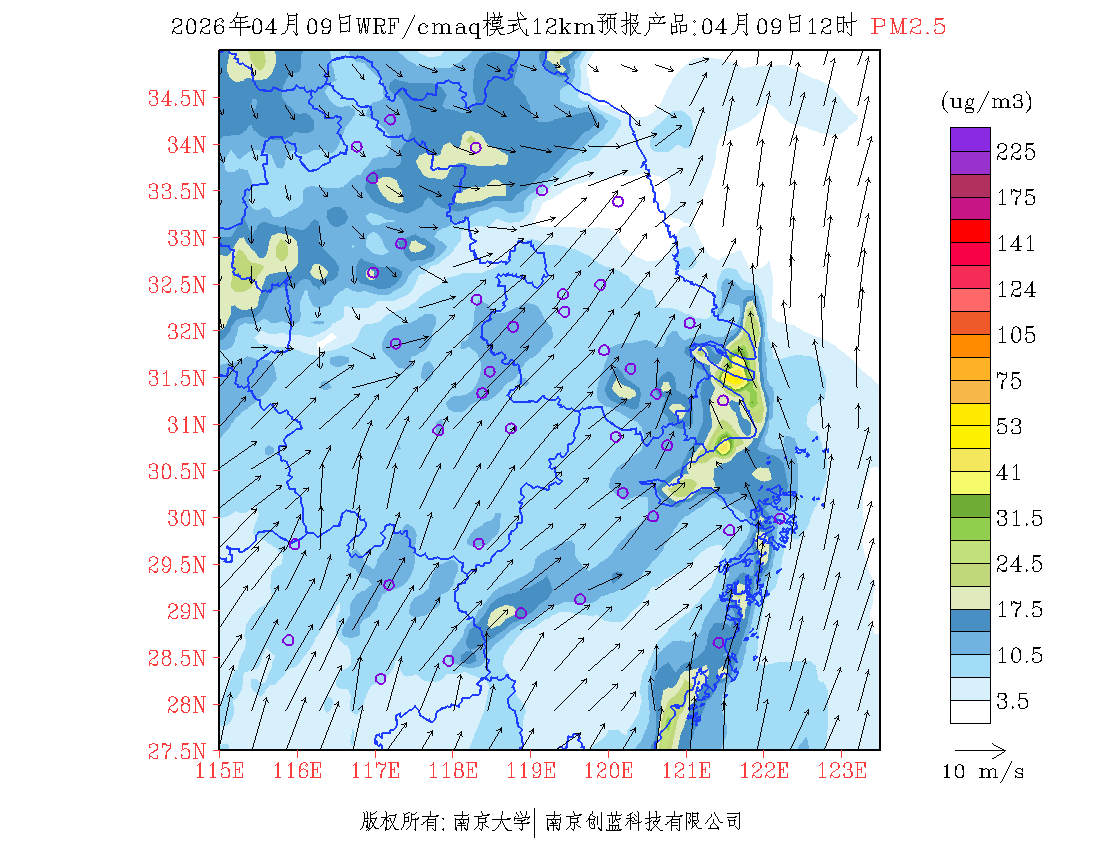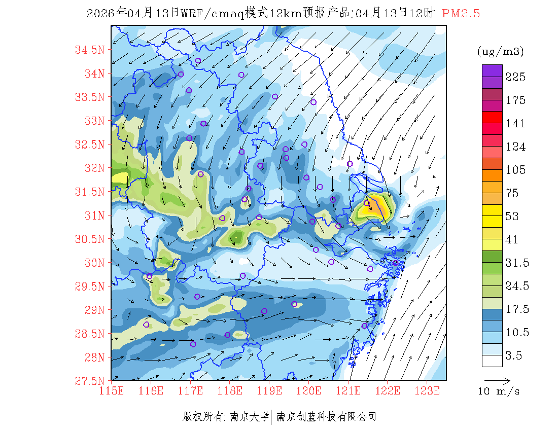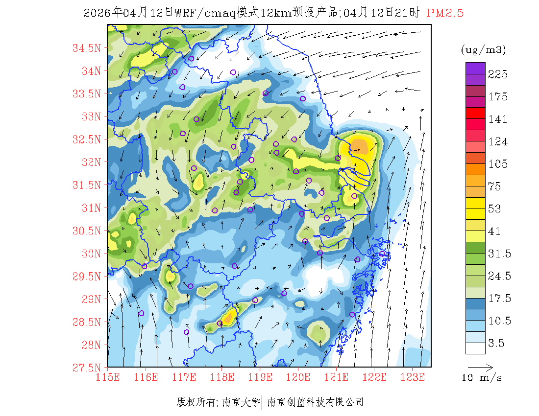 长三角地区浓度预报场(12km)