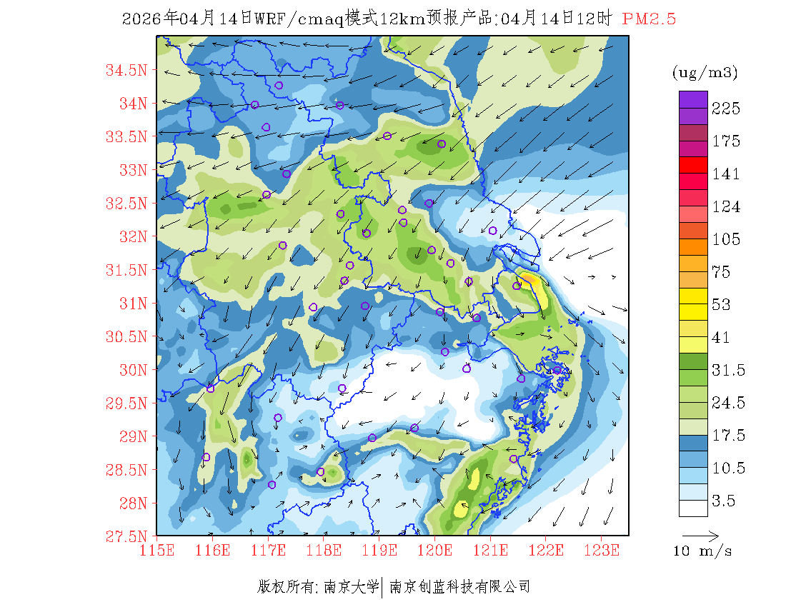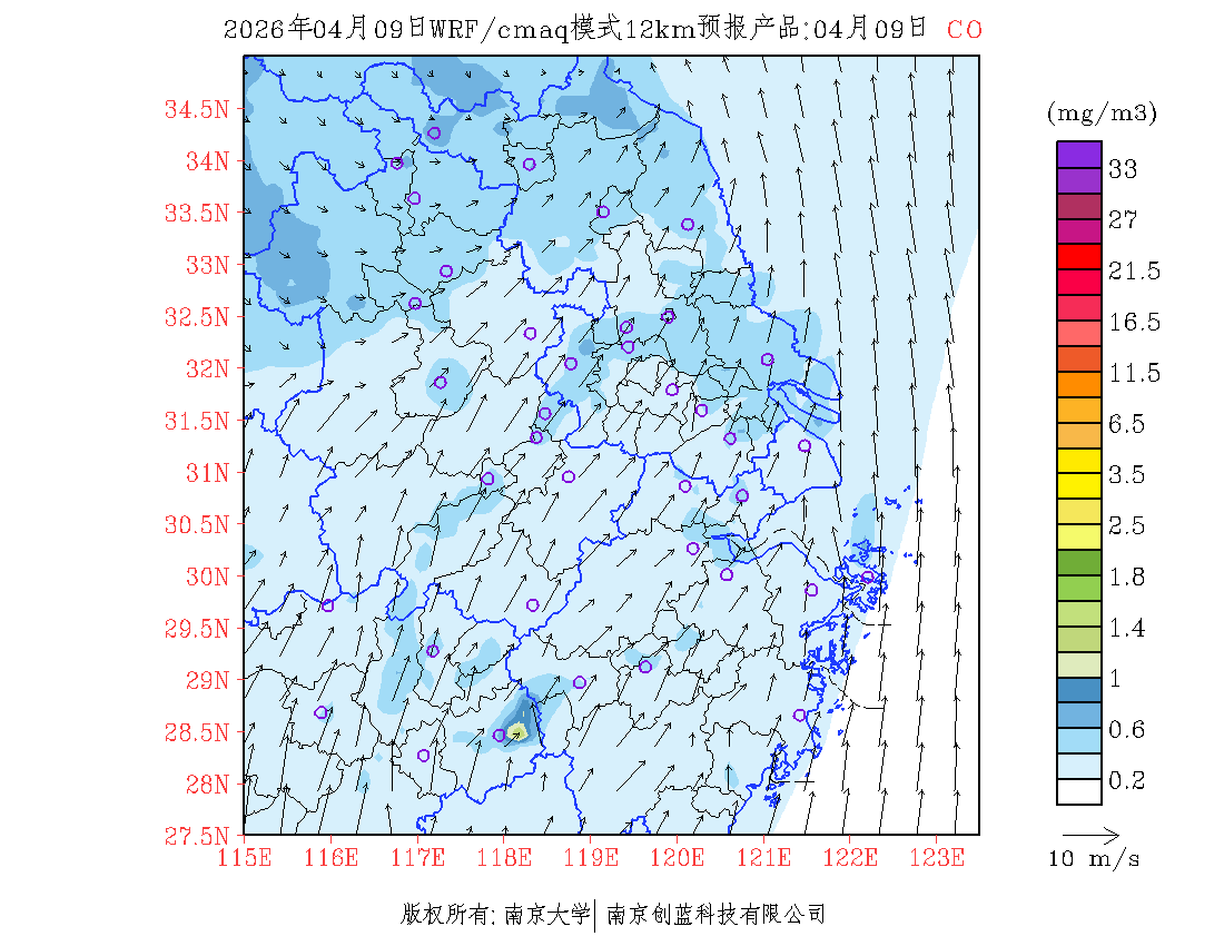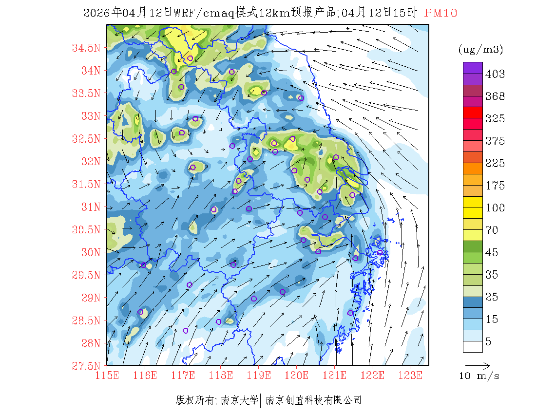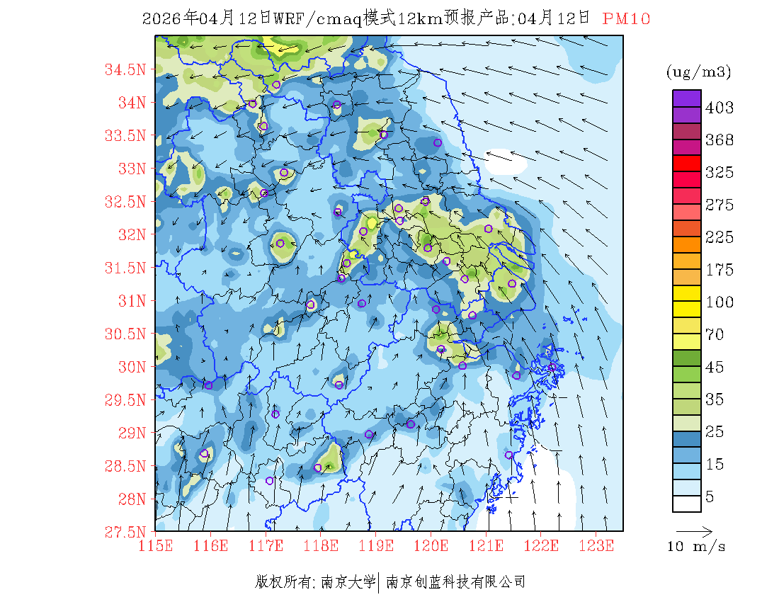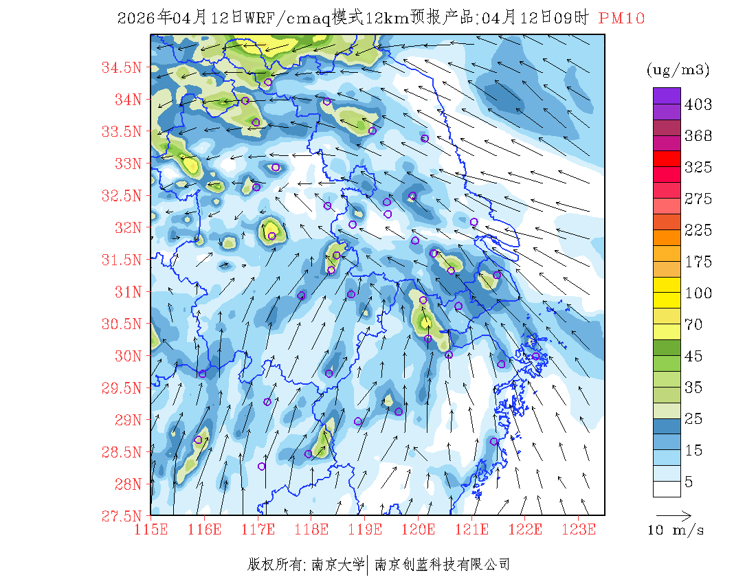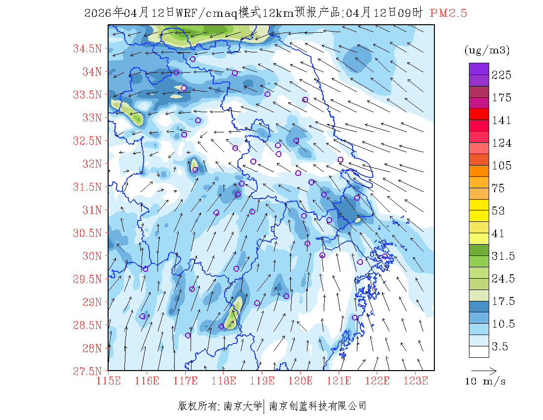 长三角地区浓度预报场(12km)