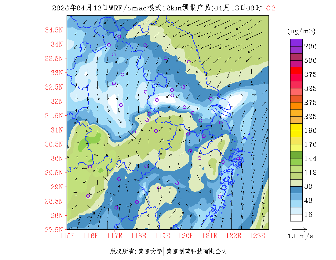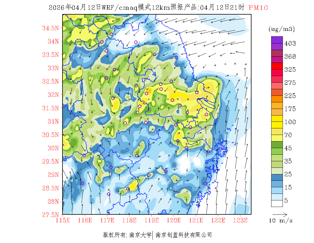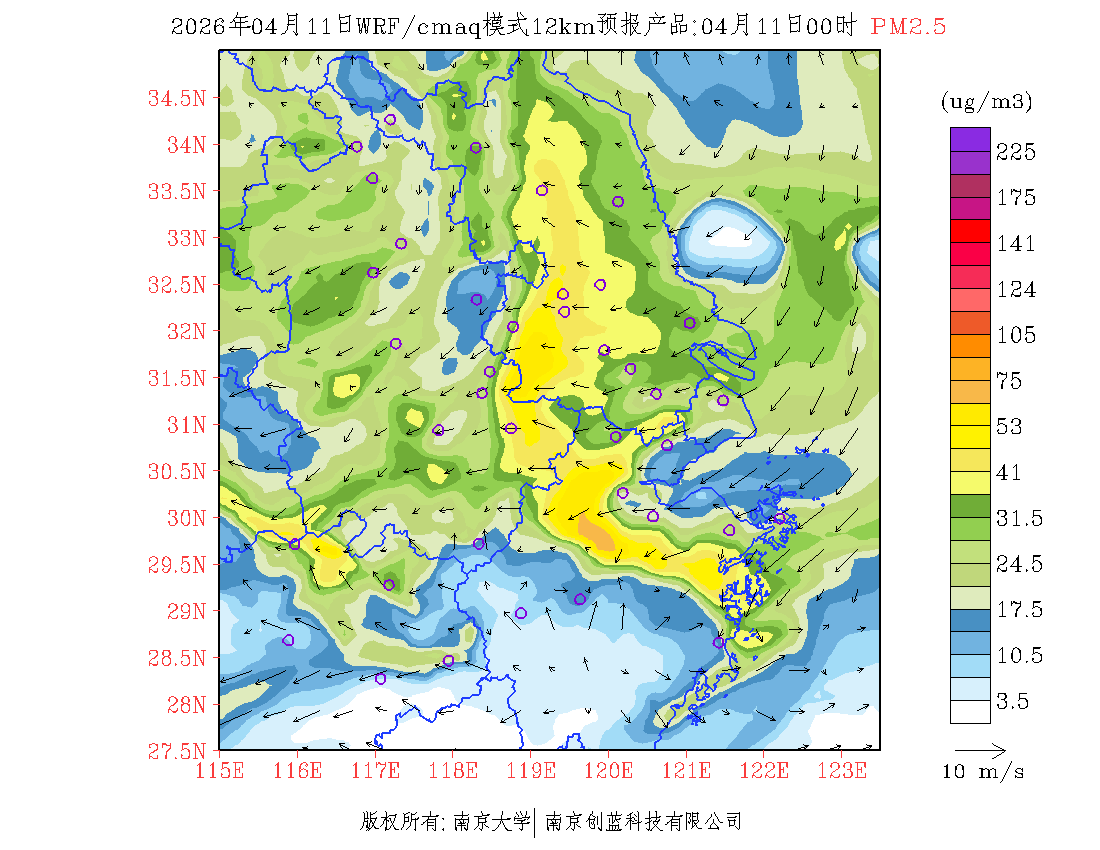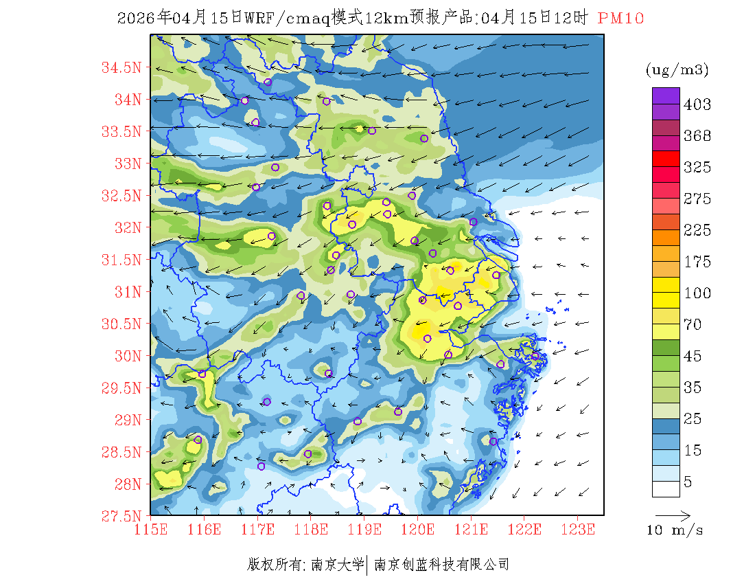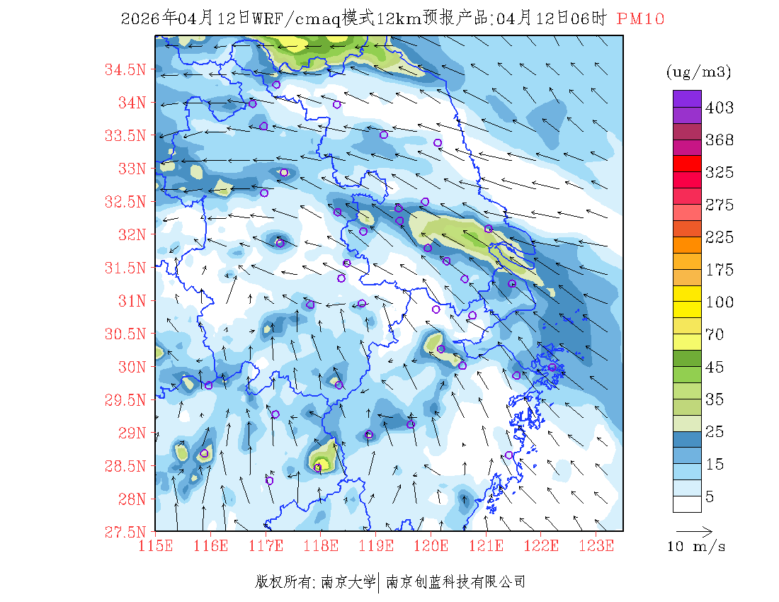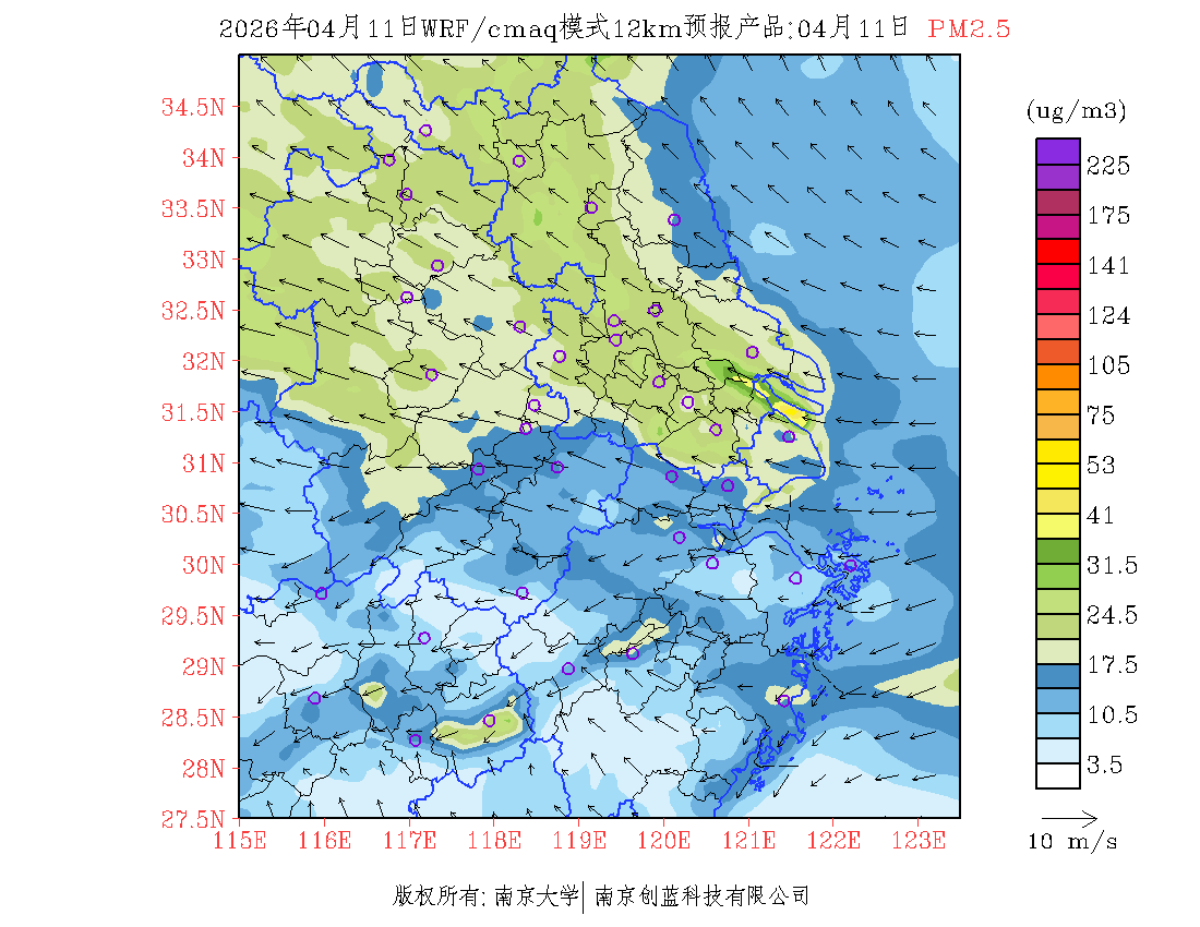 长三角地区浓度预报场(12km)