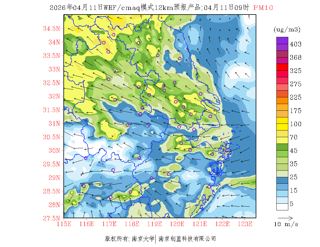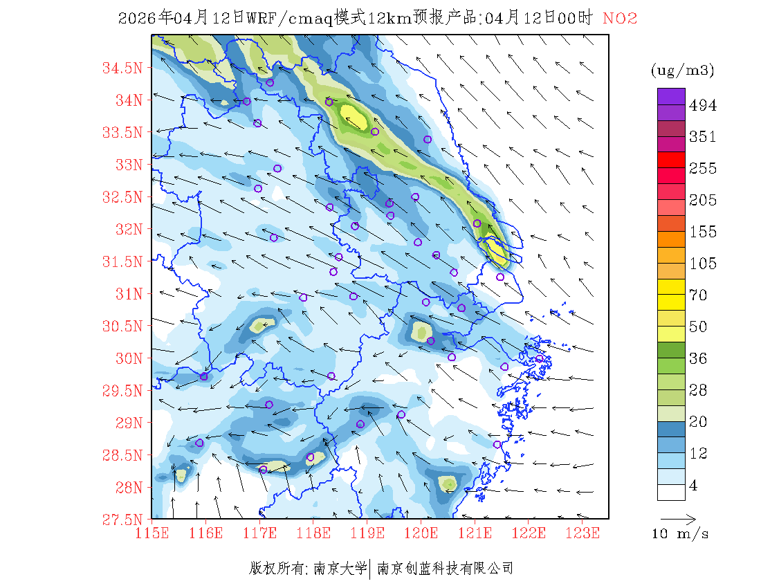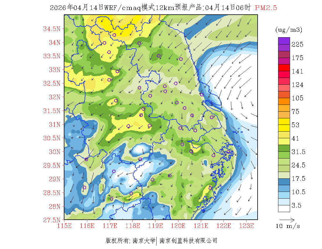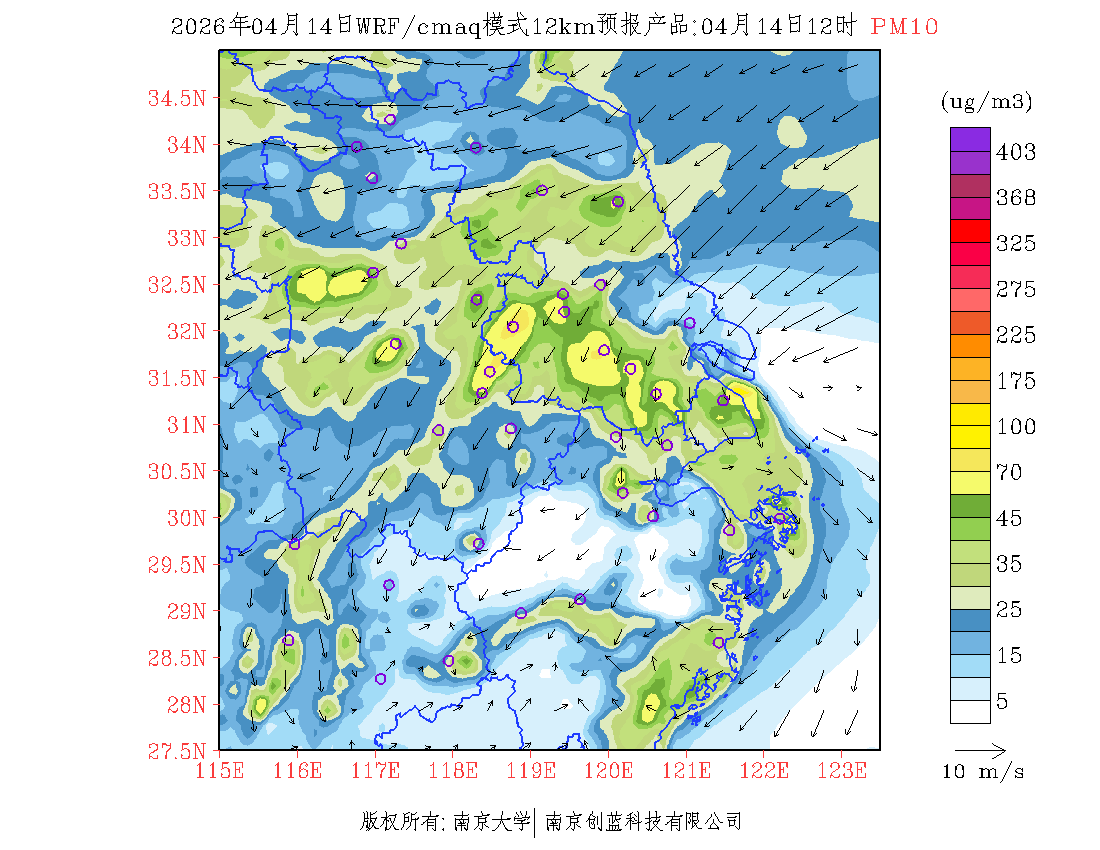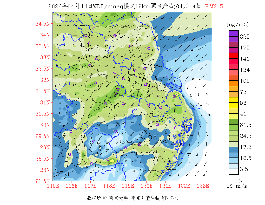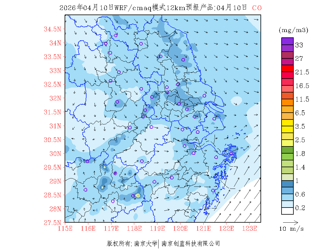 长三角地区浓度预报场(12km)