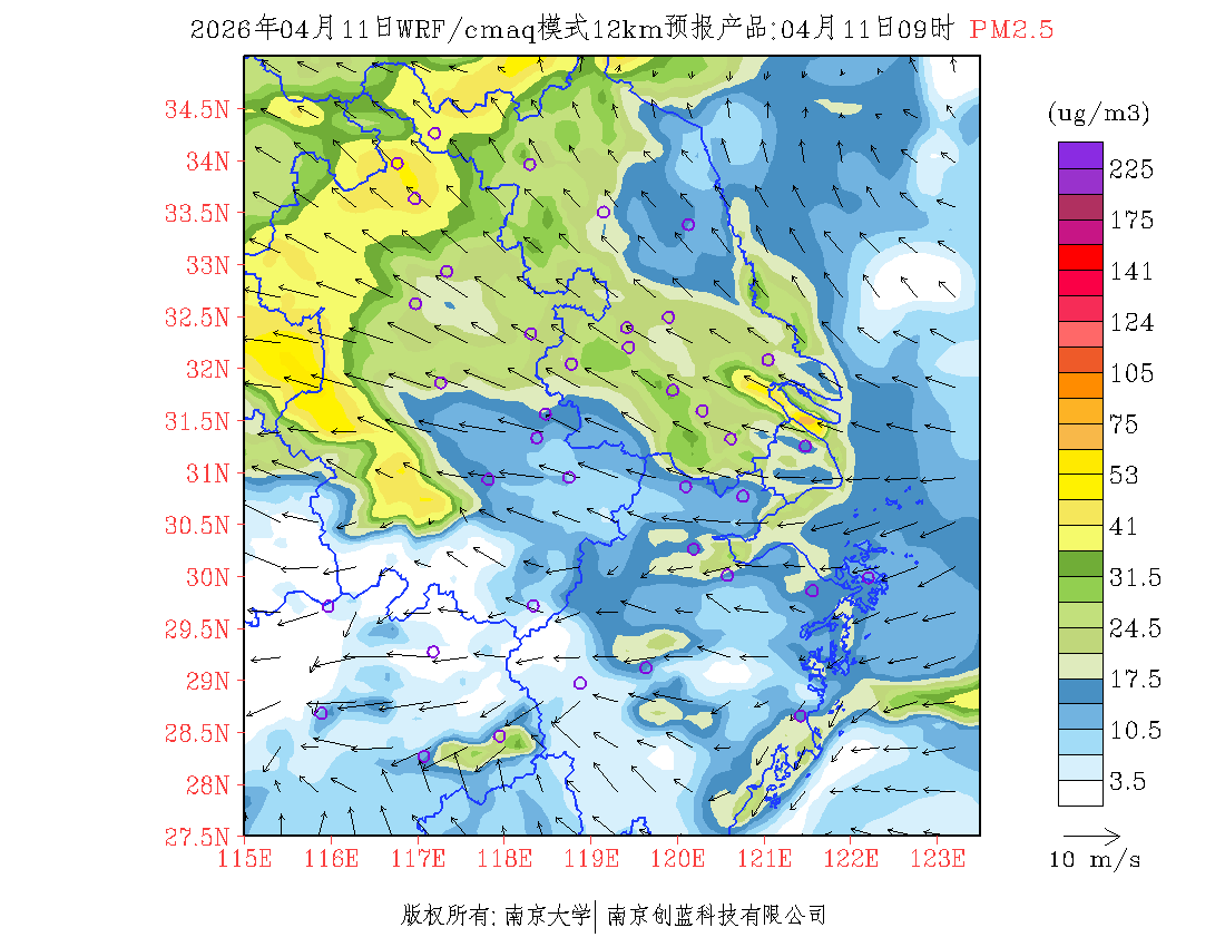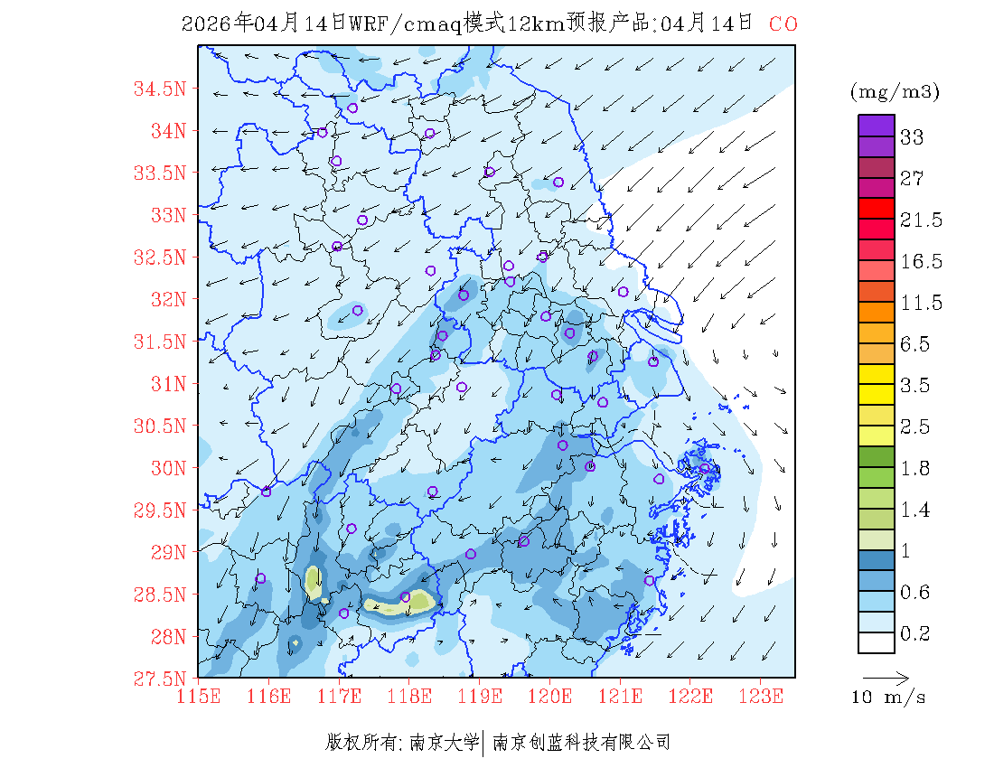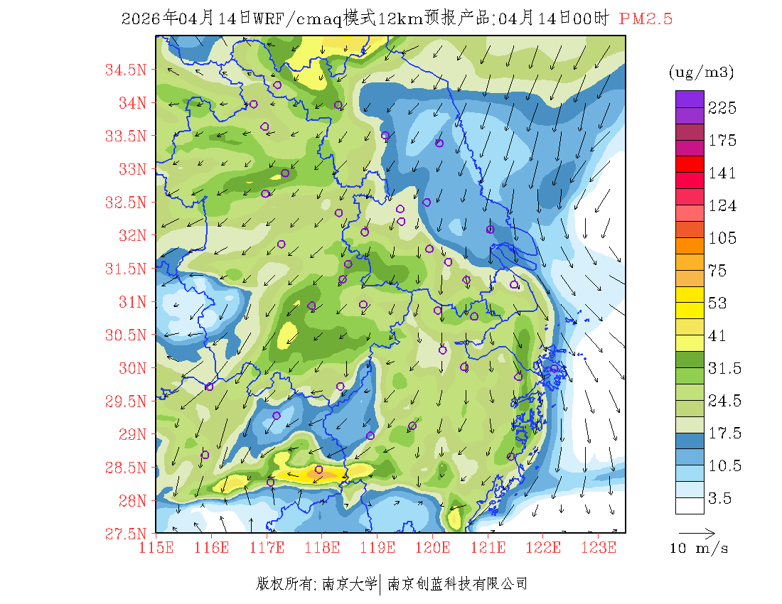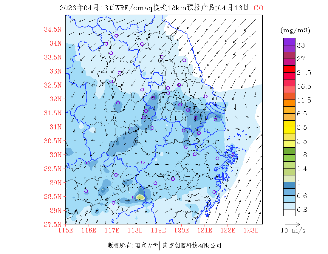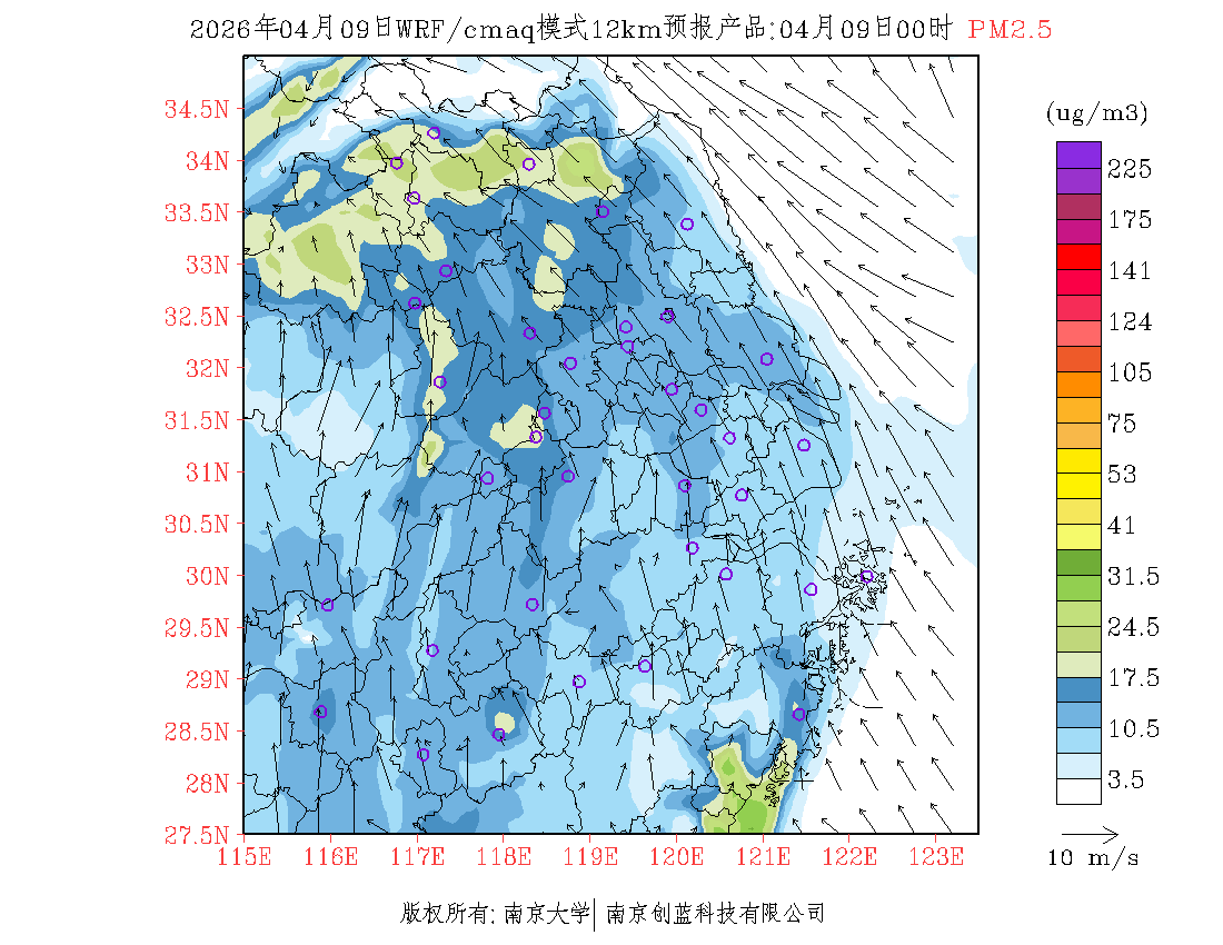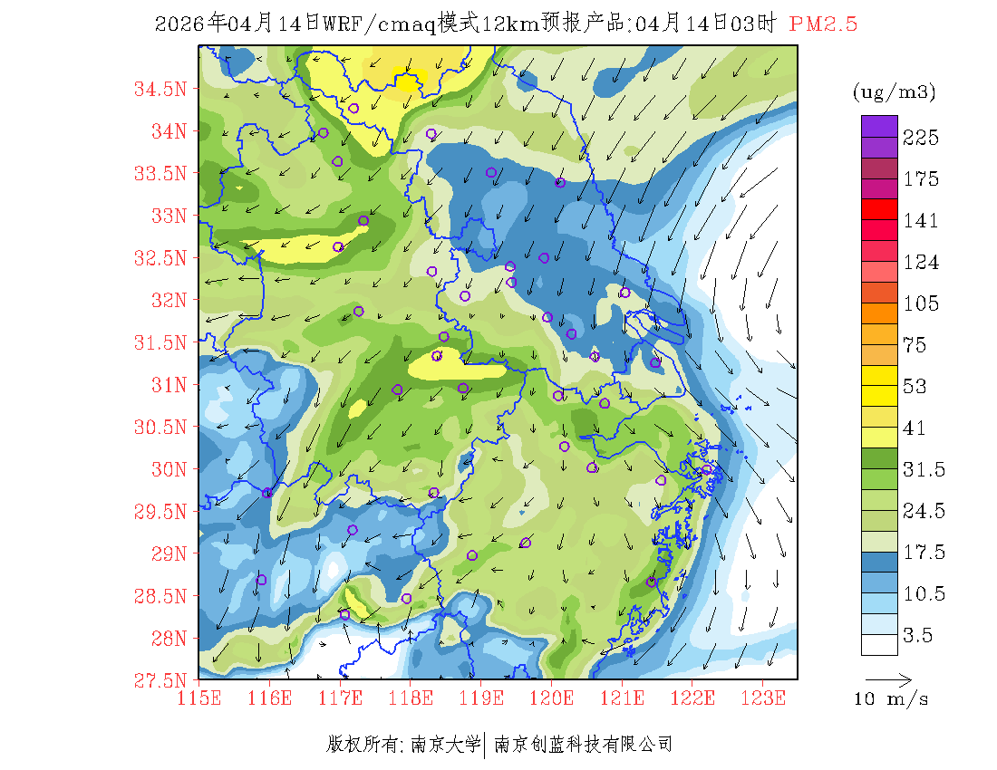 长三角地区浓度预报场(12km)