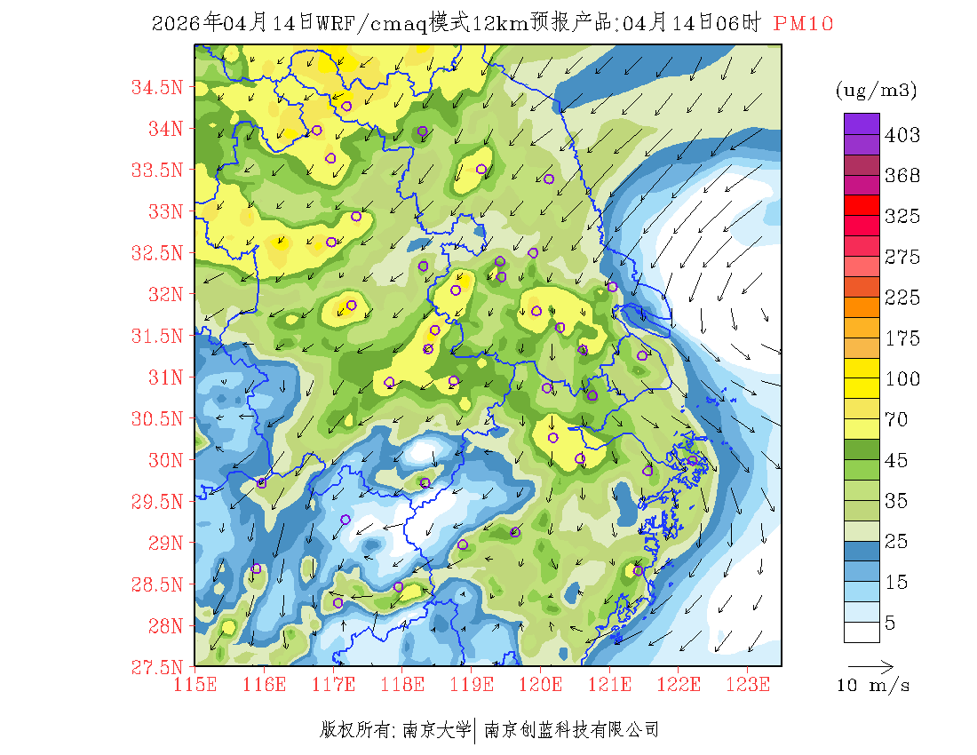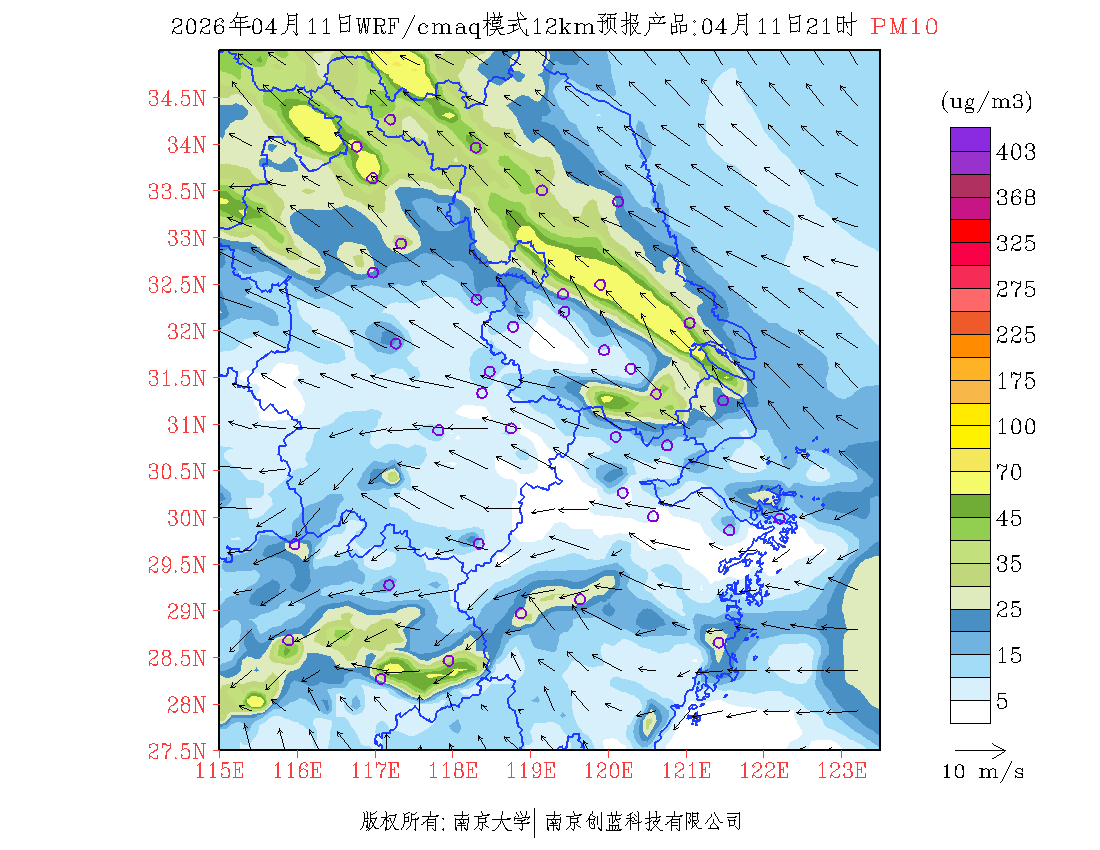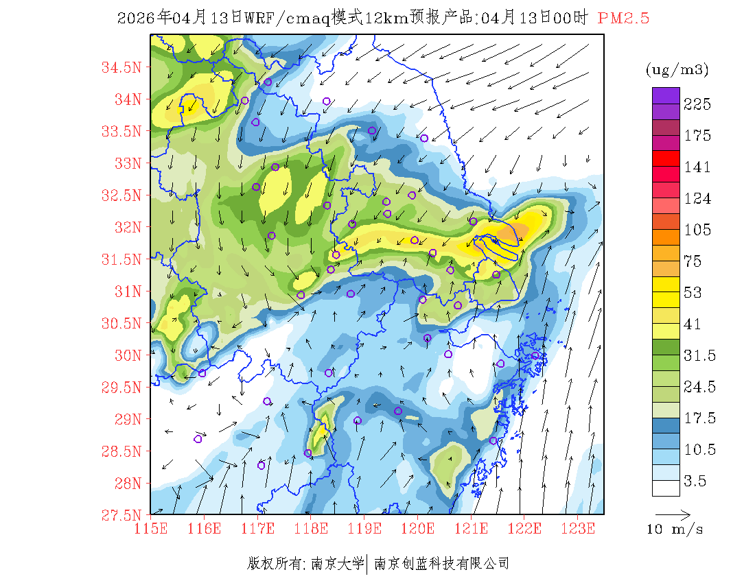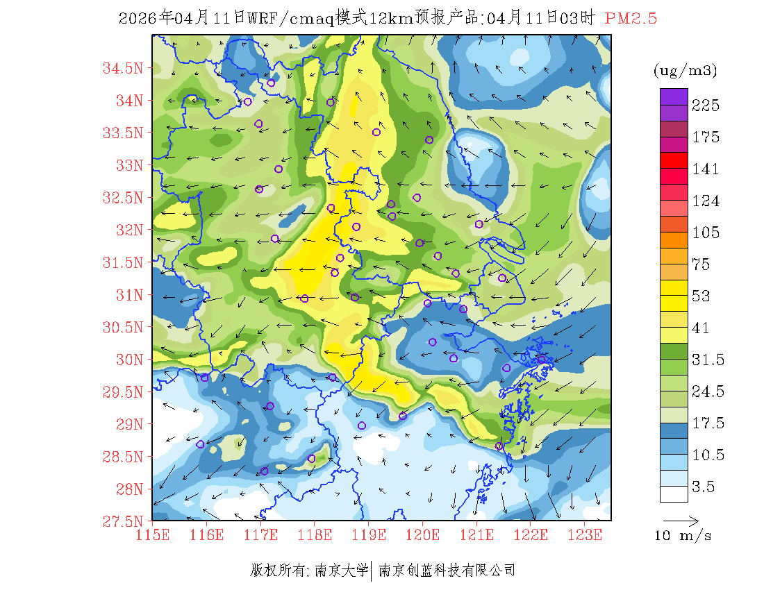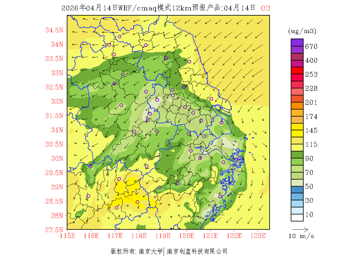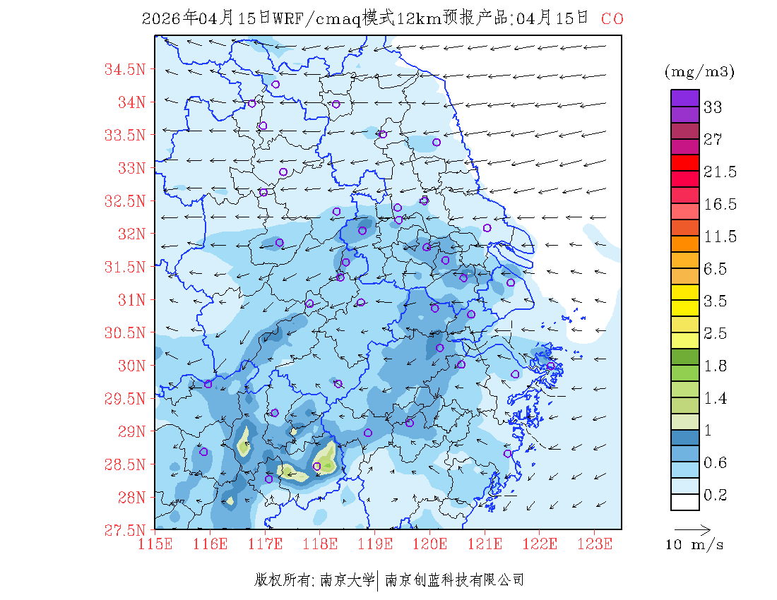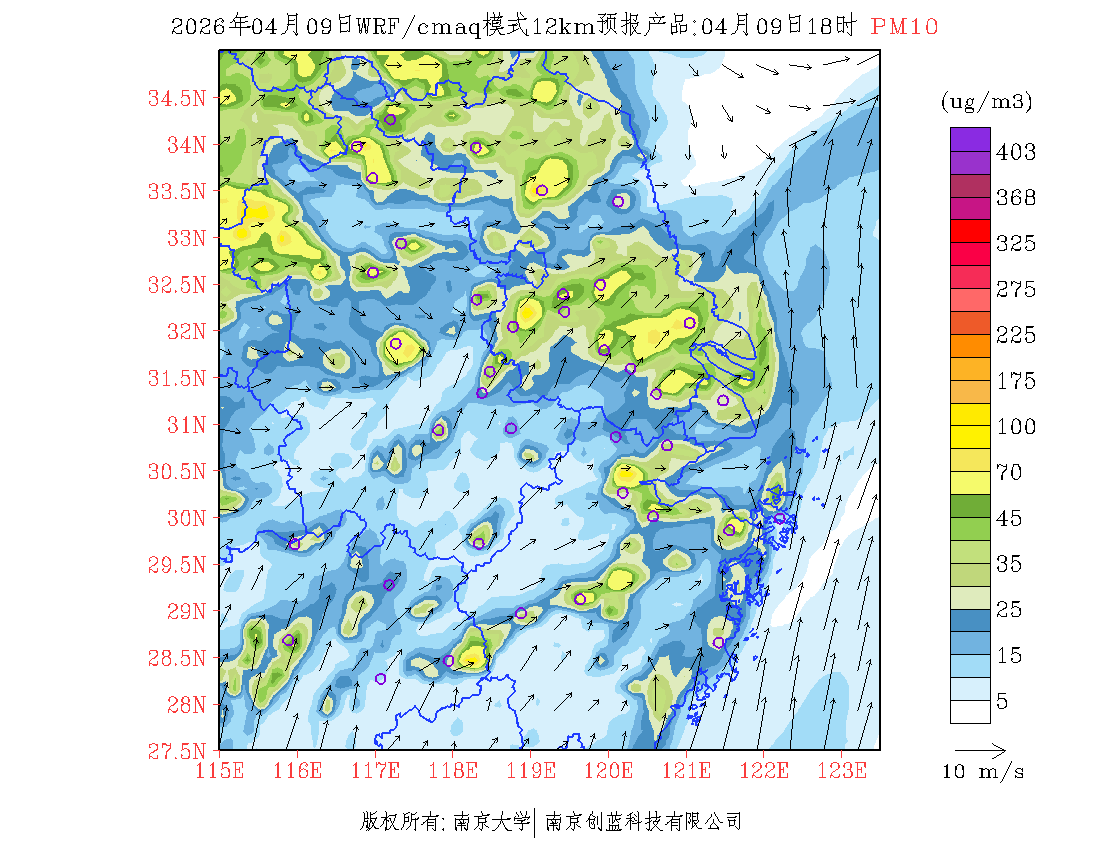 长三角地区浓度预报场(12km)