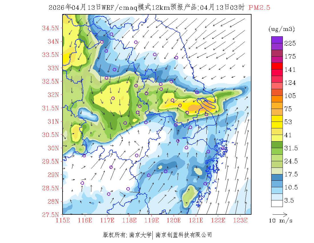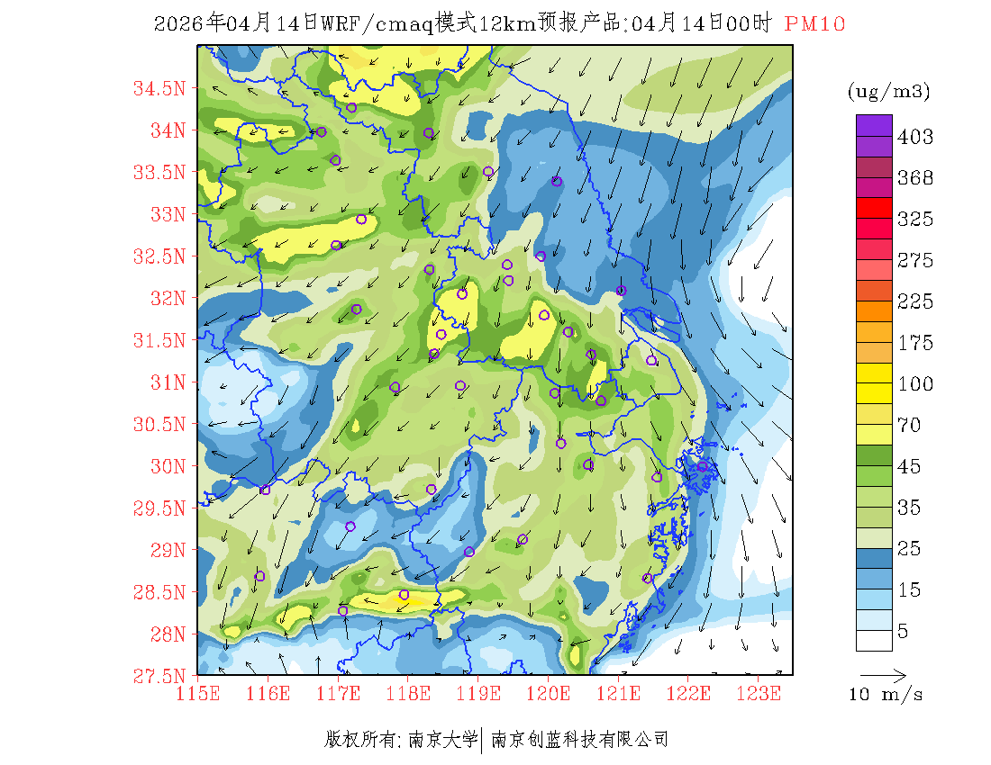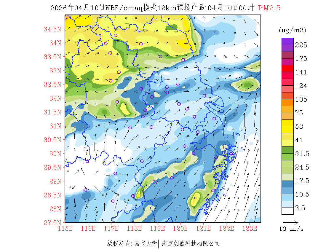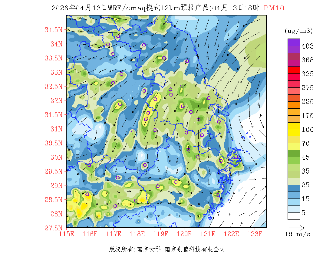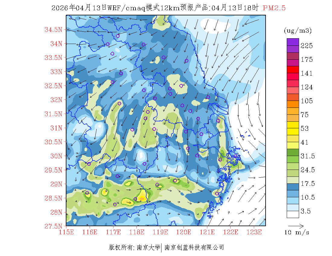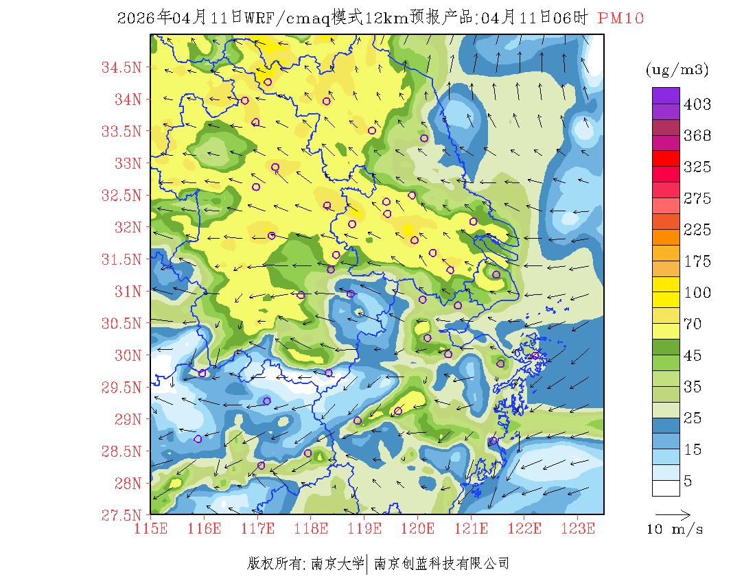 长三角地区浓度预报场(12km)