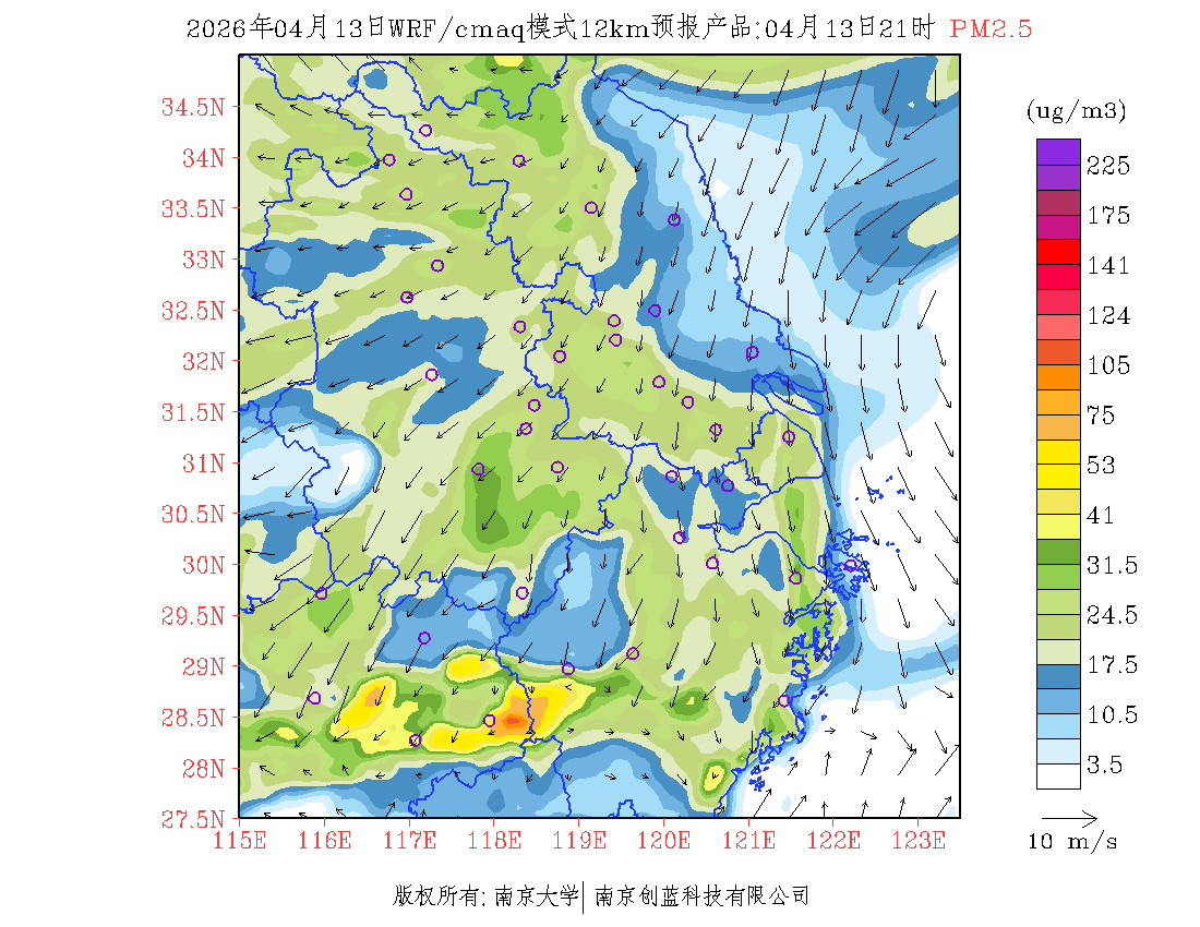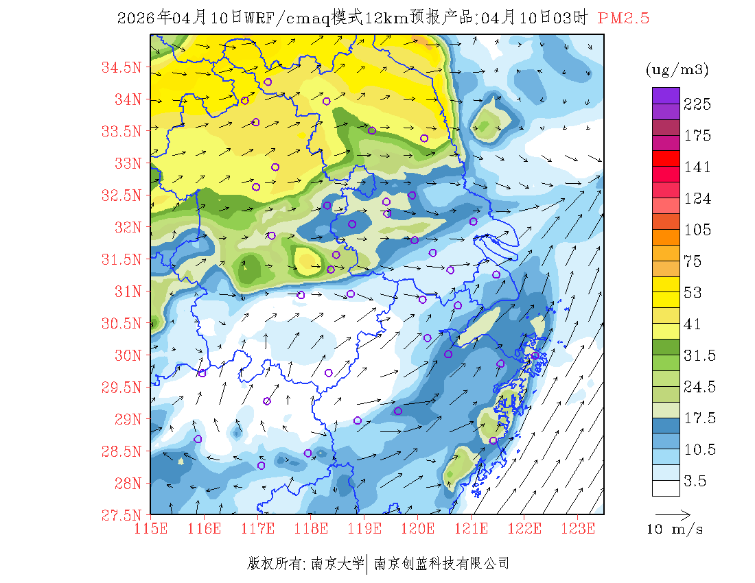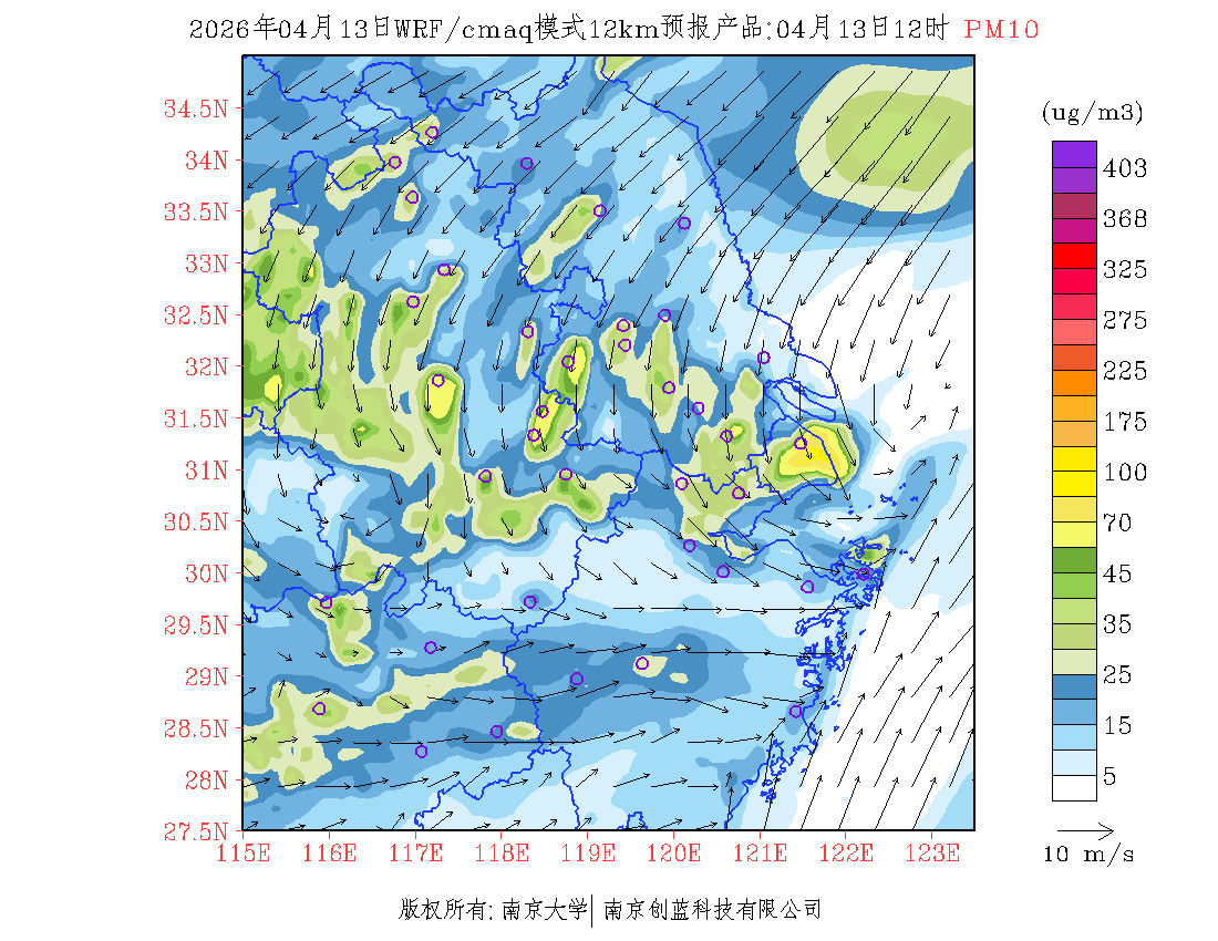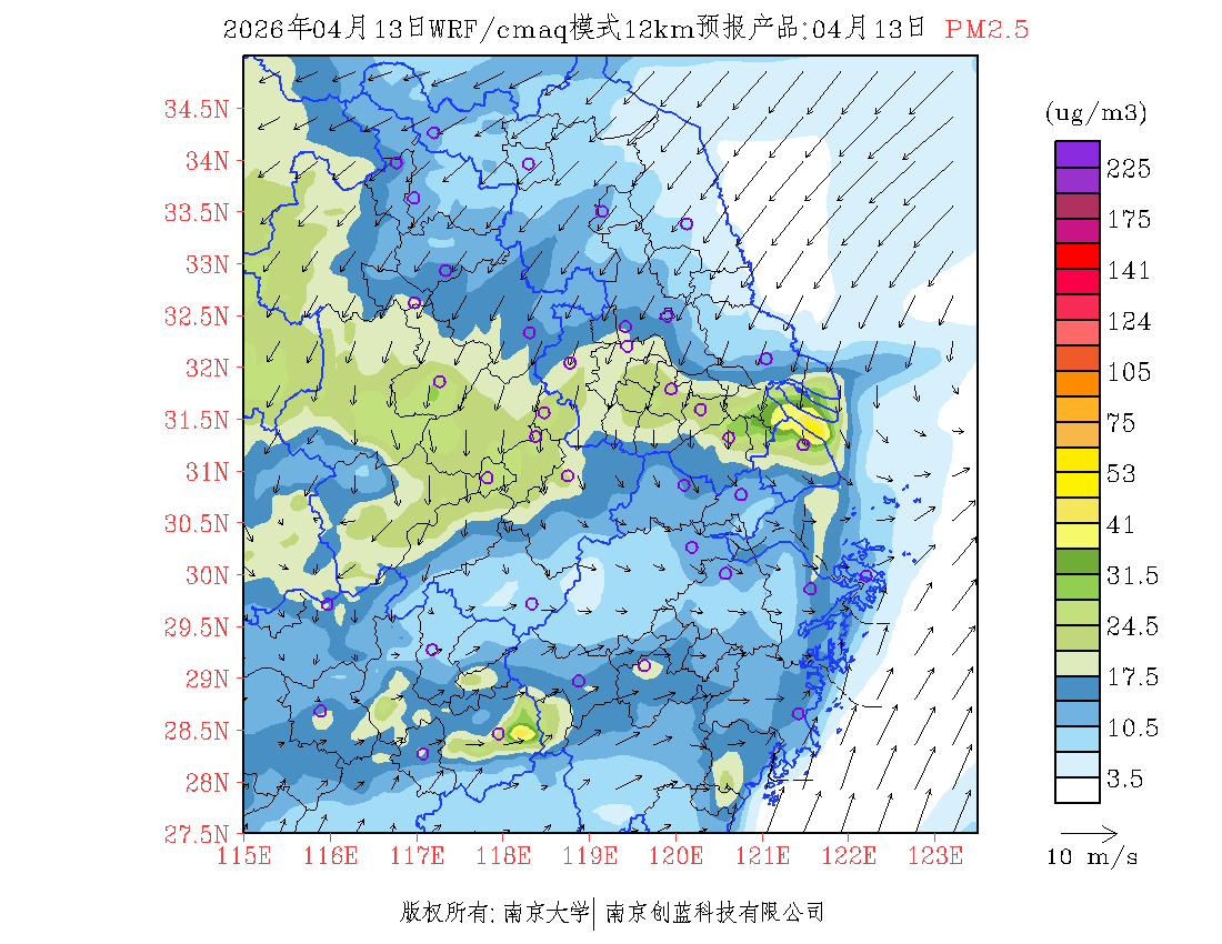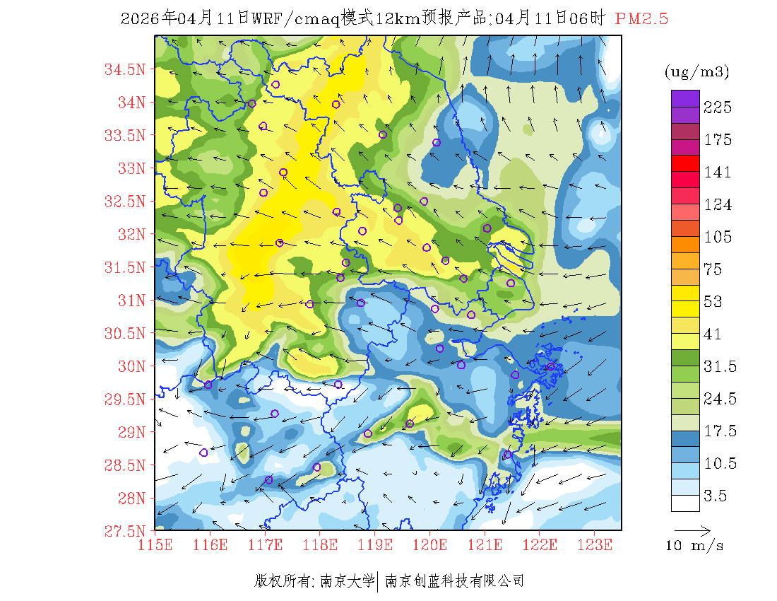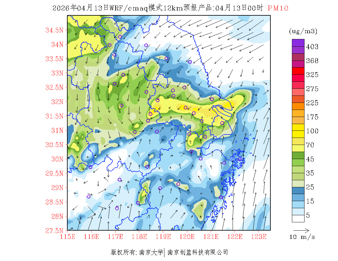长三角地区浓度预报场(12km)