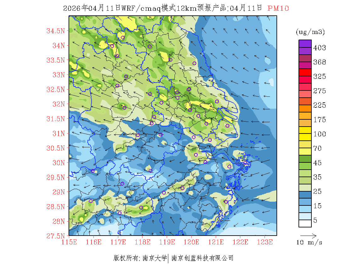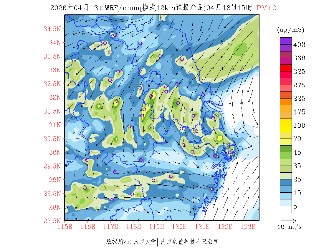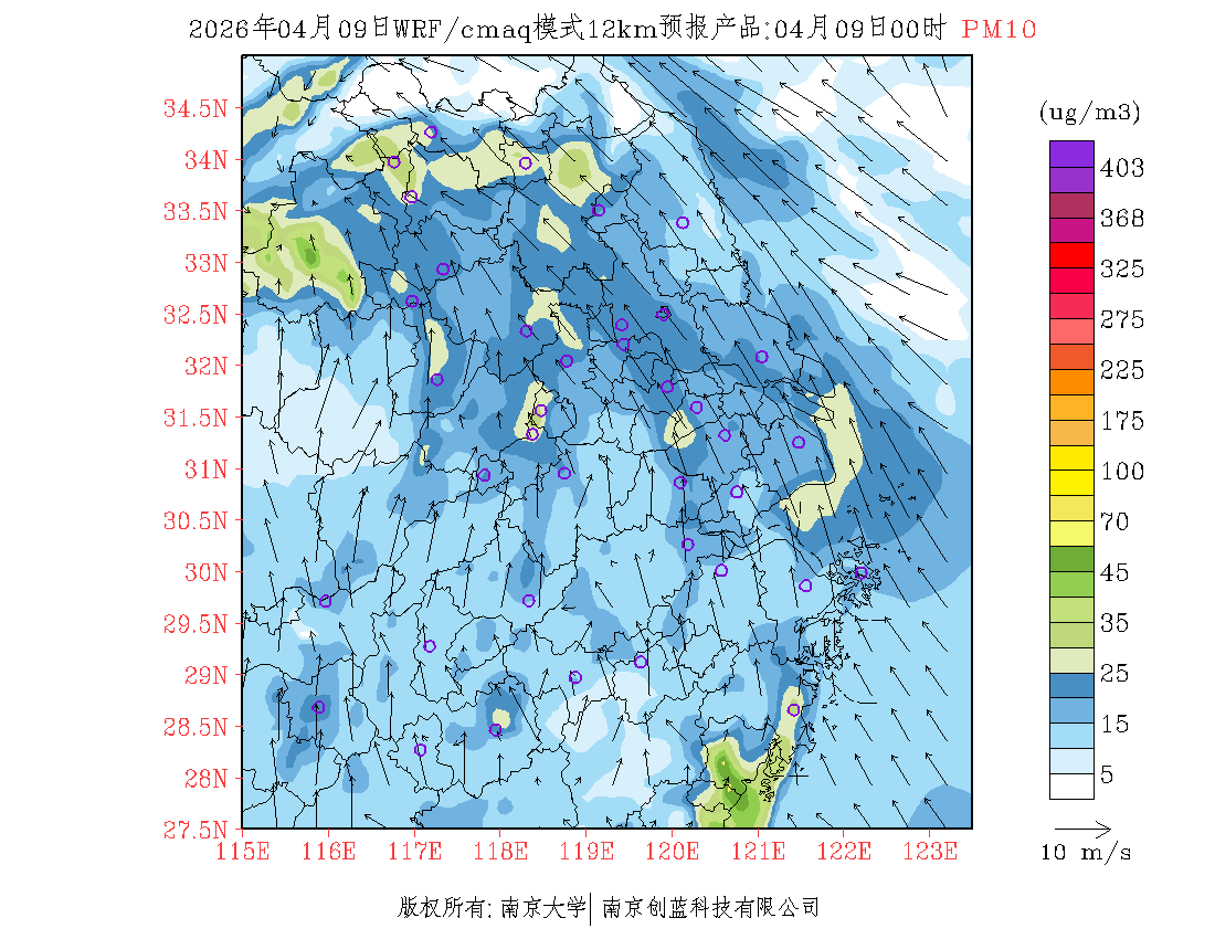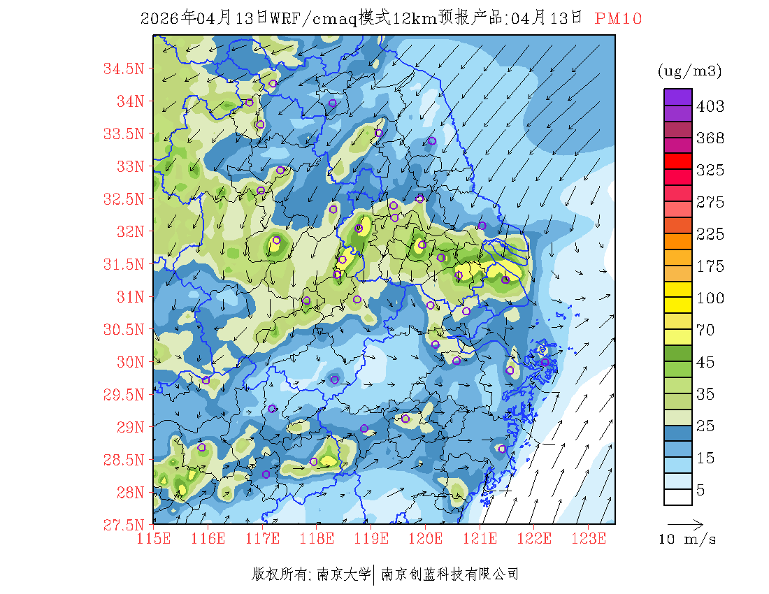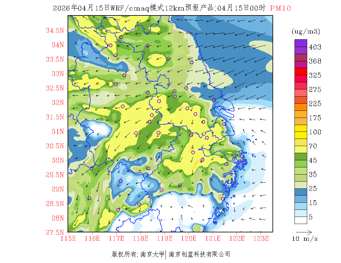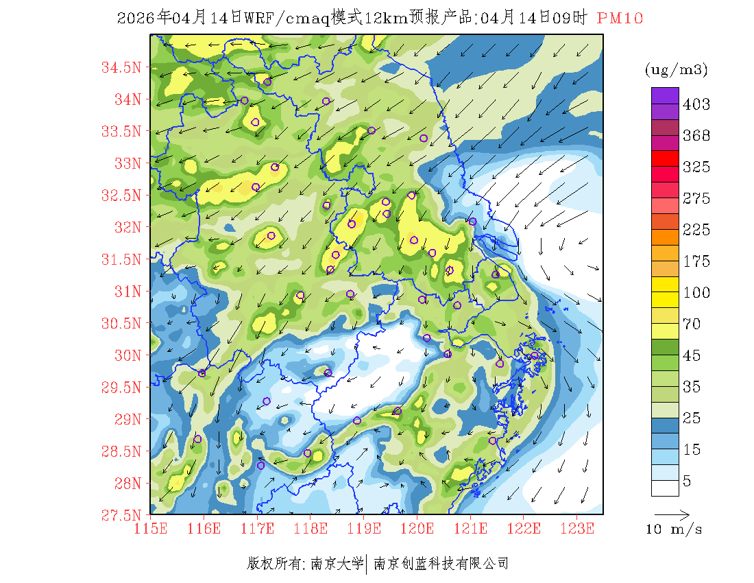 长三角地区浓度预报场(12km)