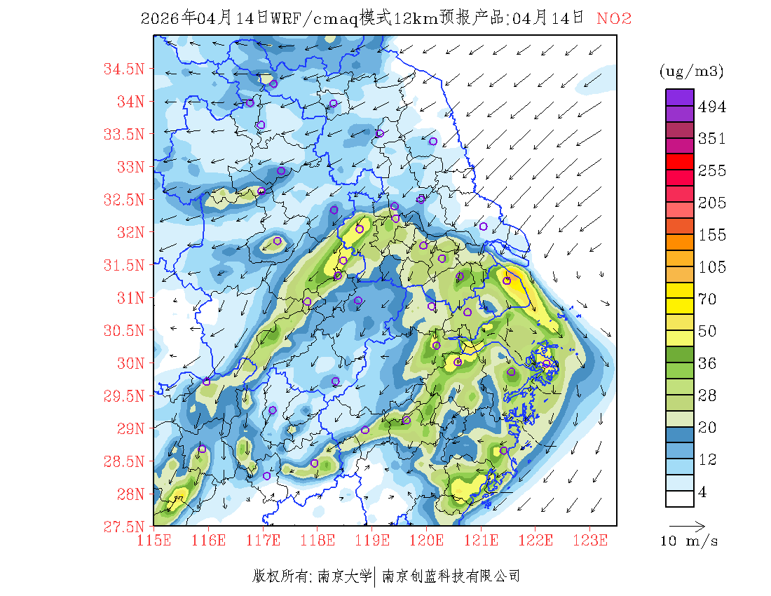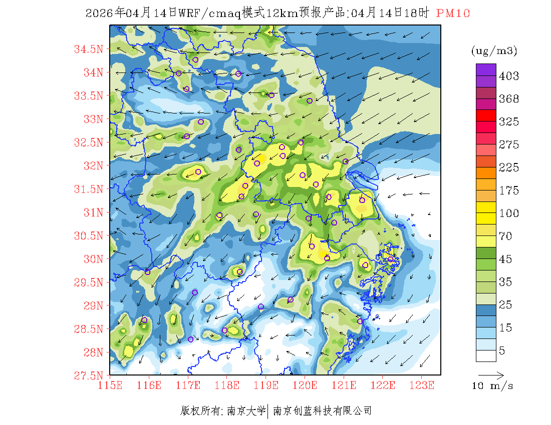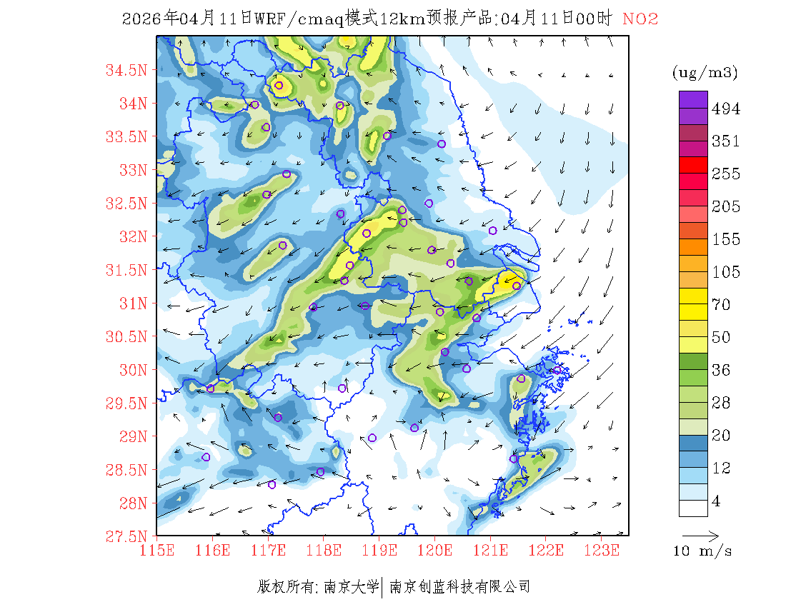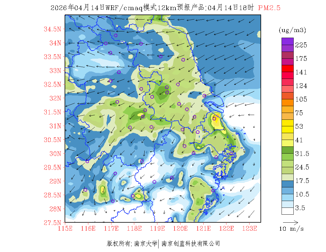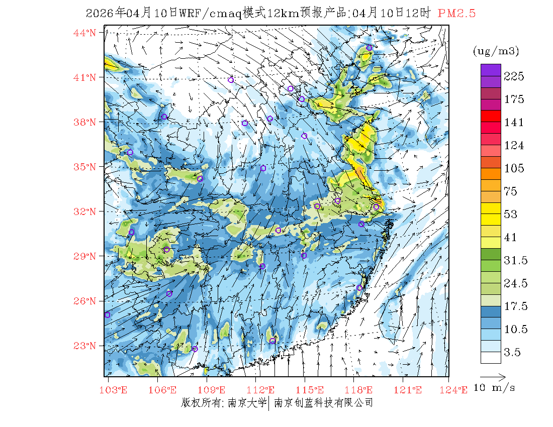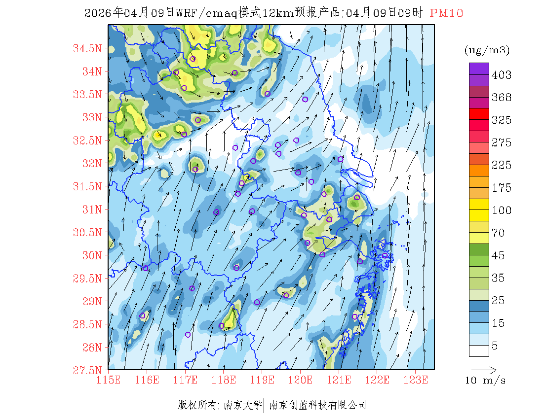 长三角地区浓度预报场(12km)
