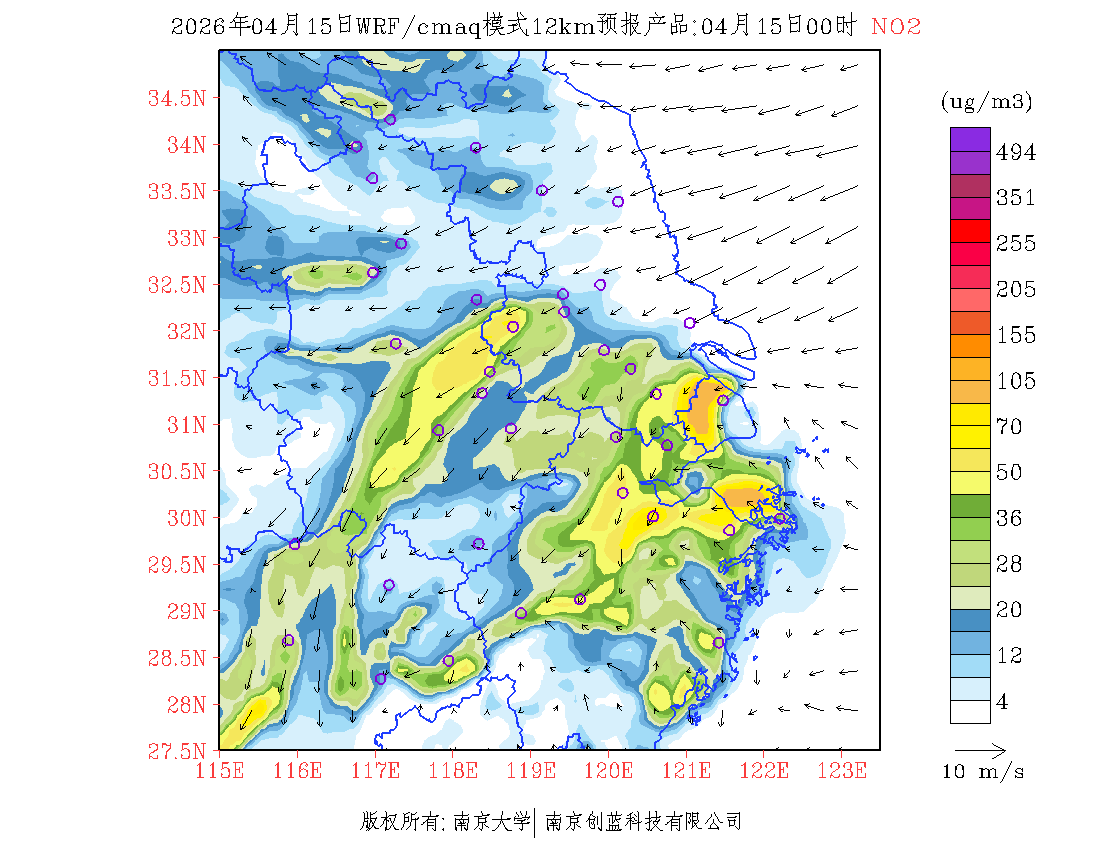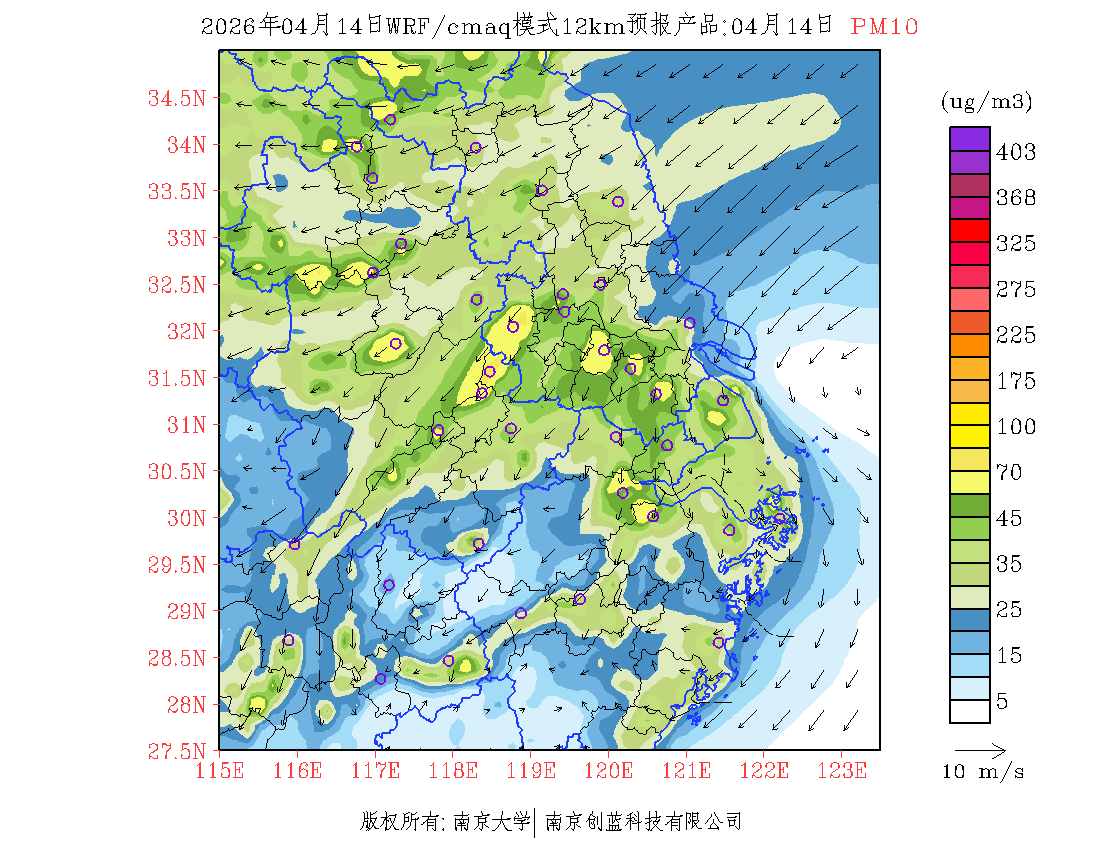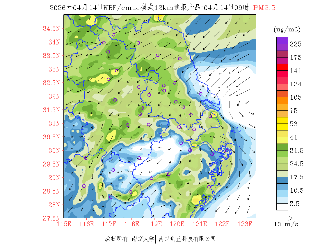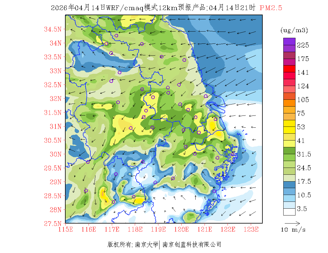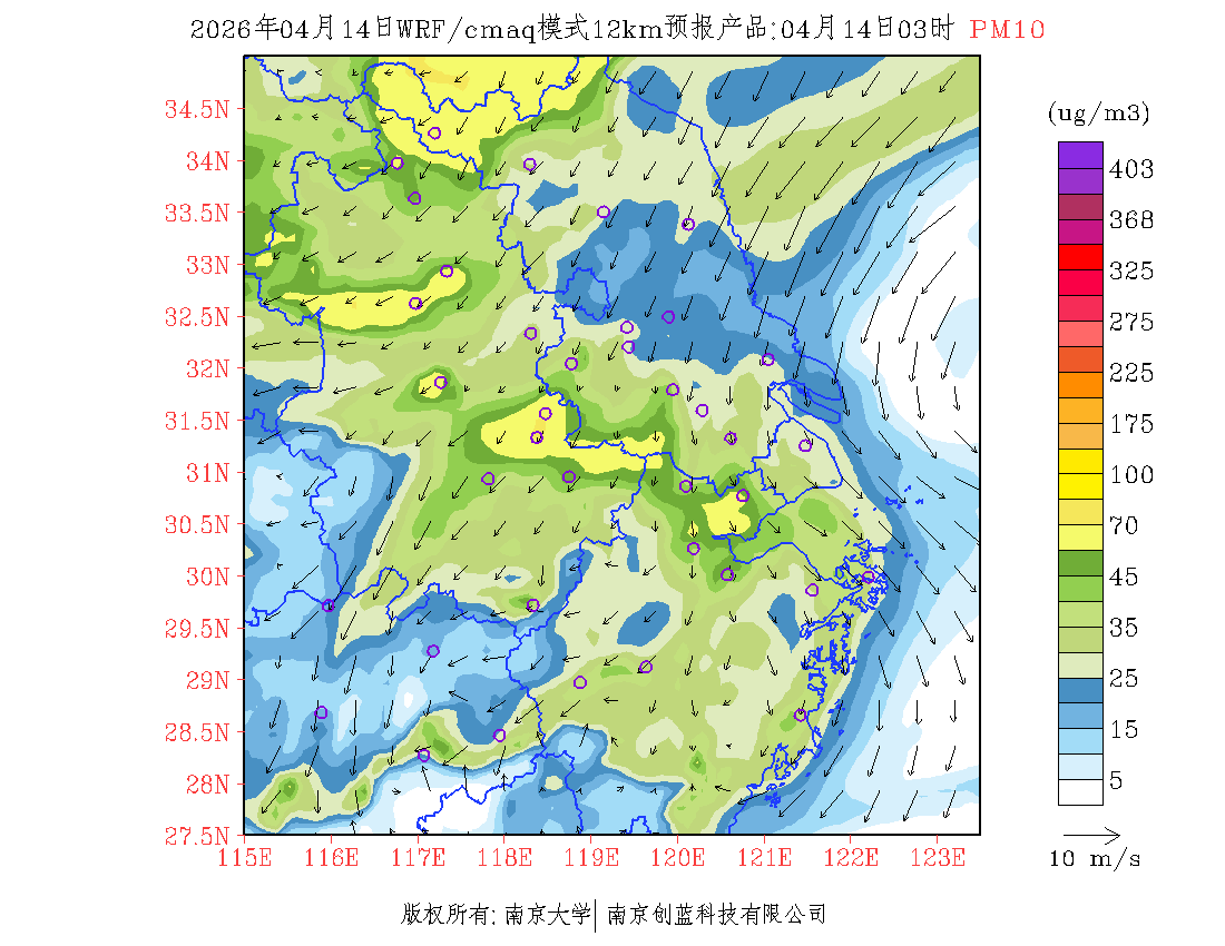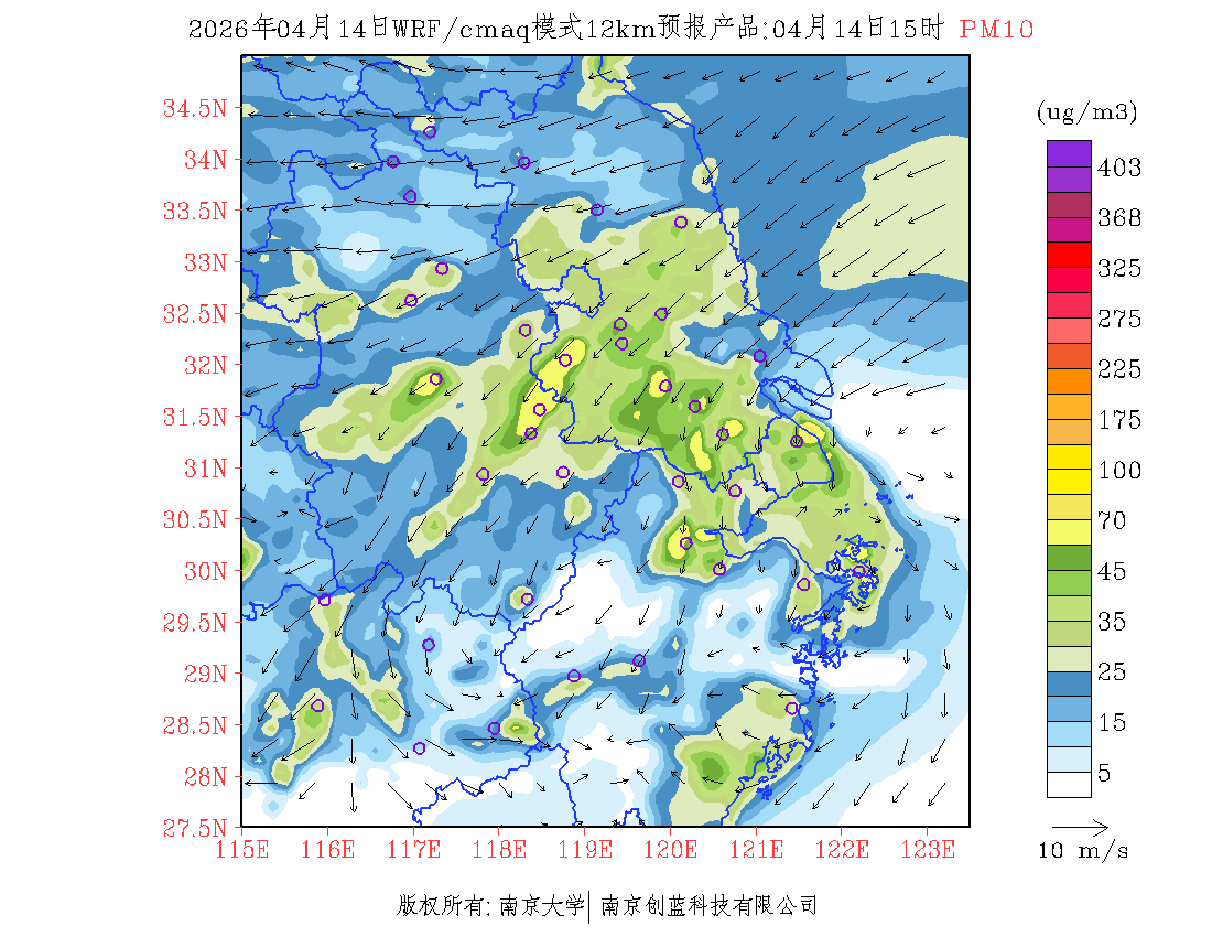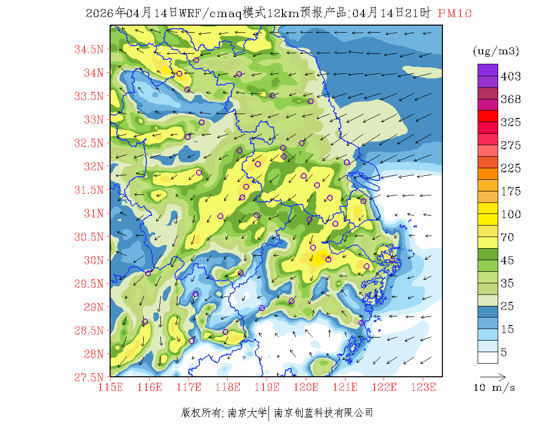 长三角地区浓度预报场(12km)
