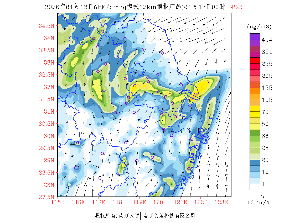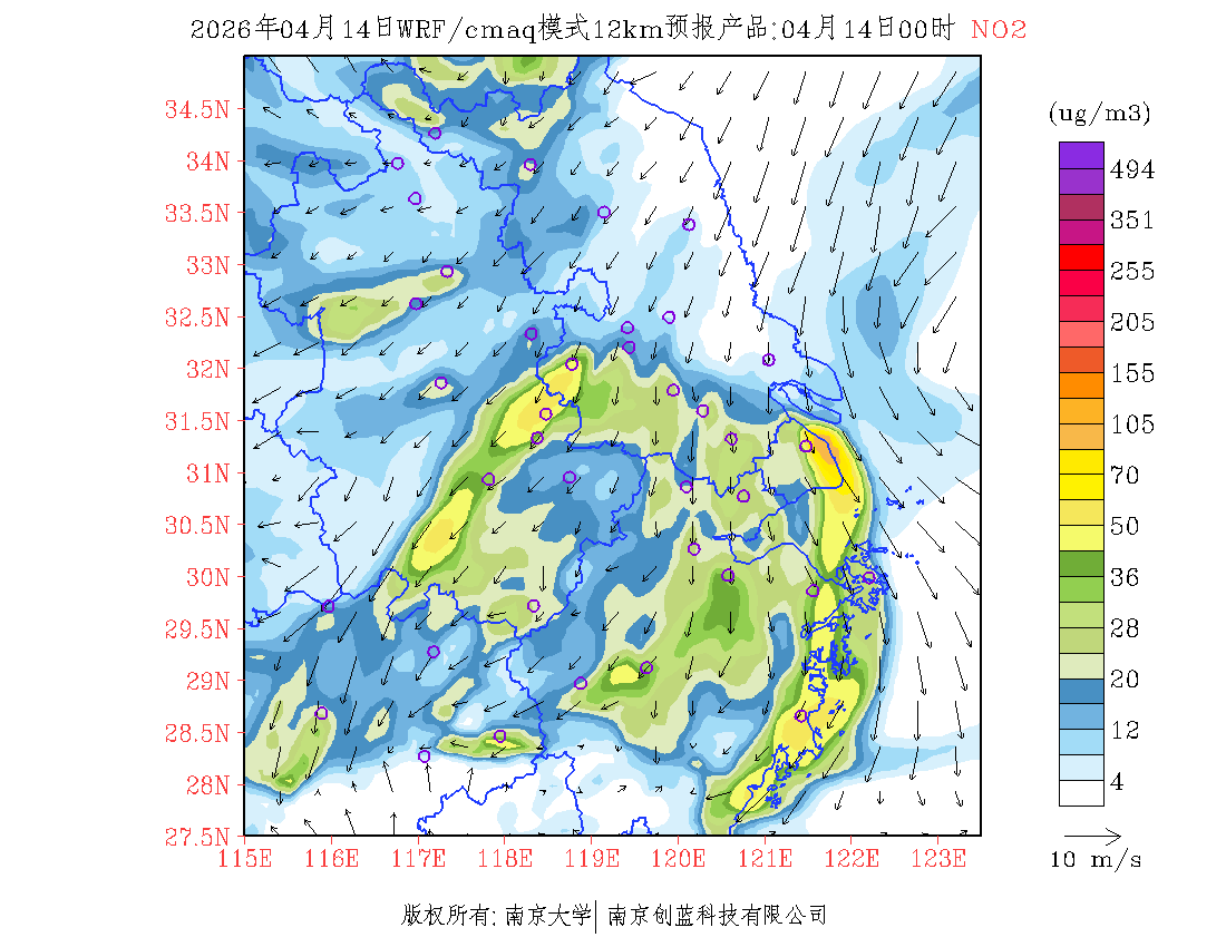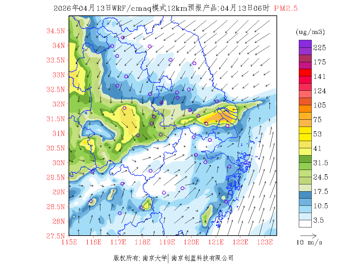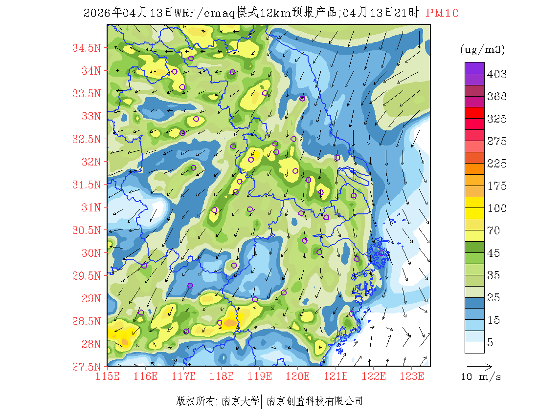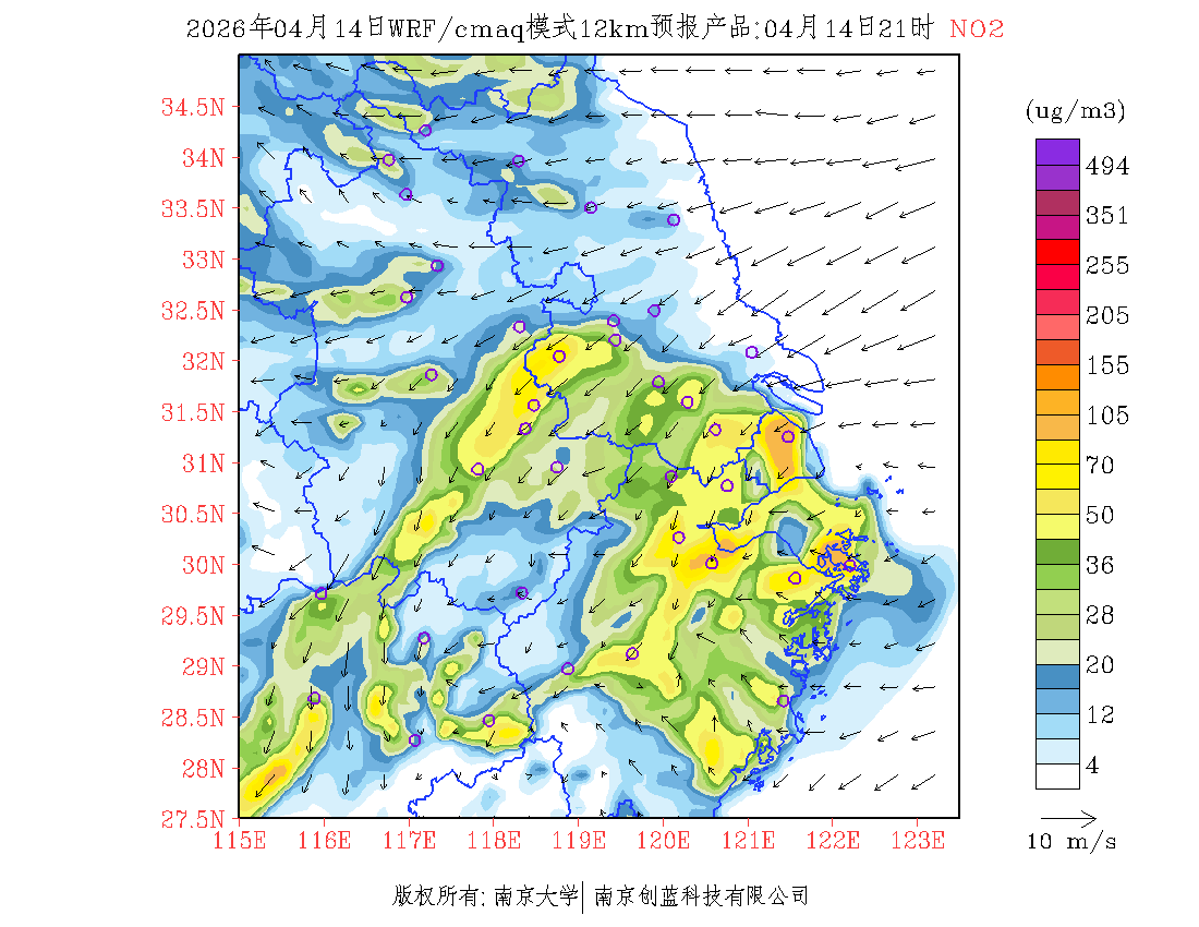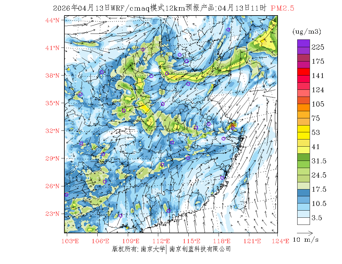 长三角地区浓度预报场(12km)