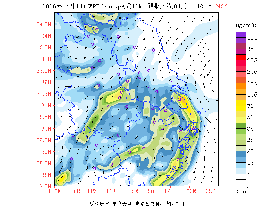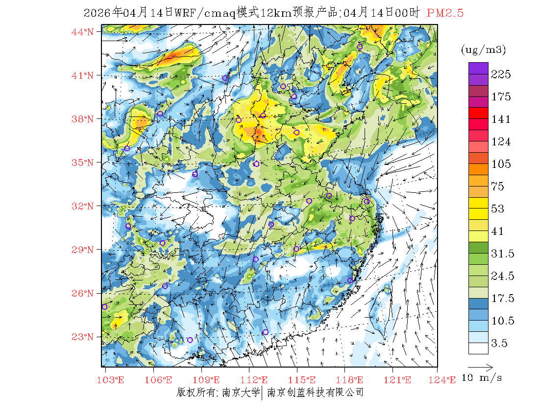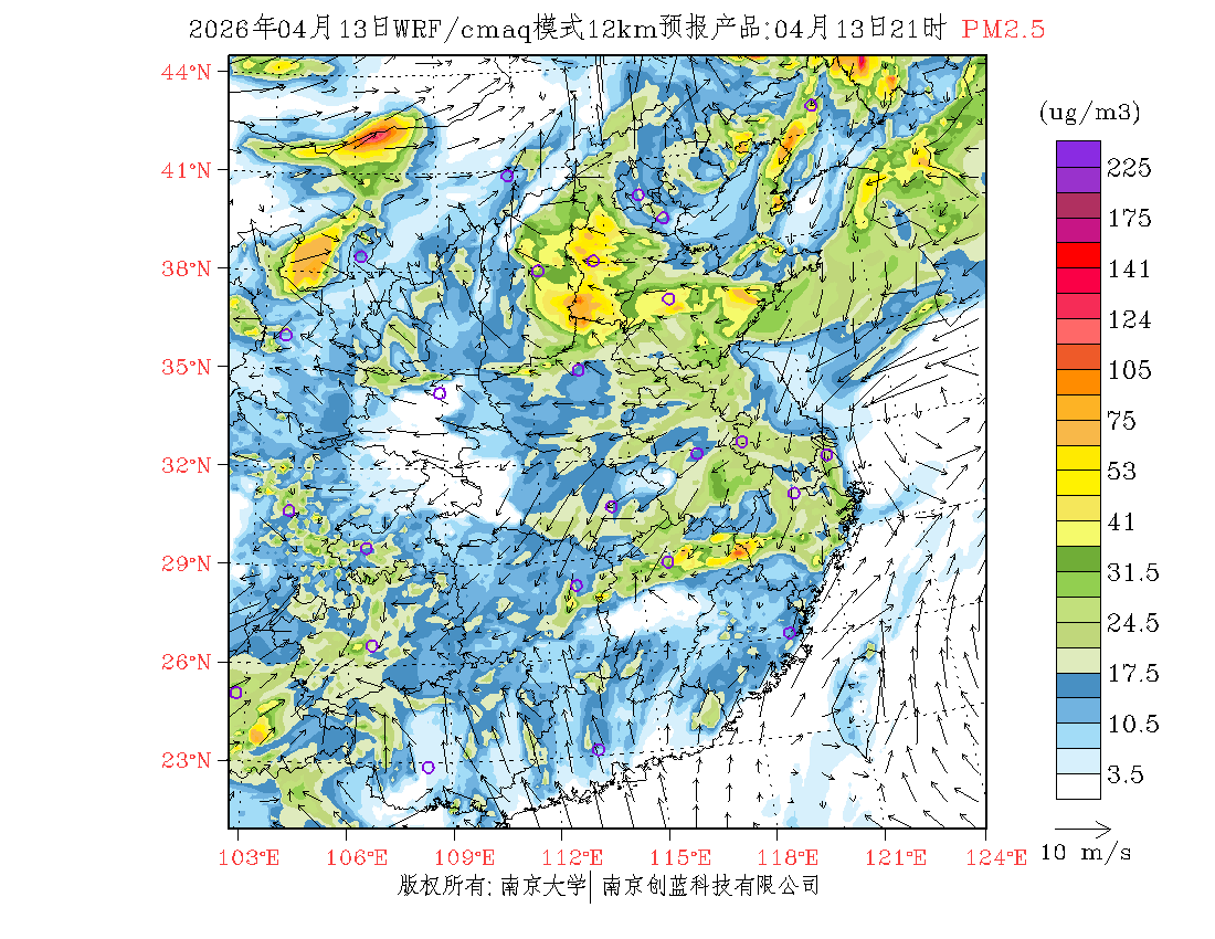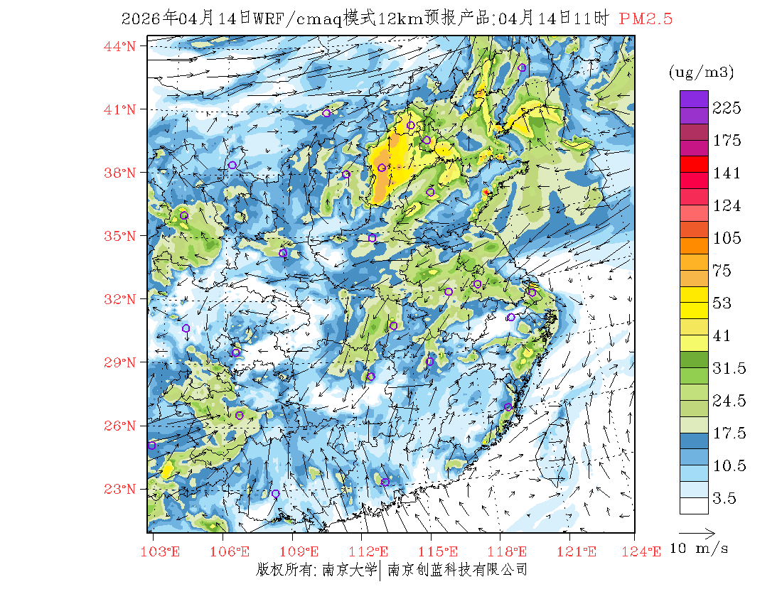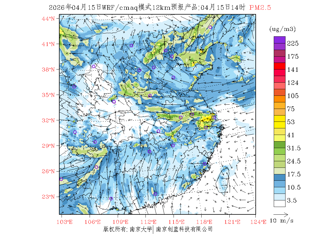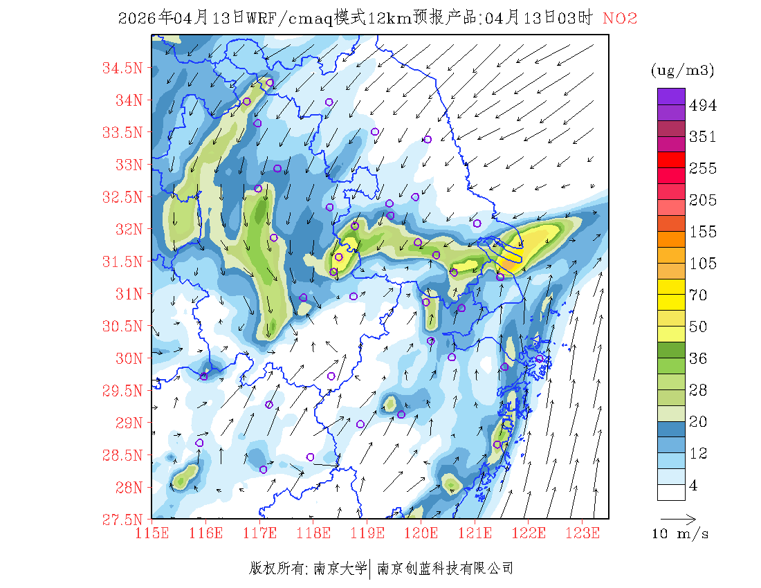 长三角地区浓度预报场(12km)