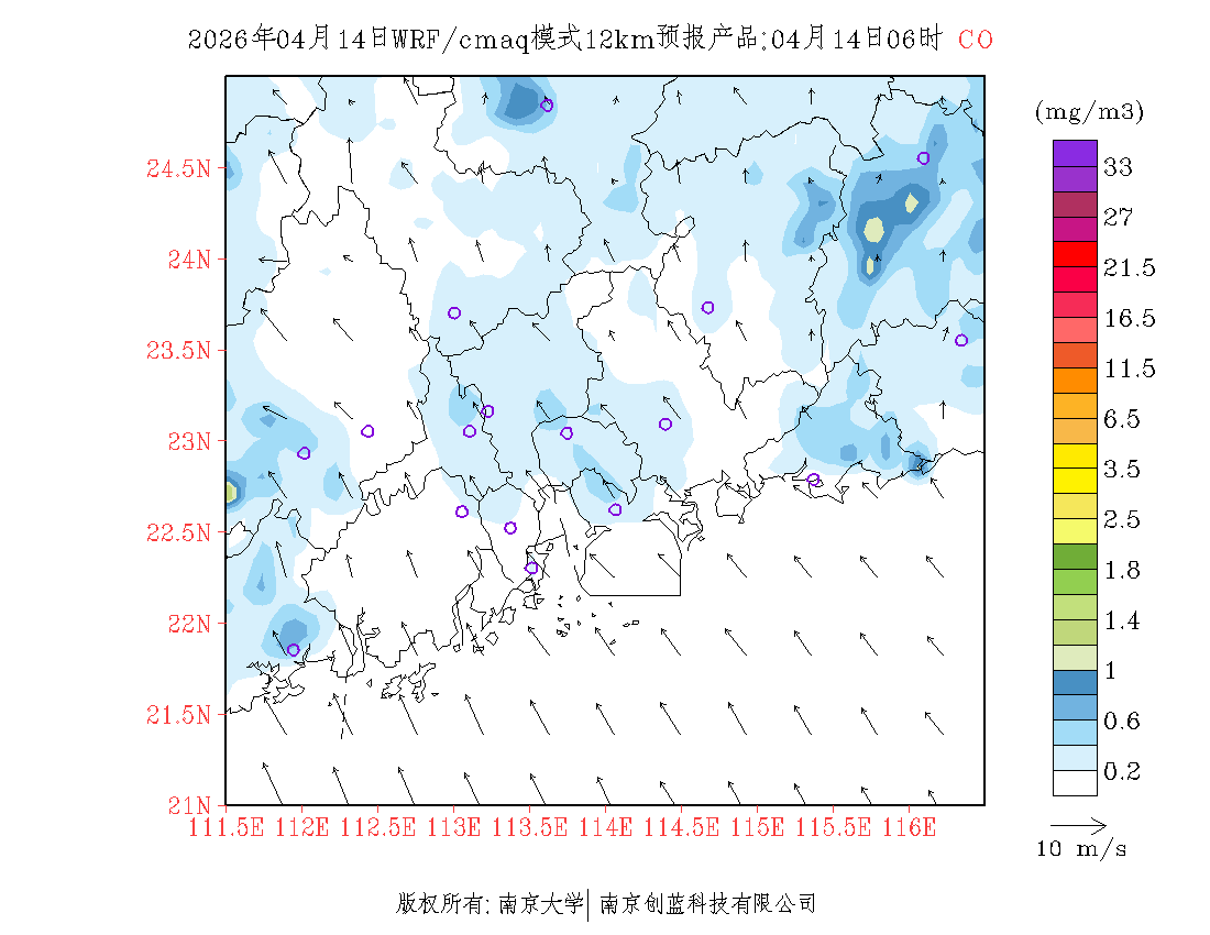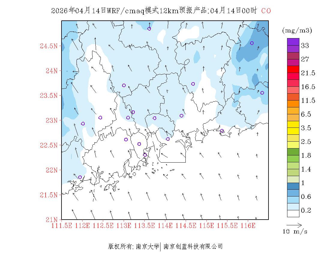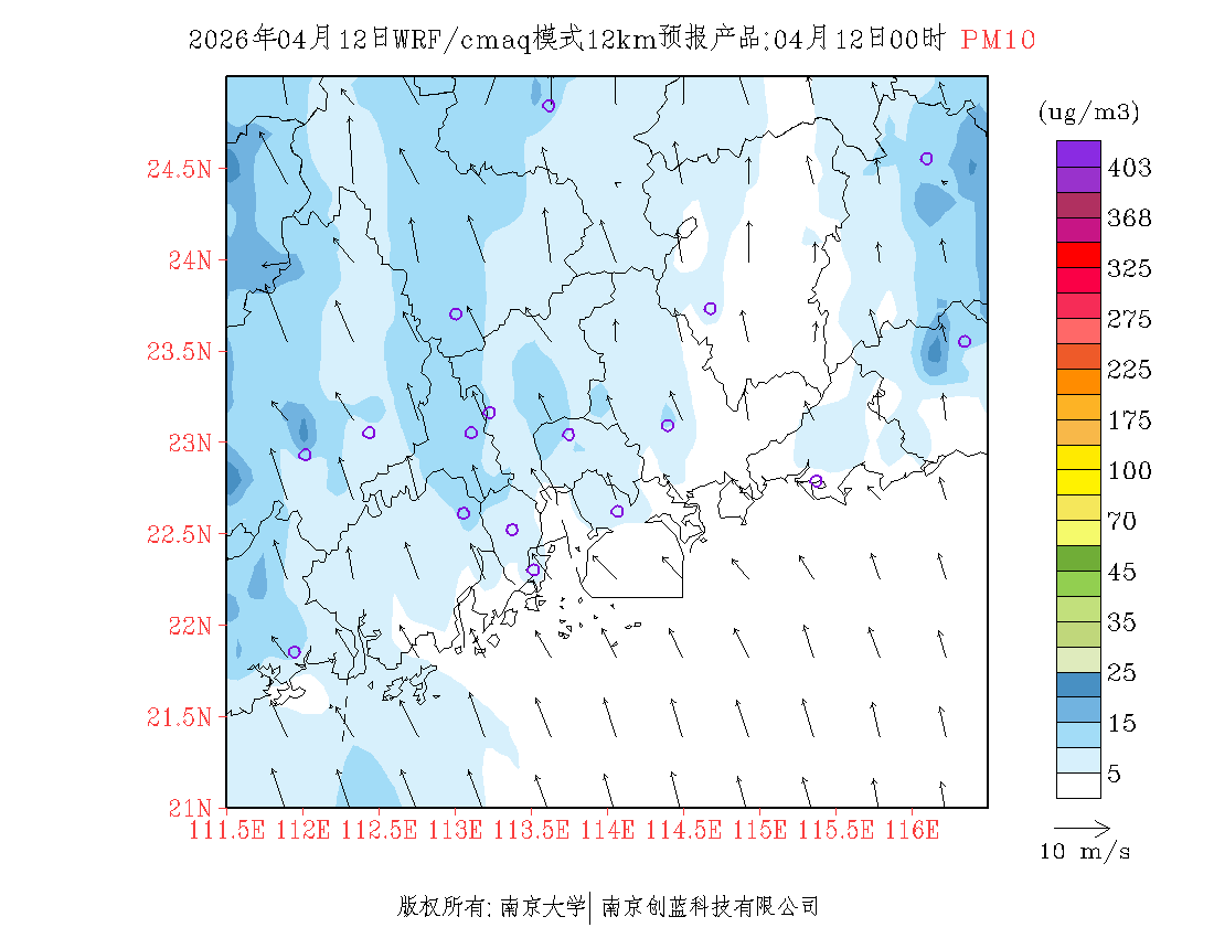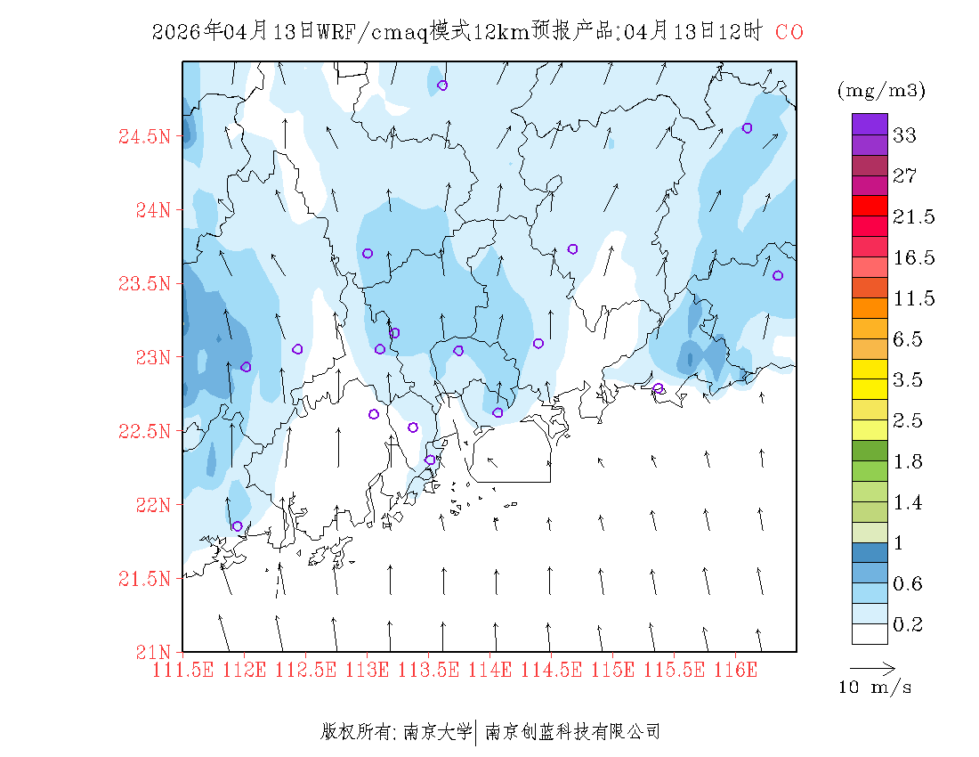 珠三角地区浓度预报场(12km)