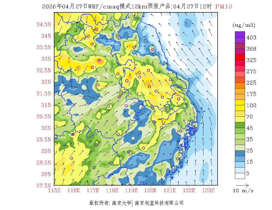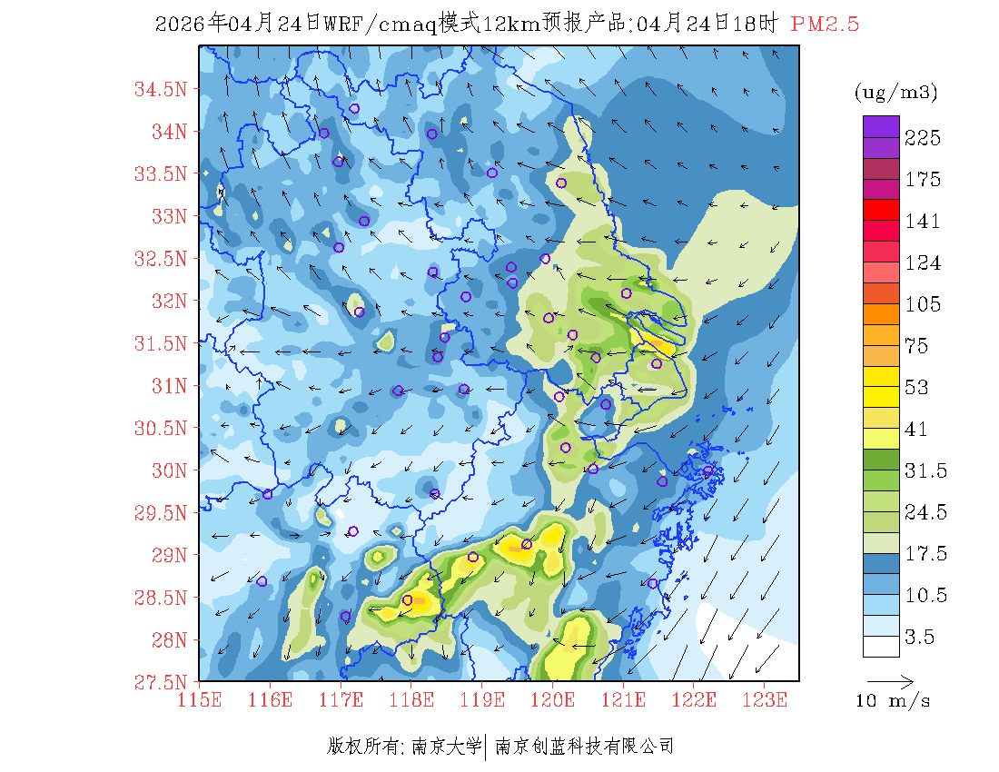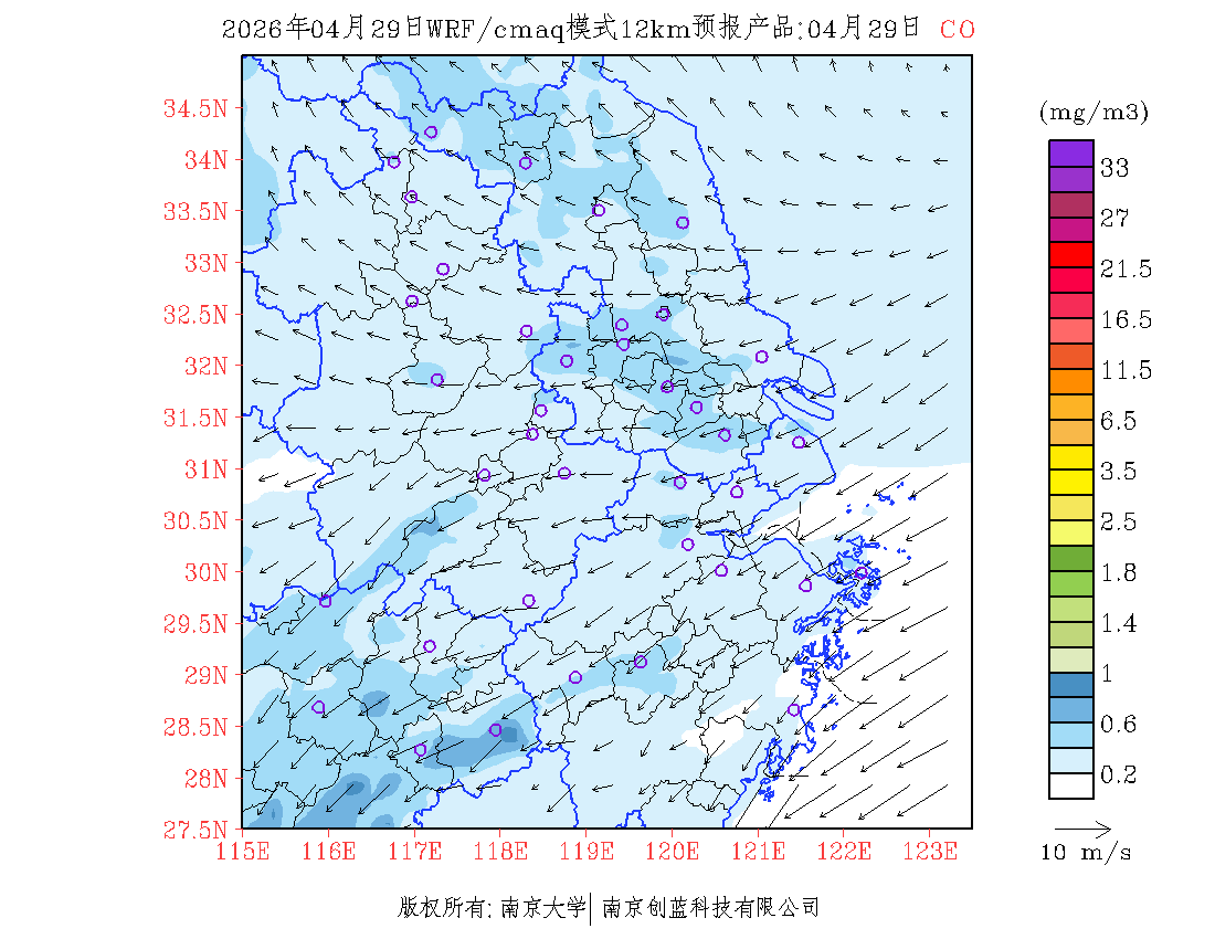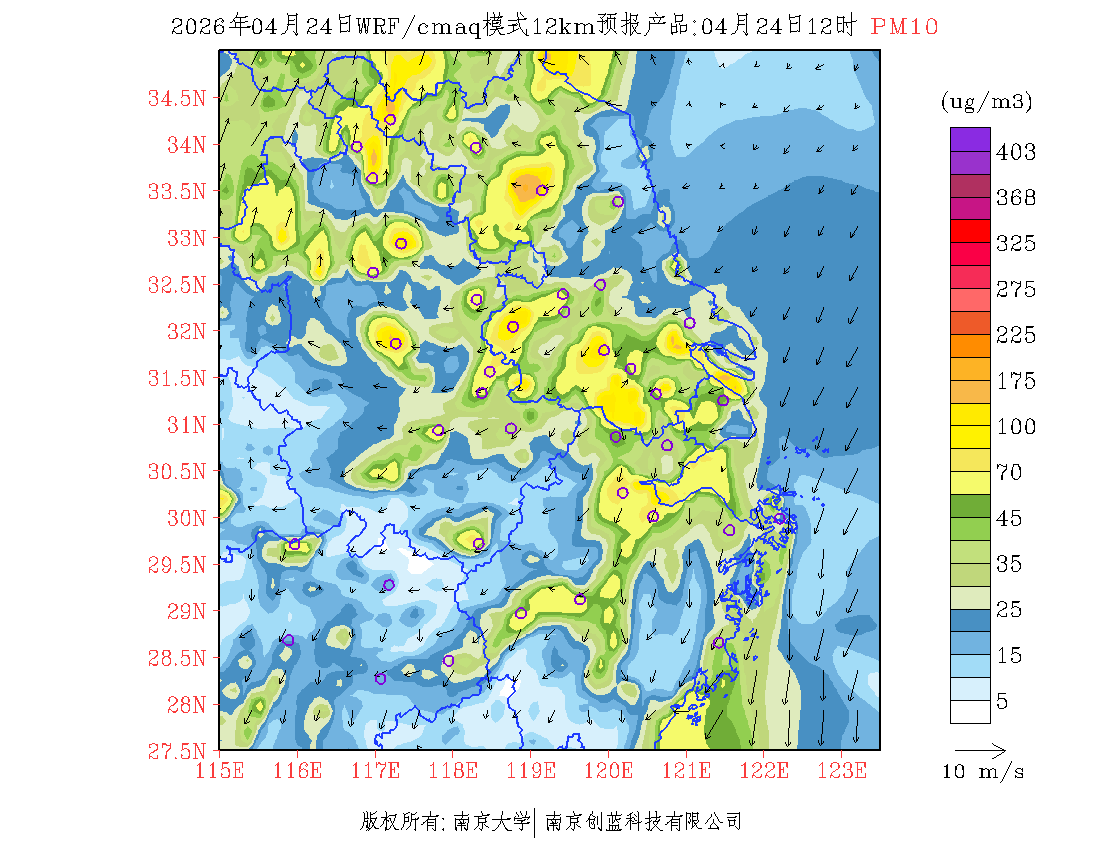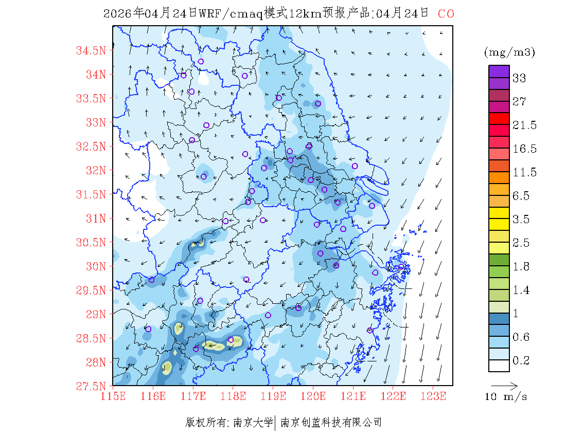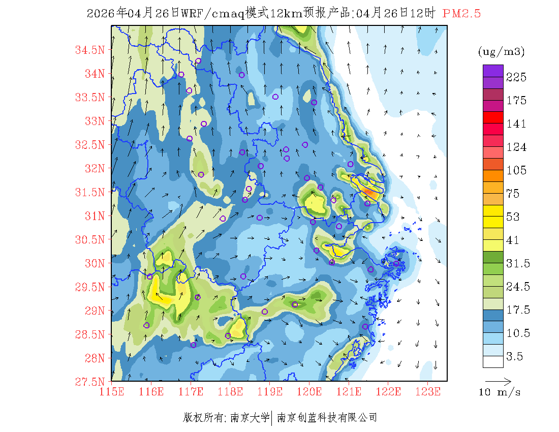 长三角地区浓度预报场(12km)