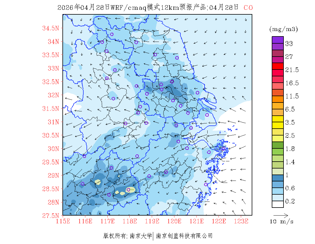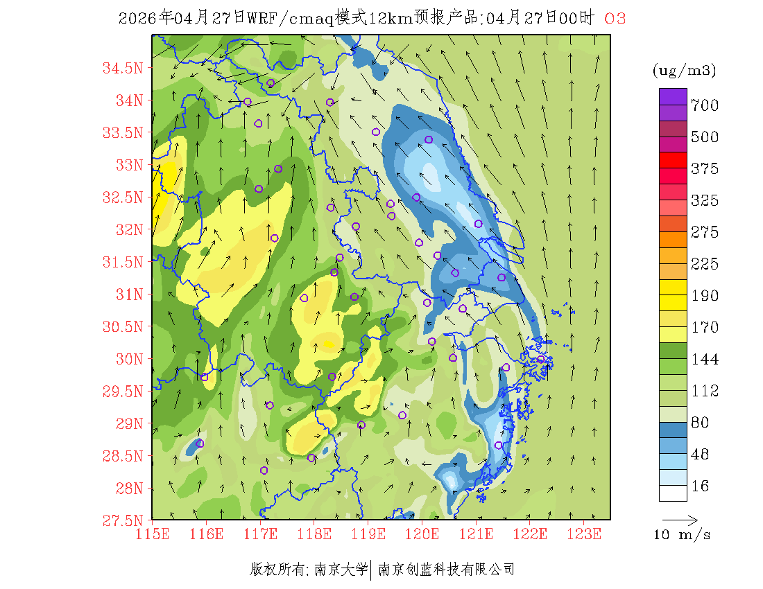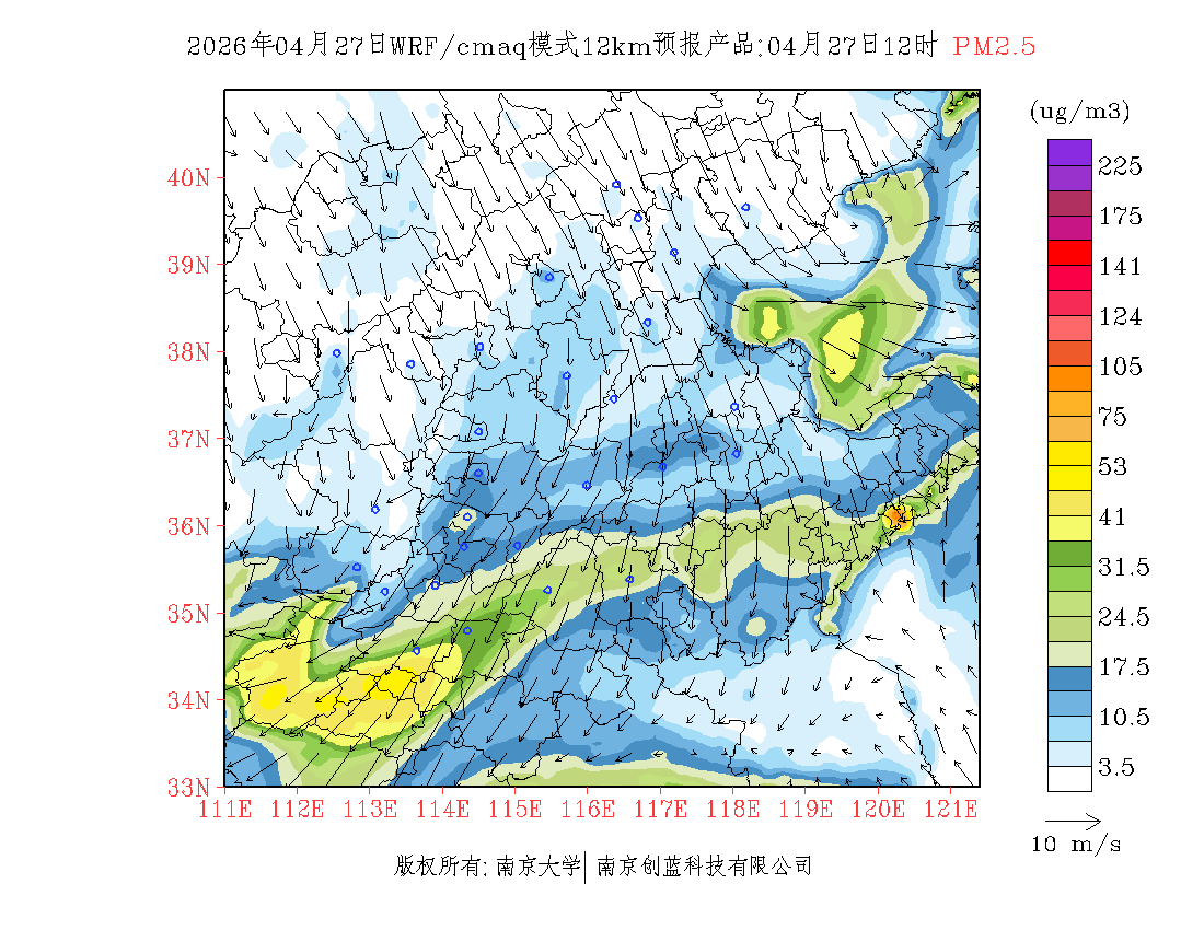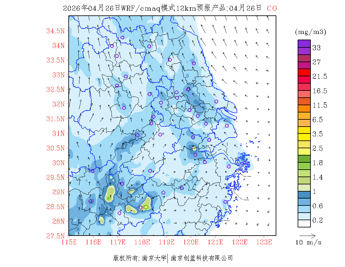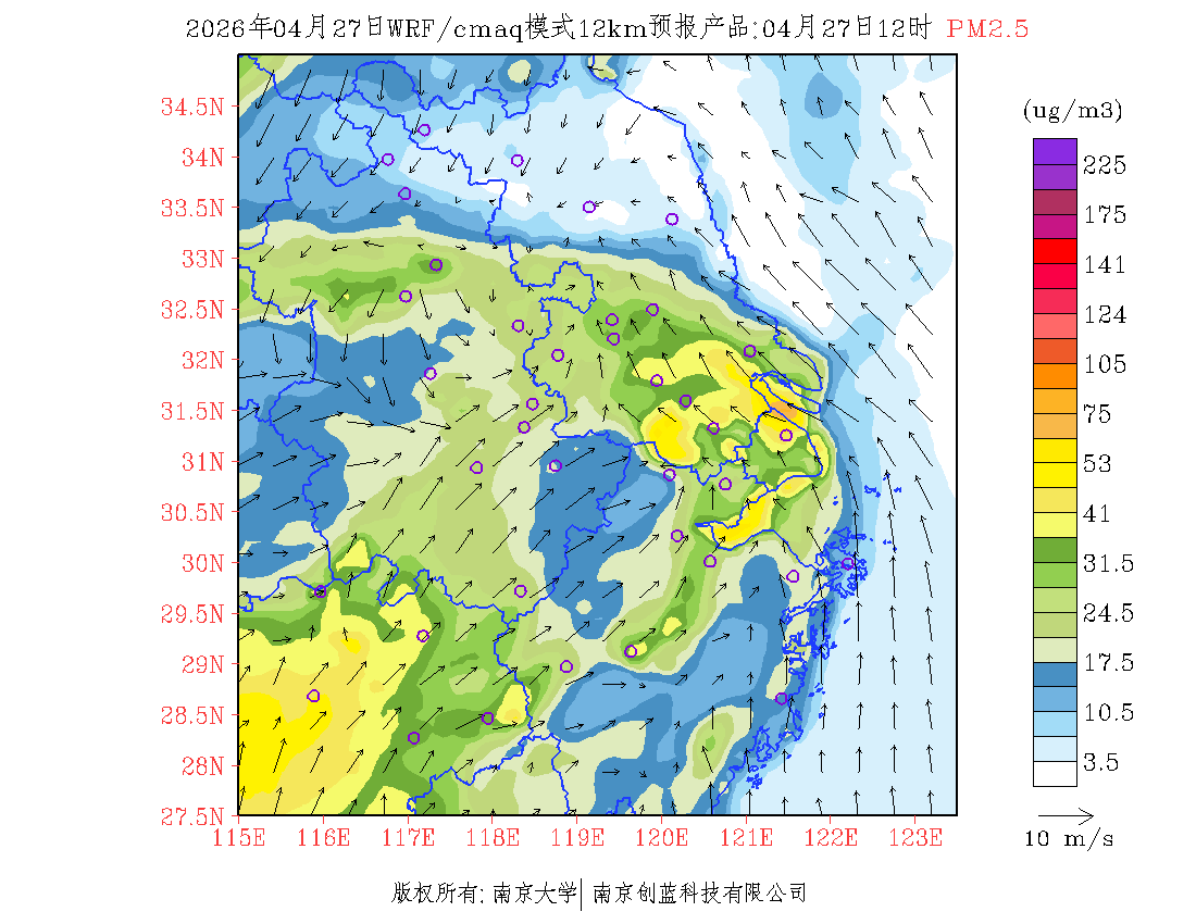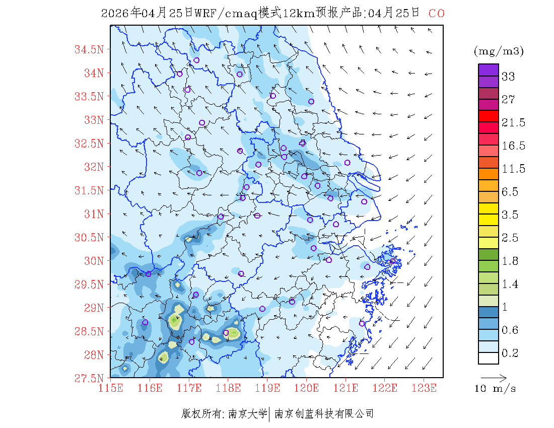 长三角地区浓度预报场(12km)