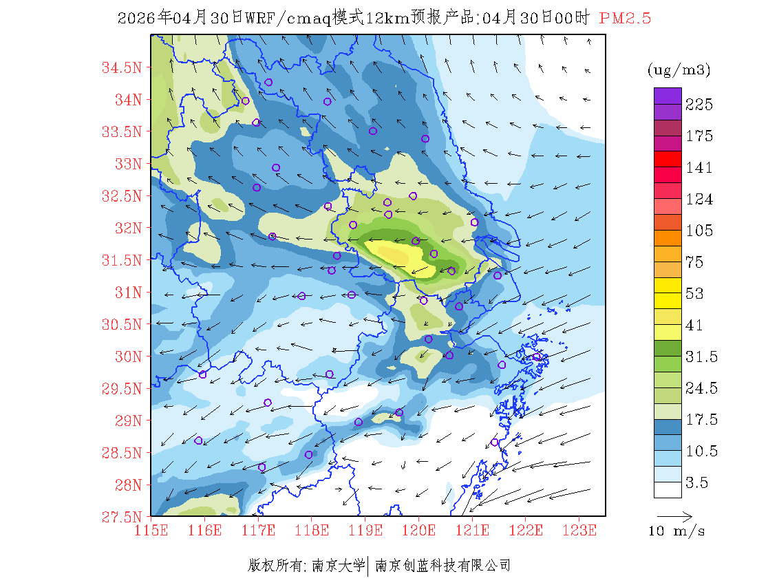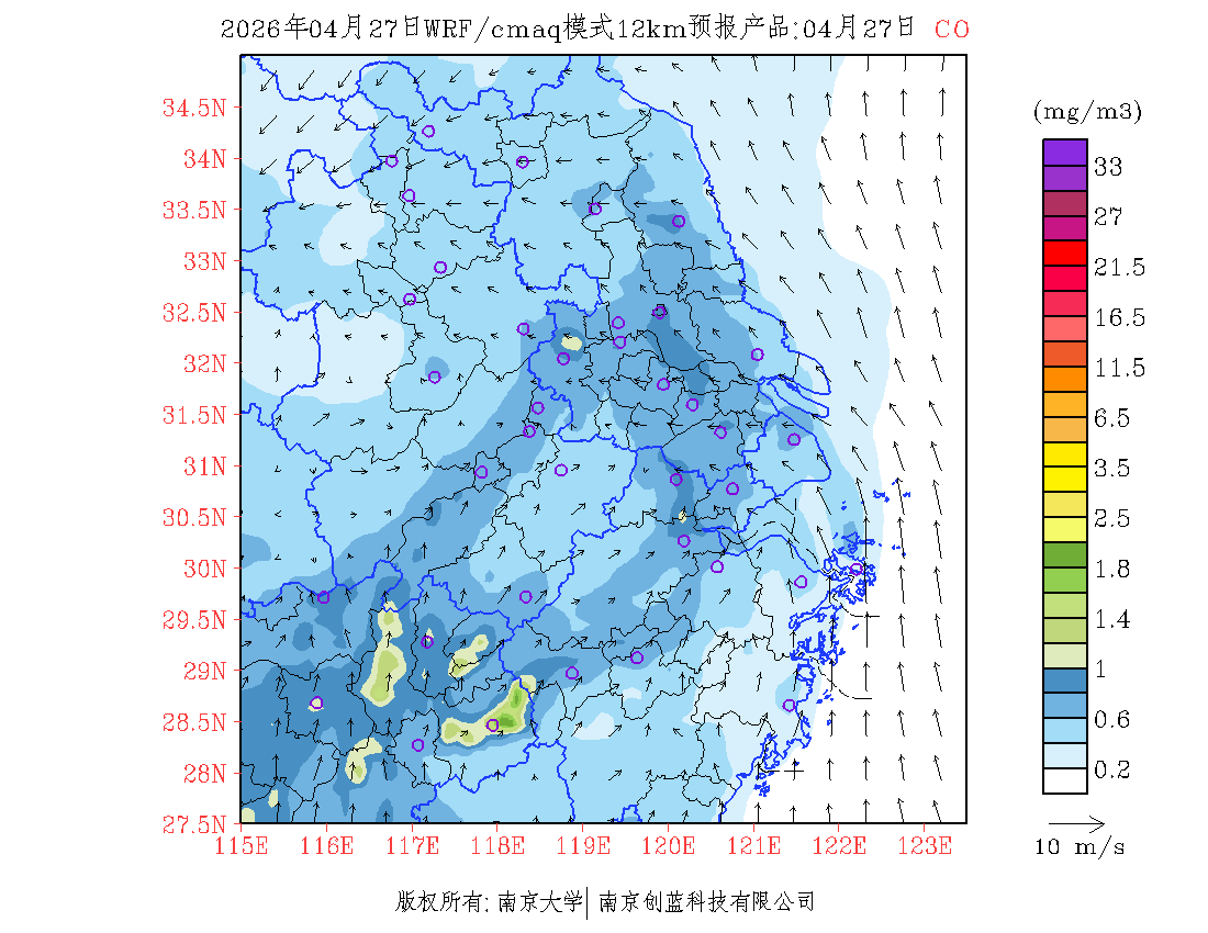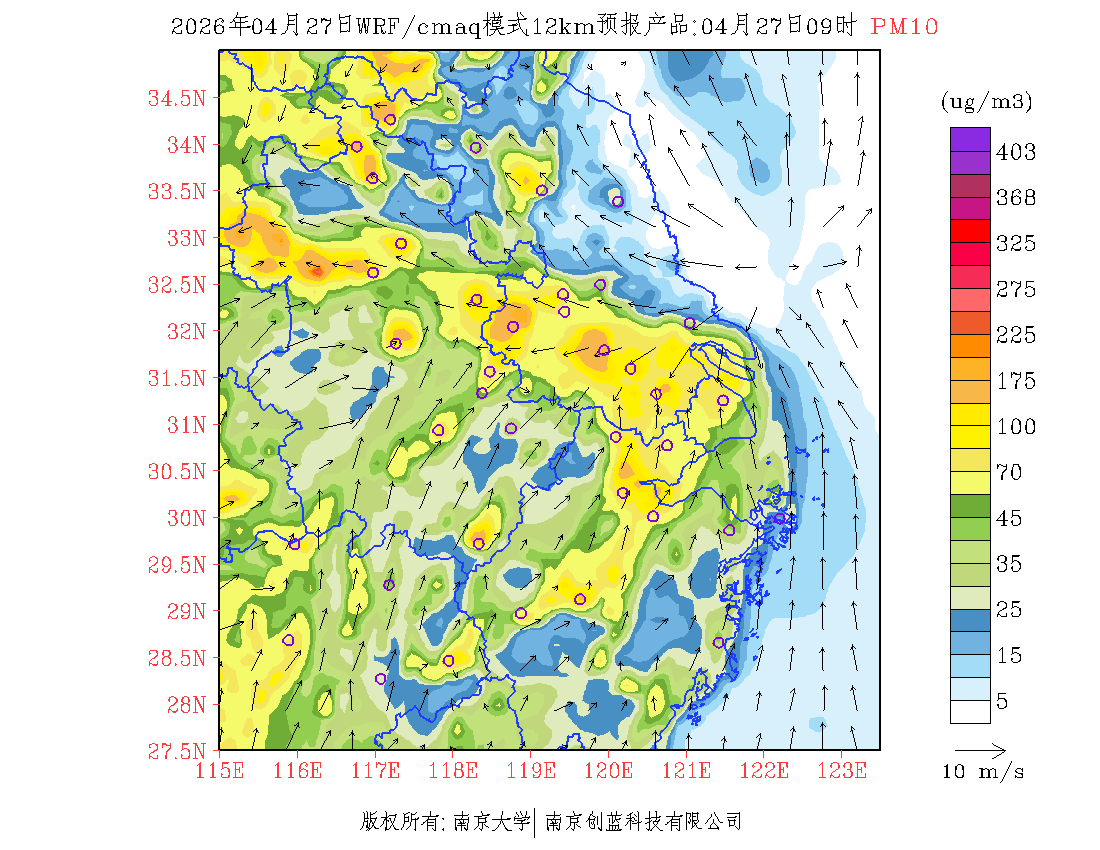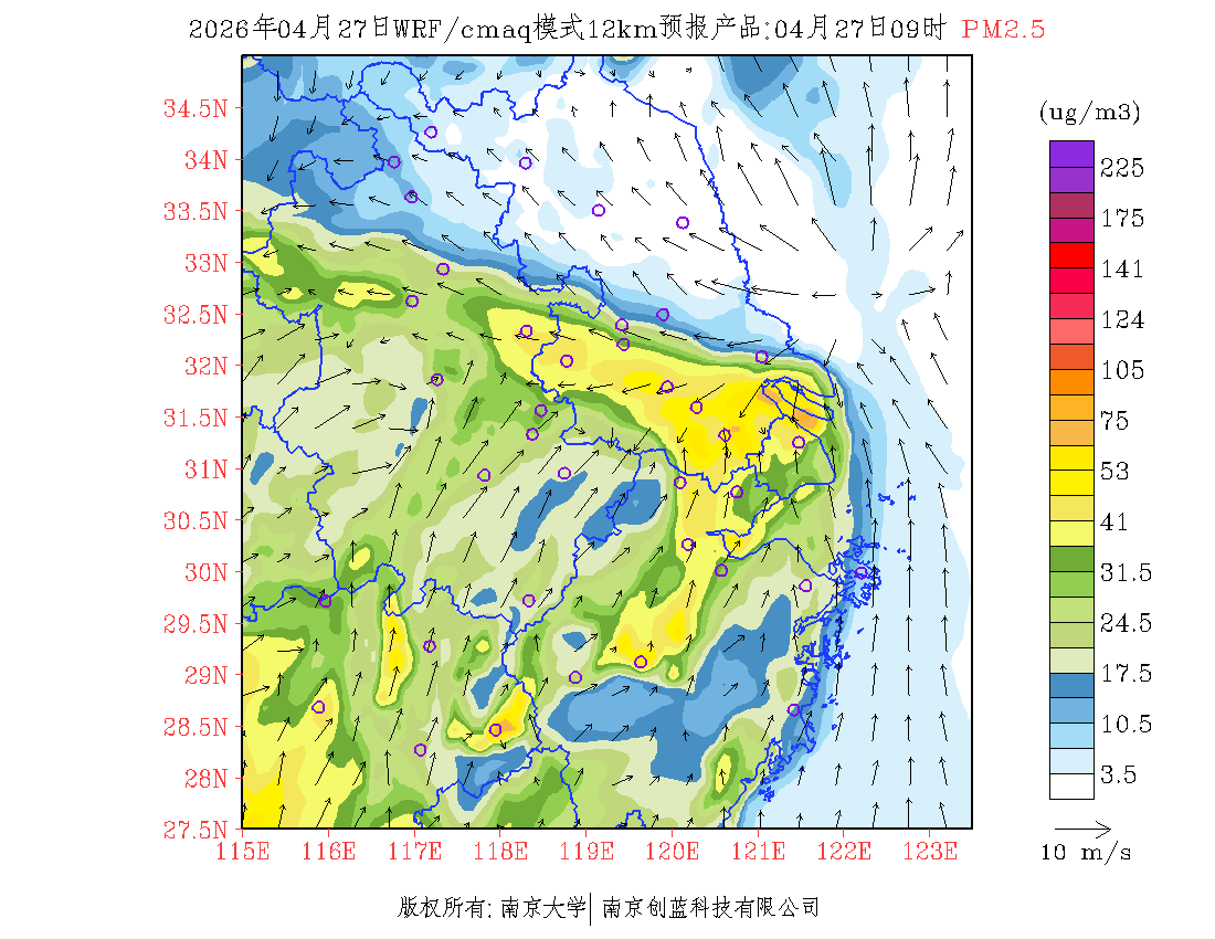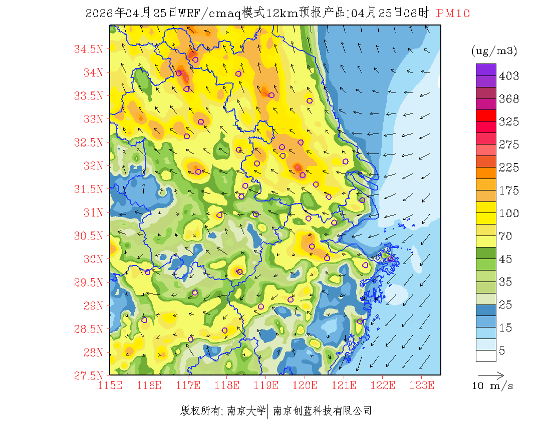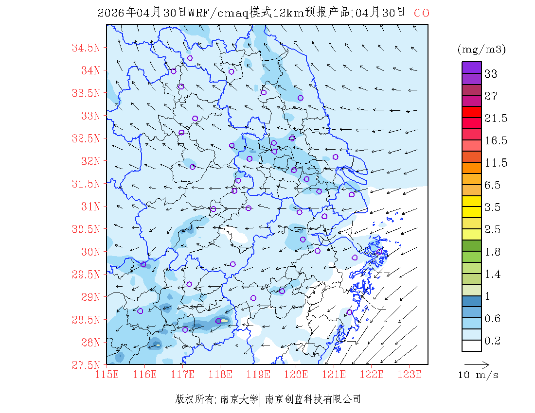 长三角地区浓度预报场(12km)