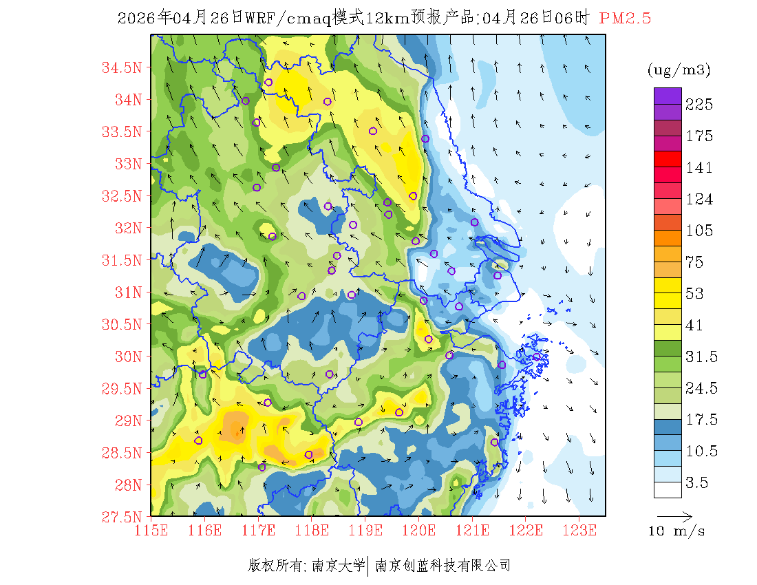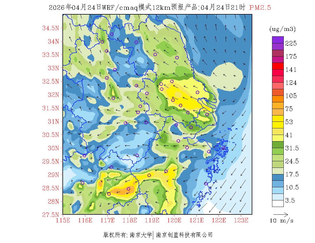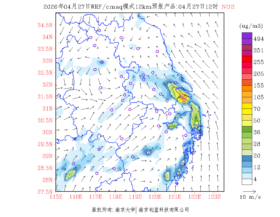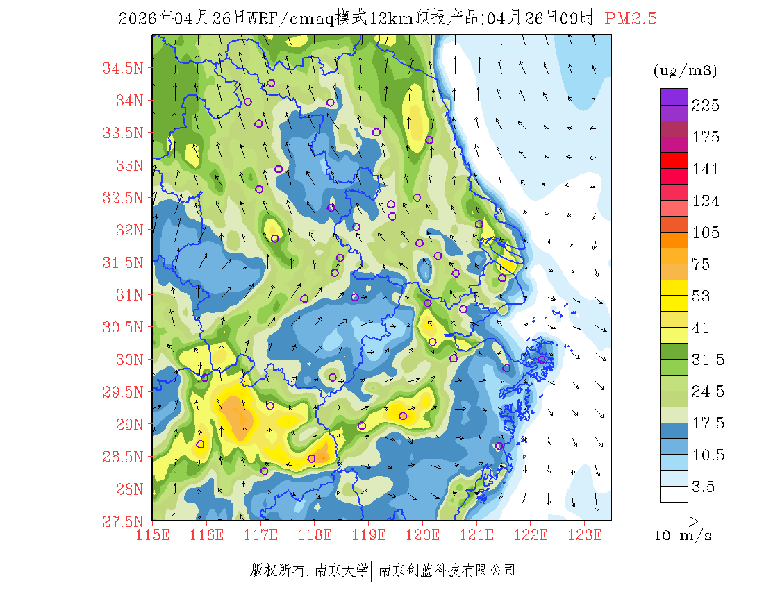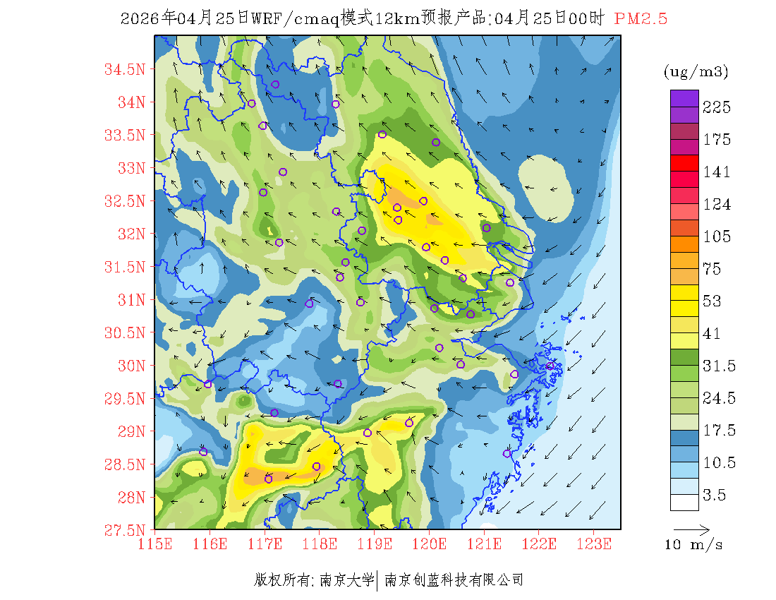 长三角地区浓度预报场(12km)