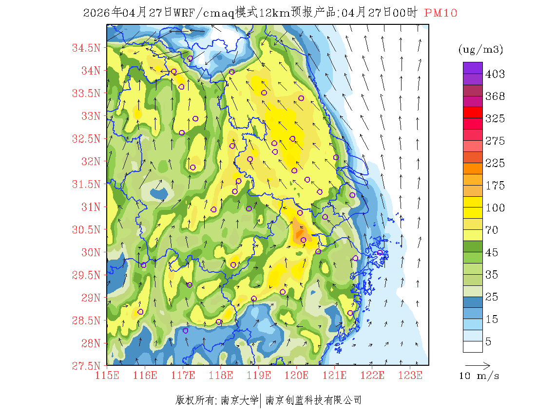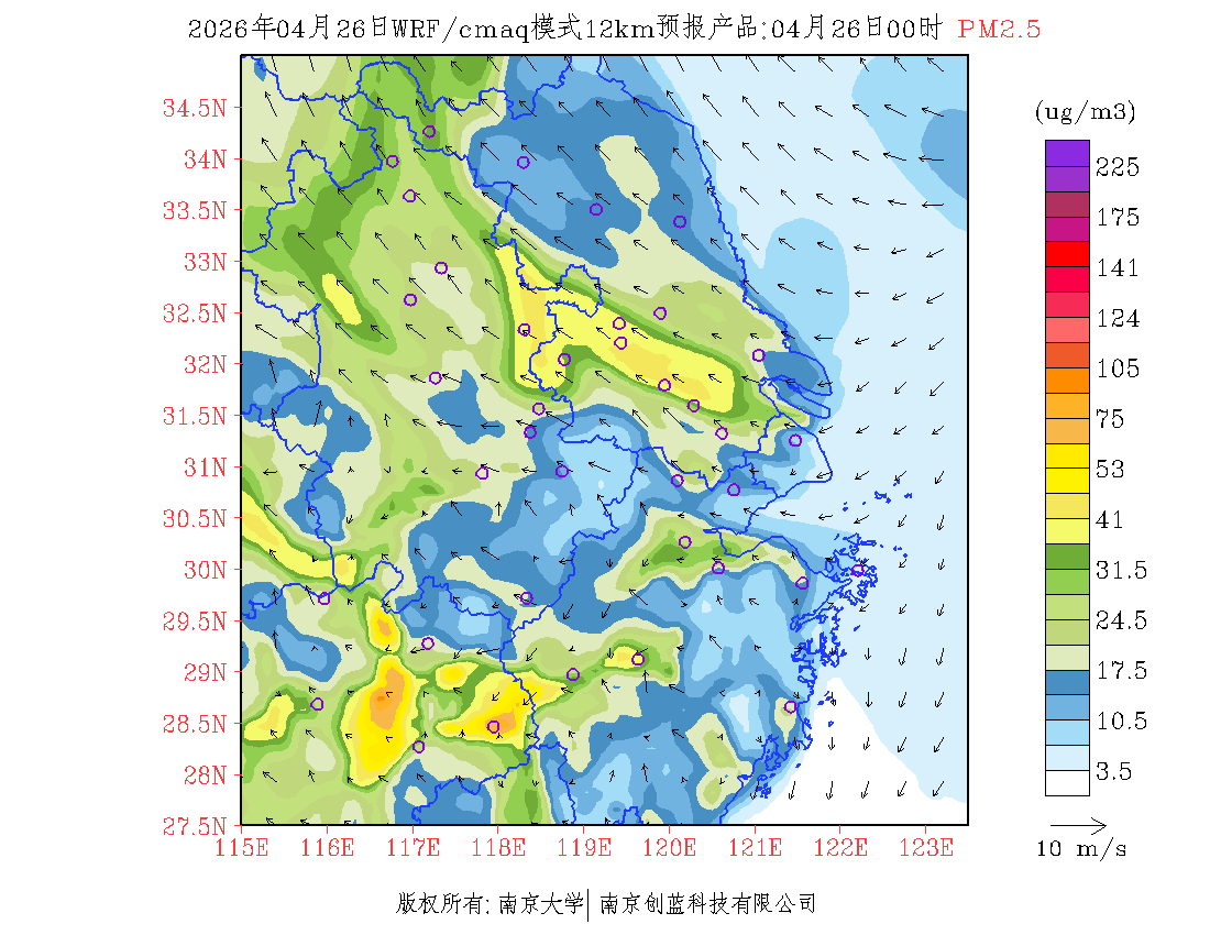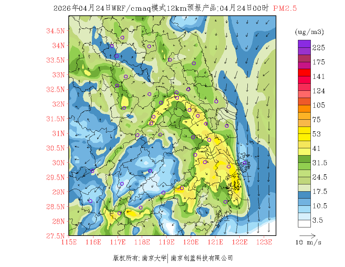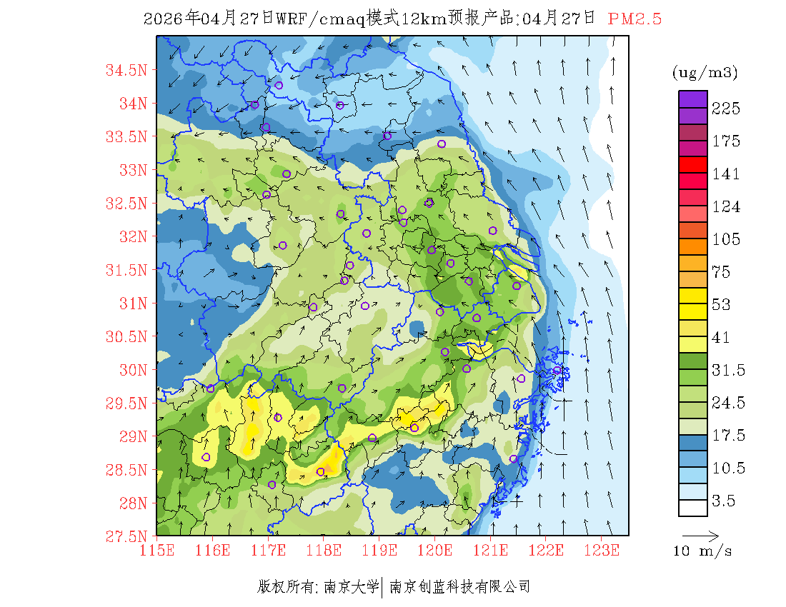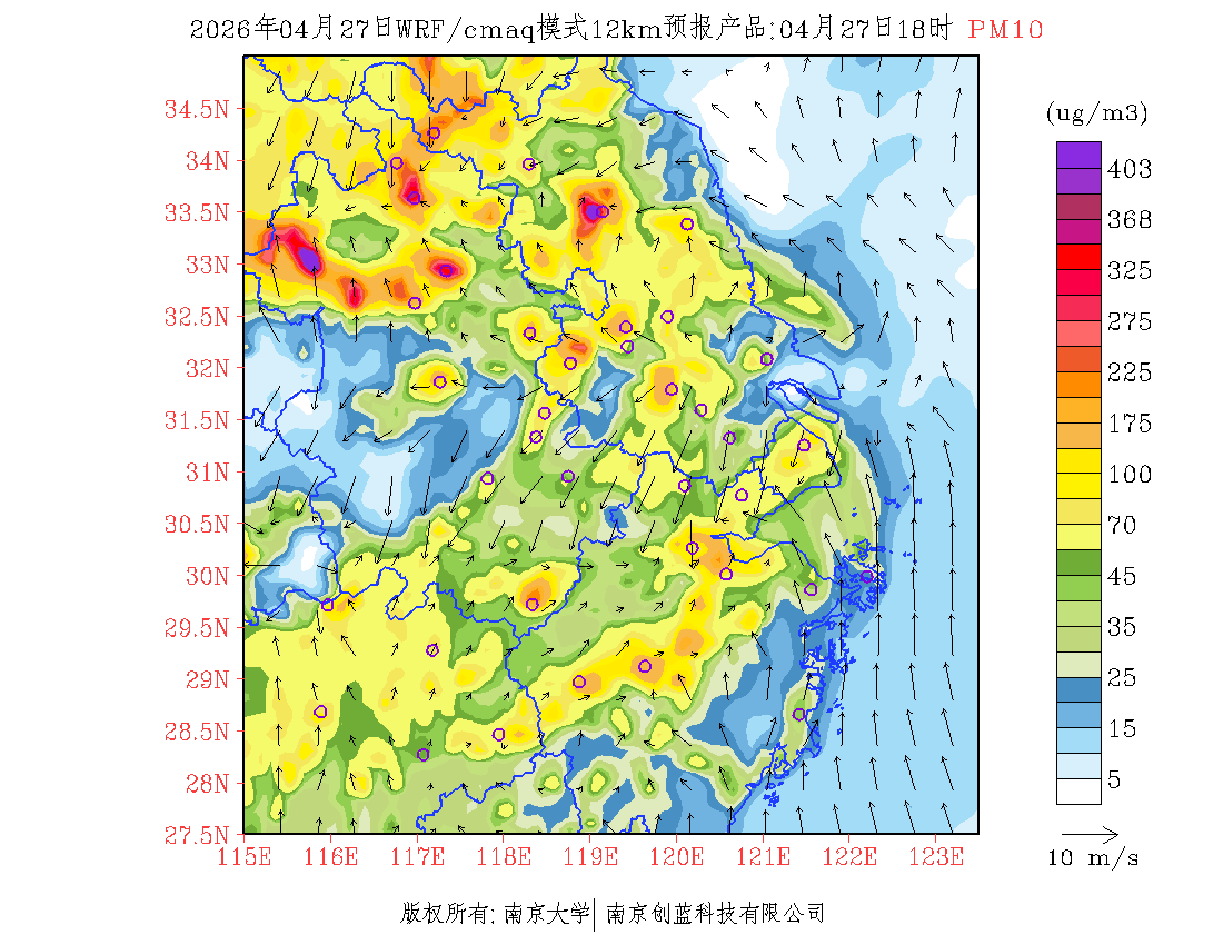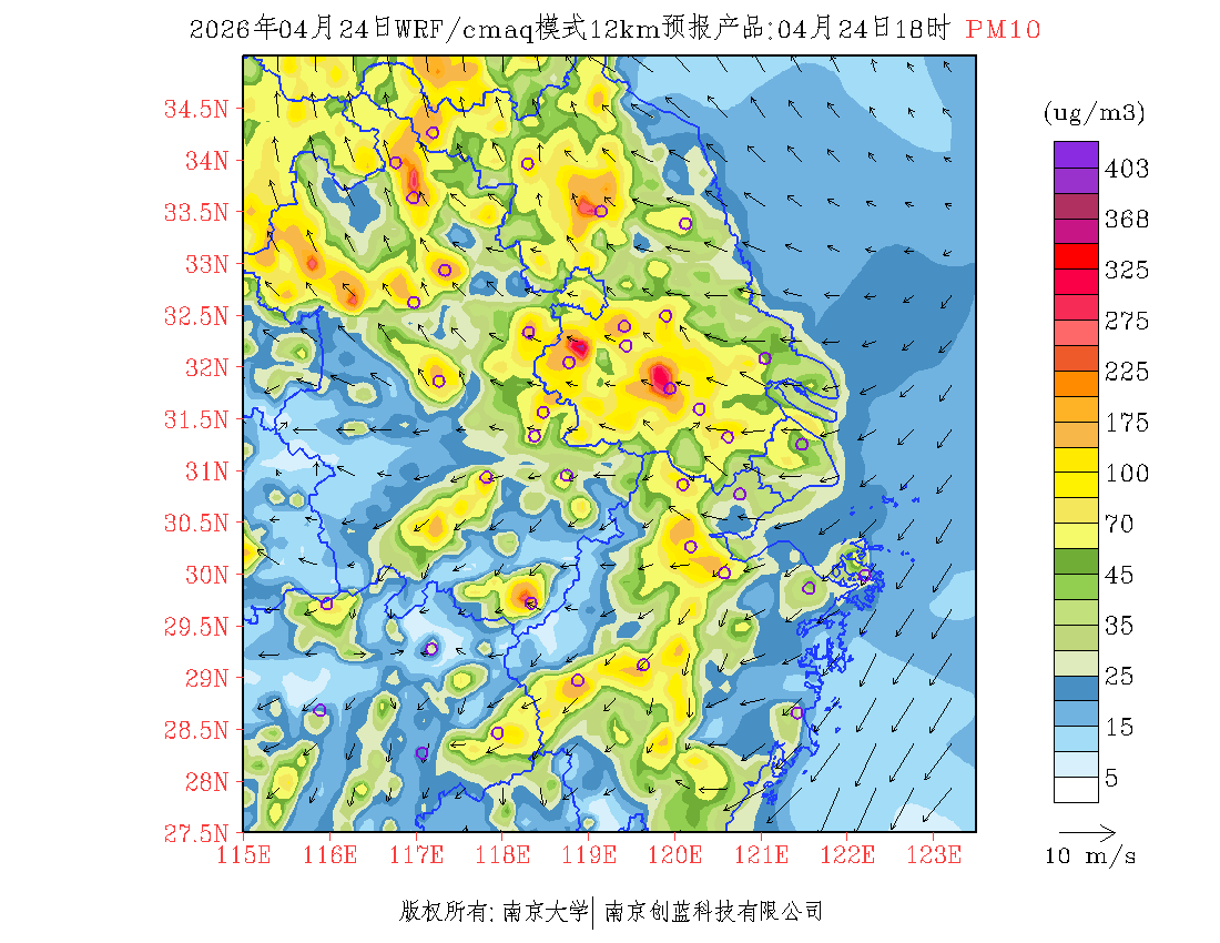 长三角地区浓度预报场(12km)