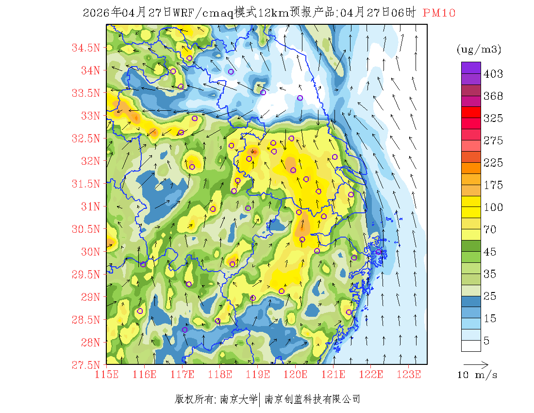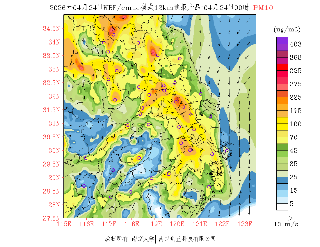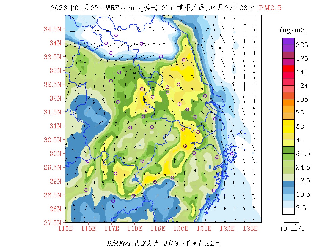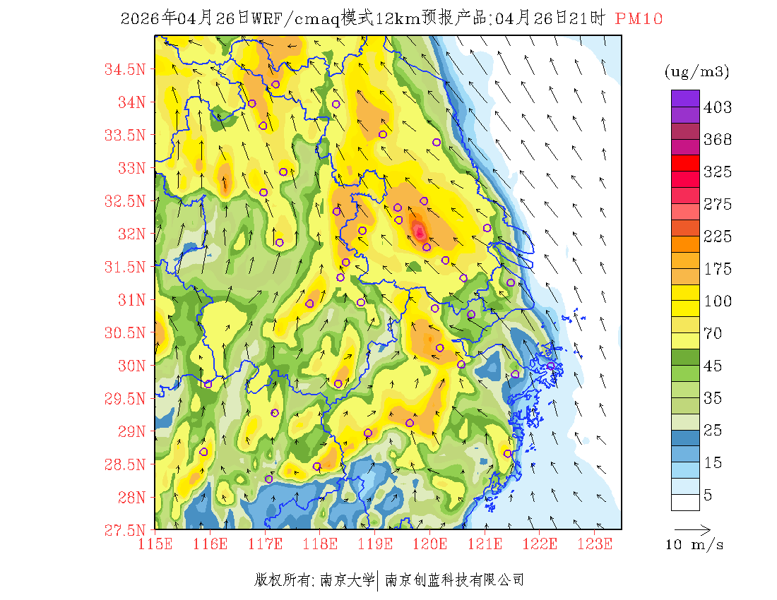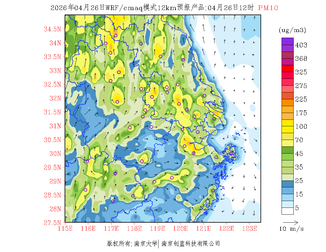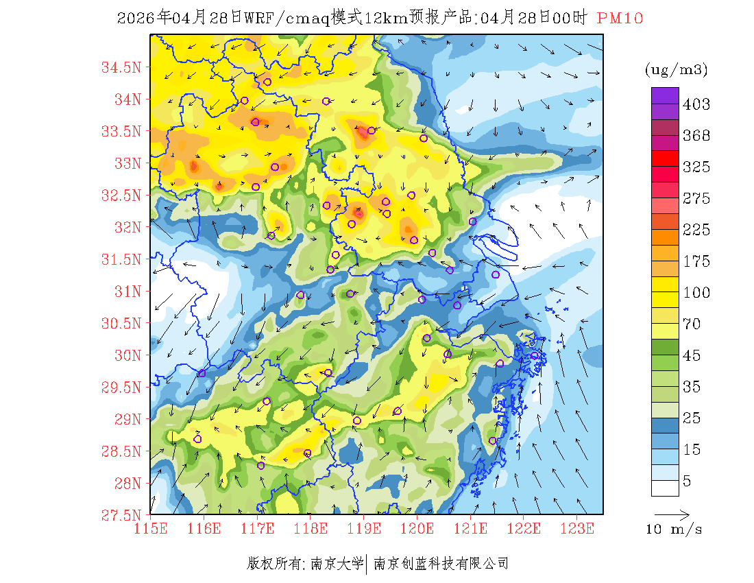 长三角地区浓度预报场(12km)