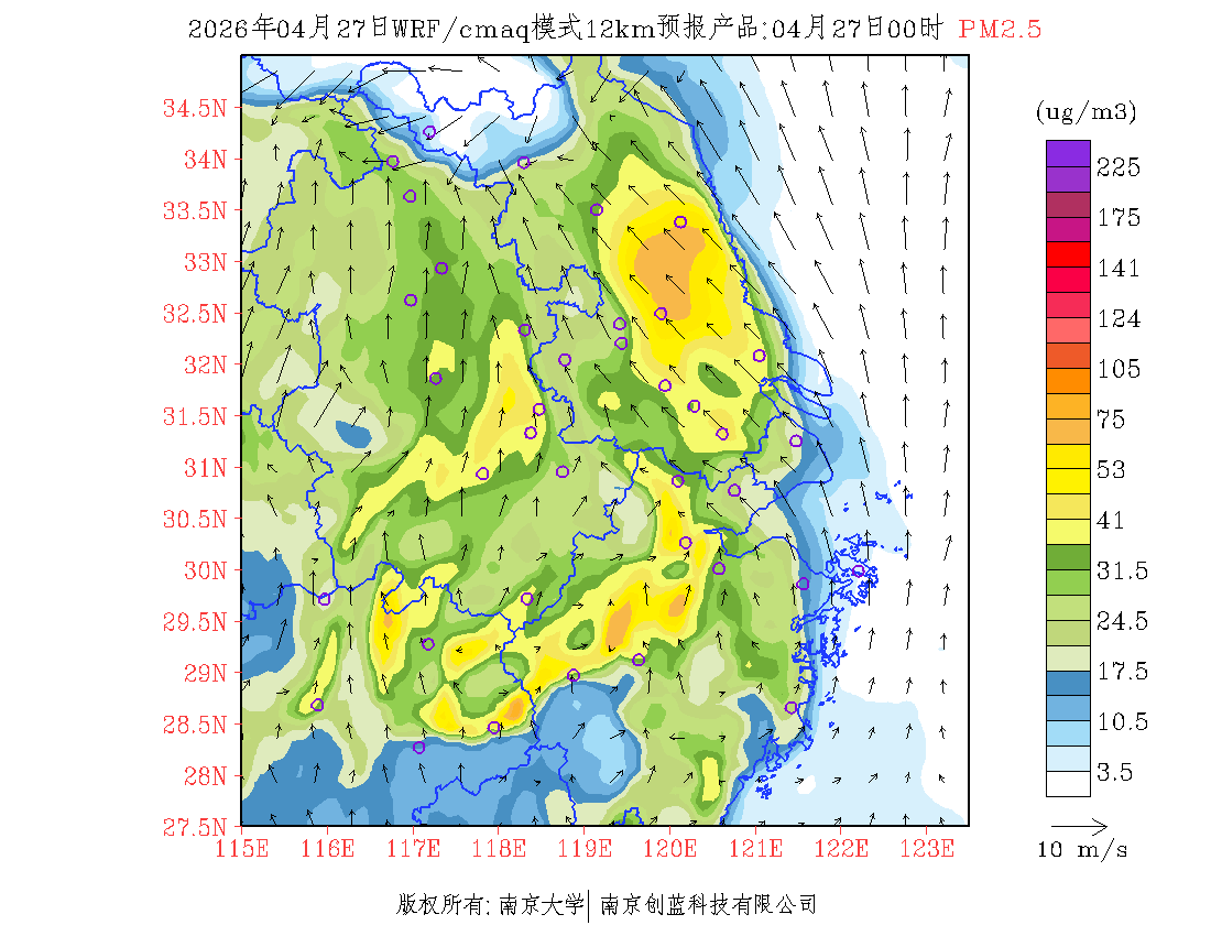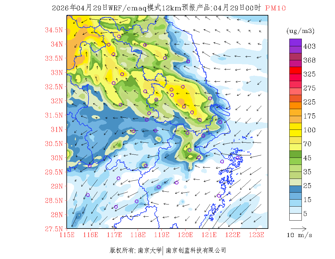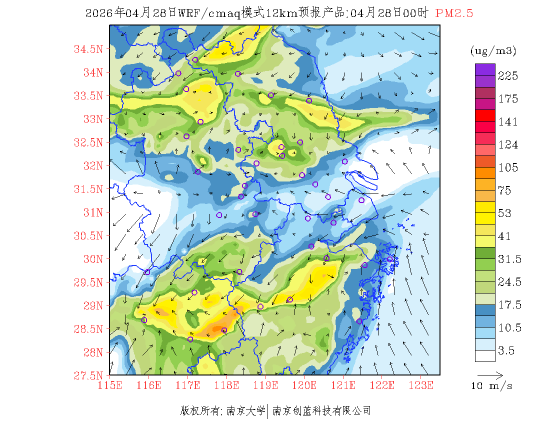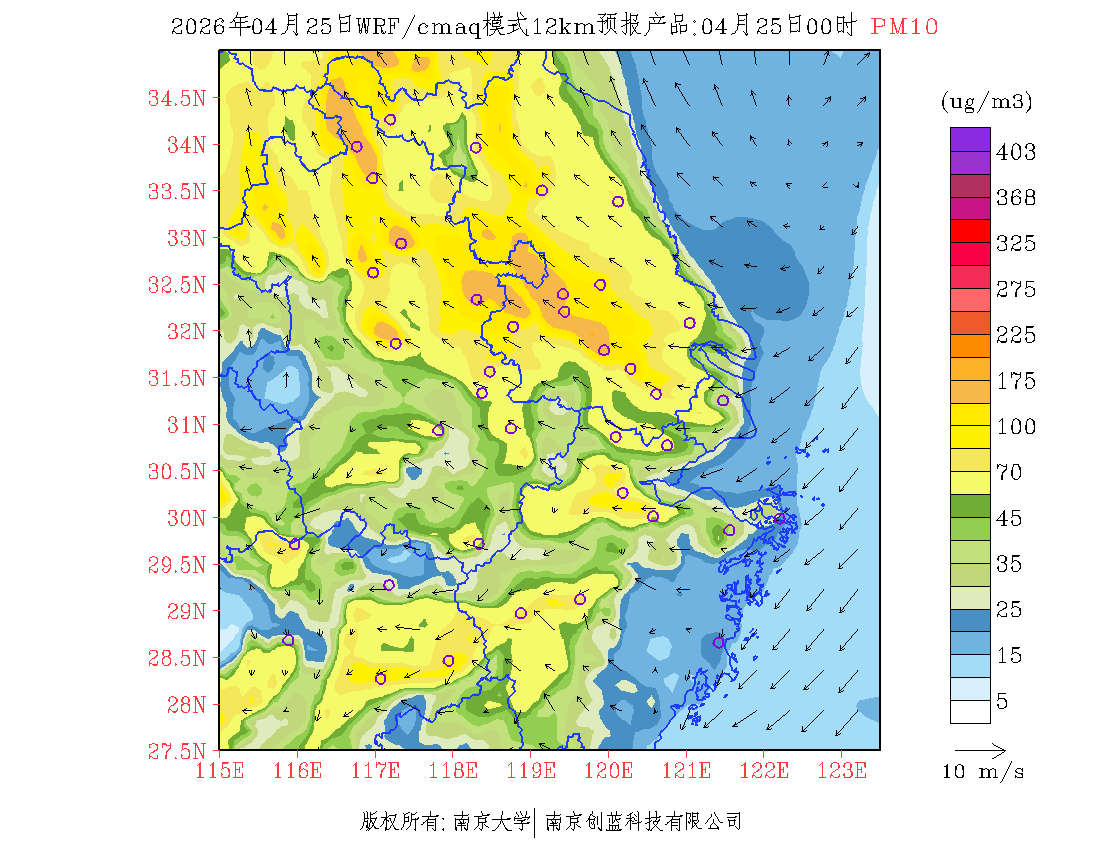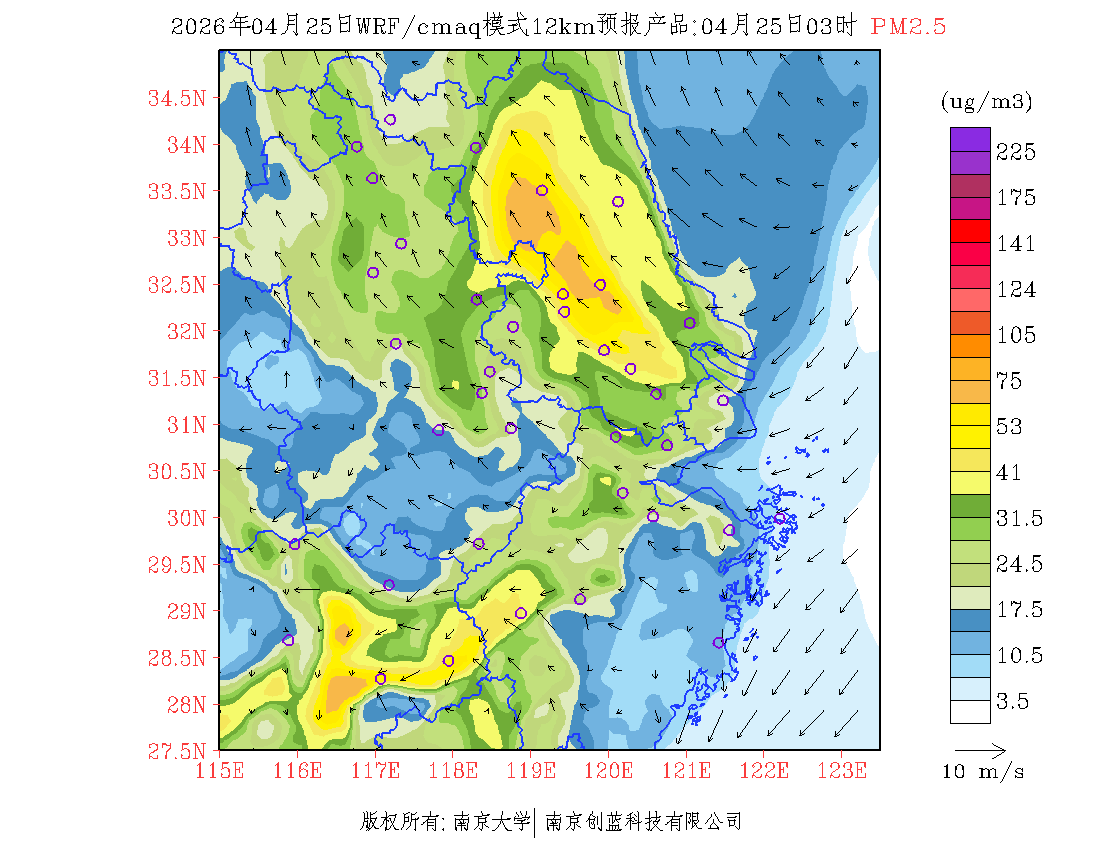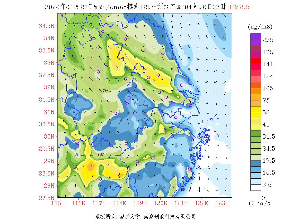 长三角地区浓度预报场(12km)