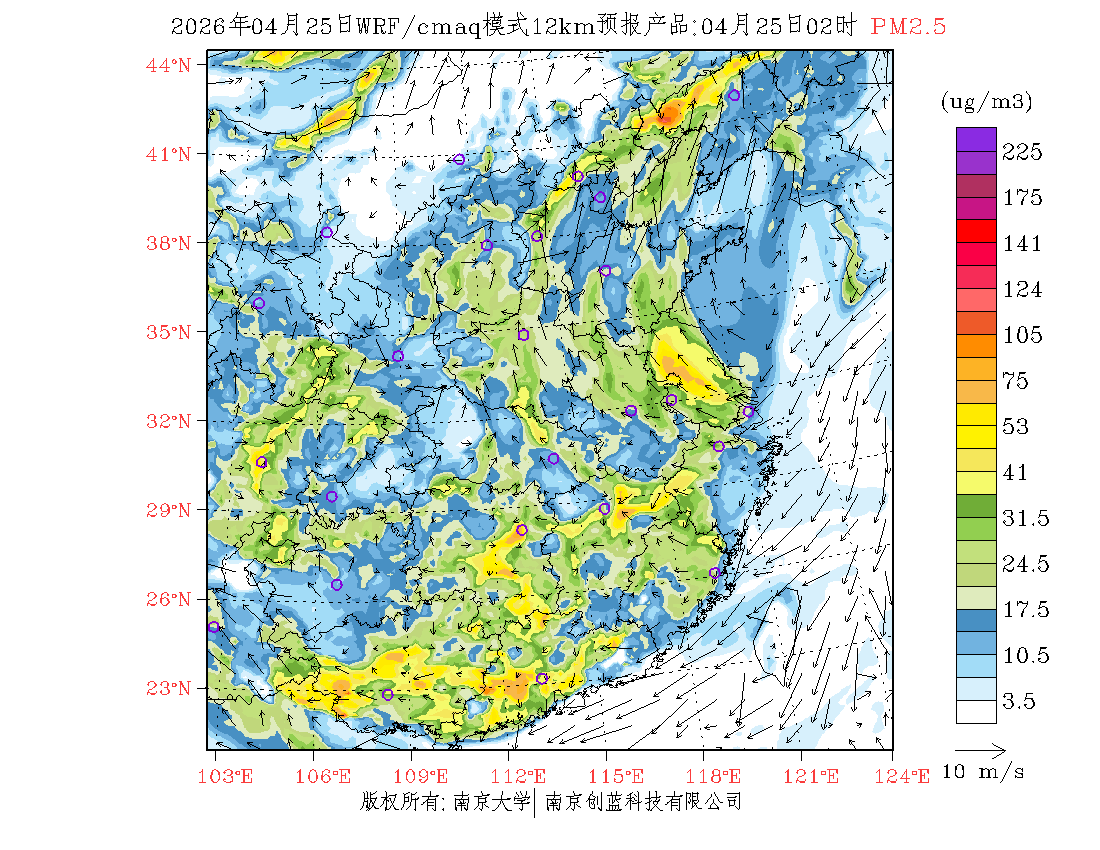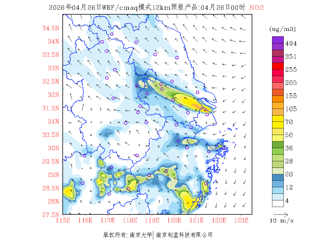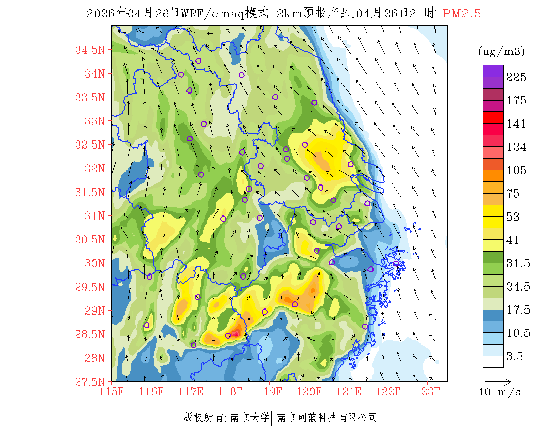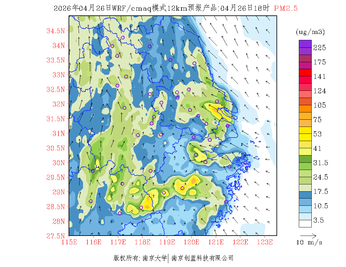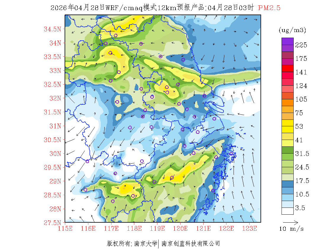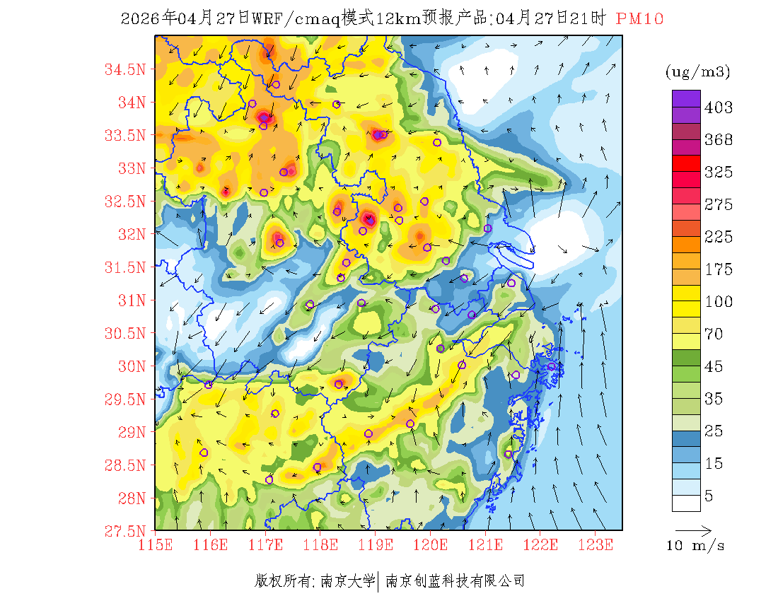 长三角地区浓度预报场(12km)