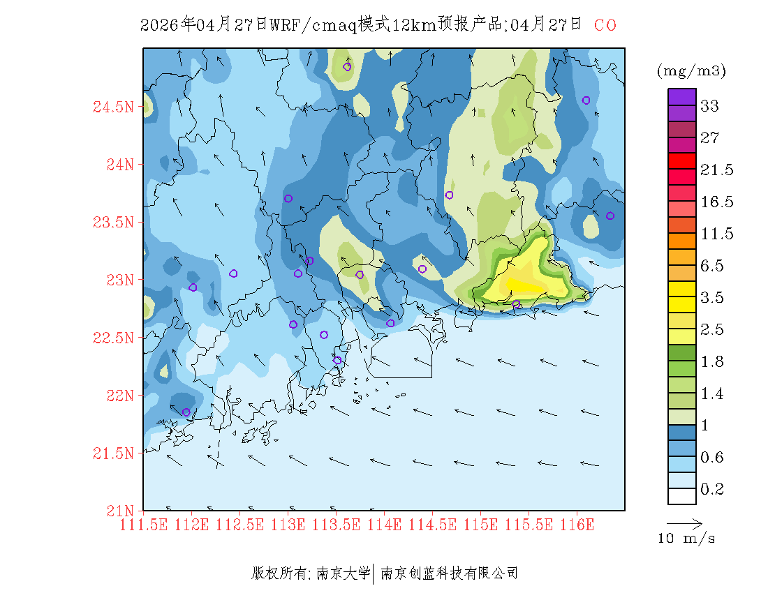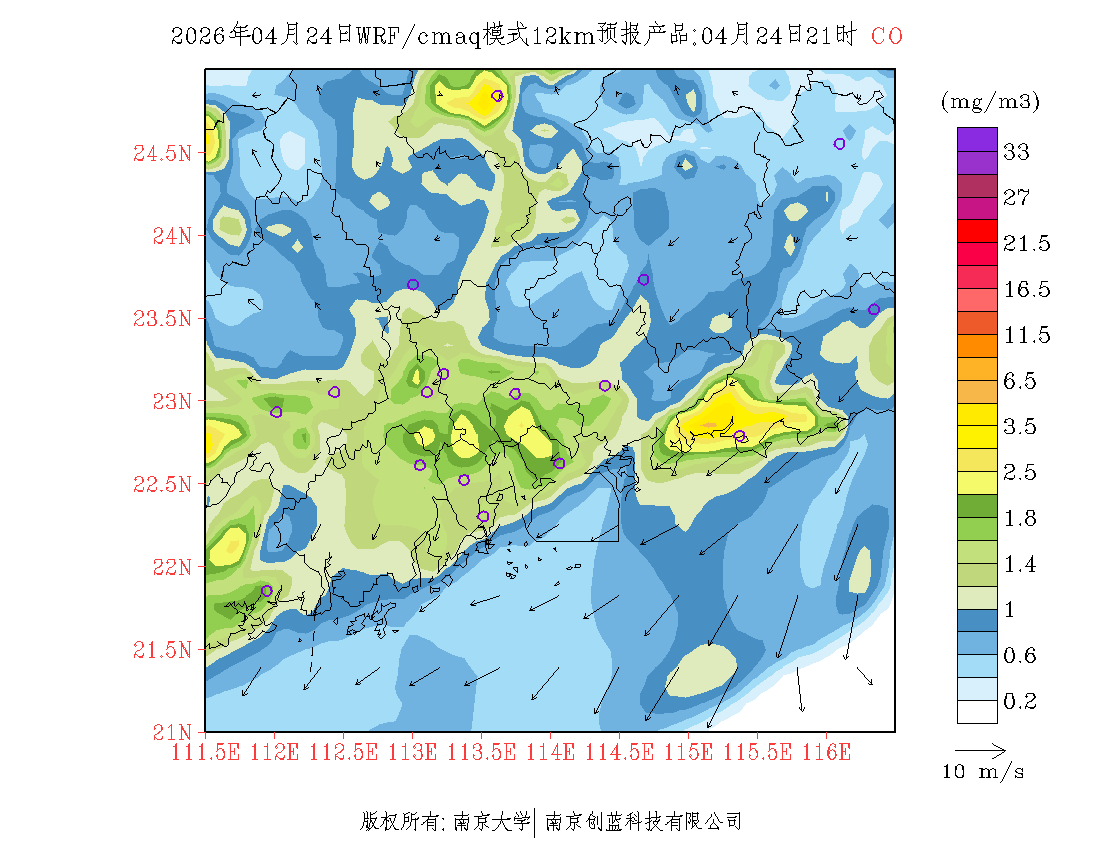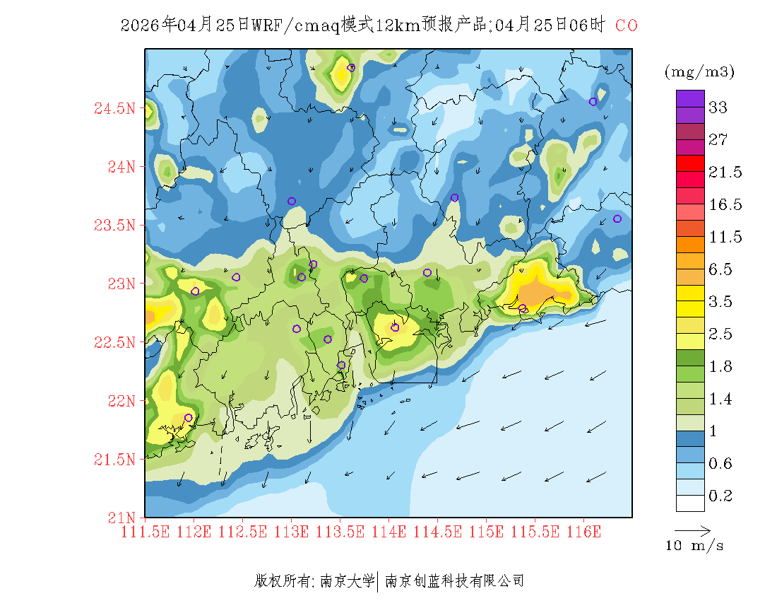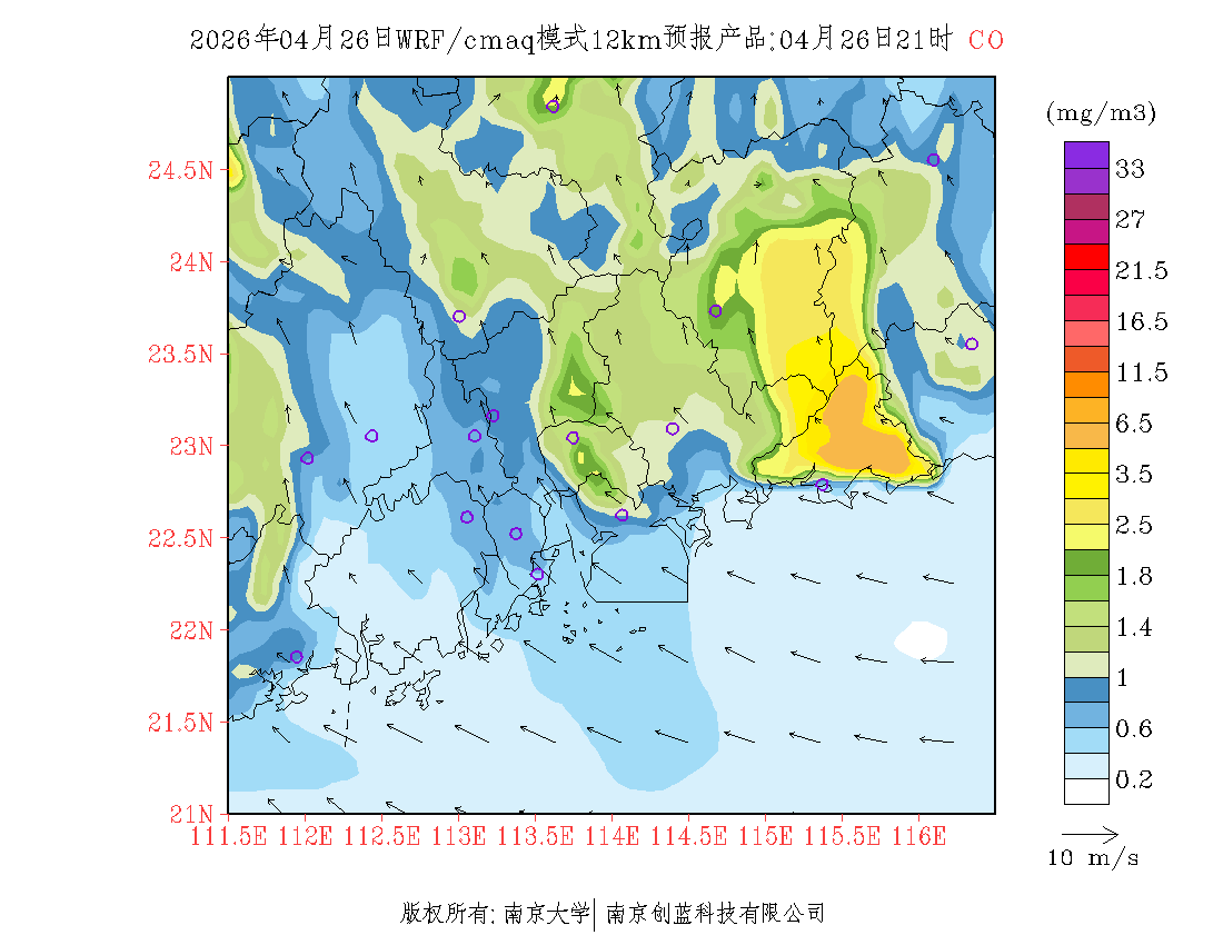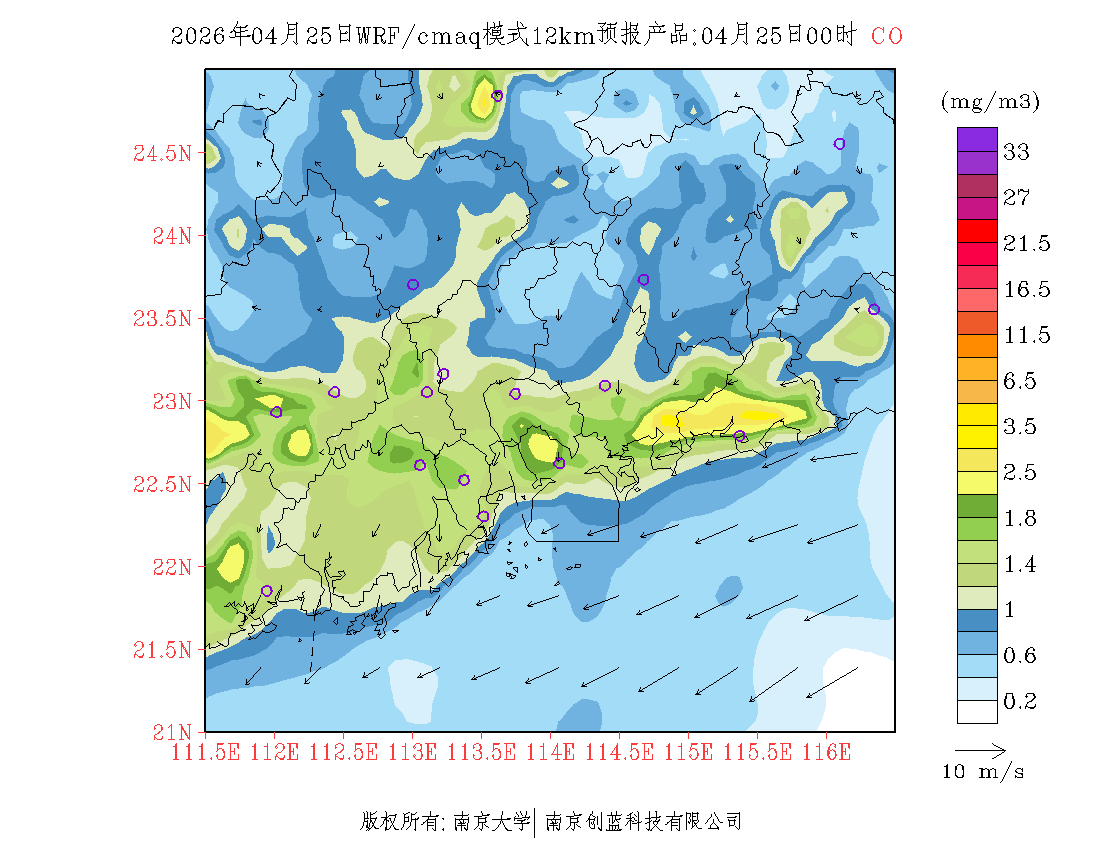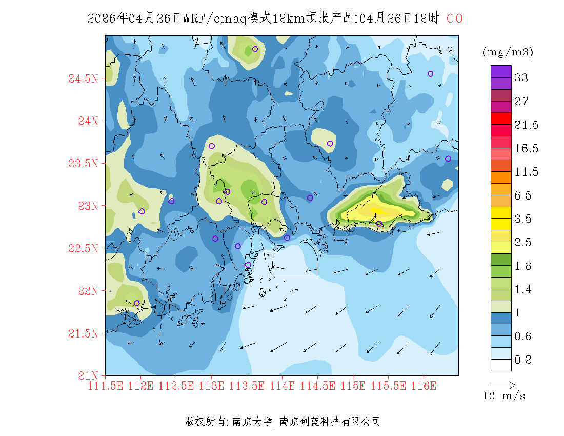 珠三角地区浓度预报场(12km)