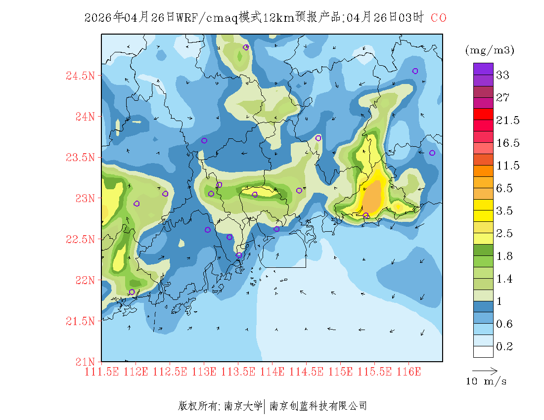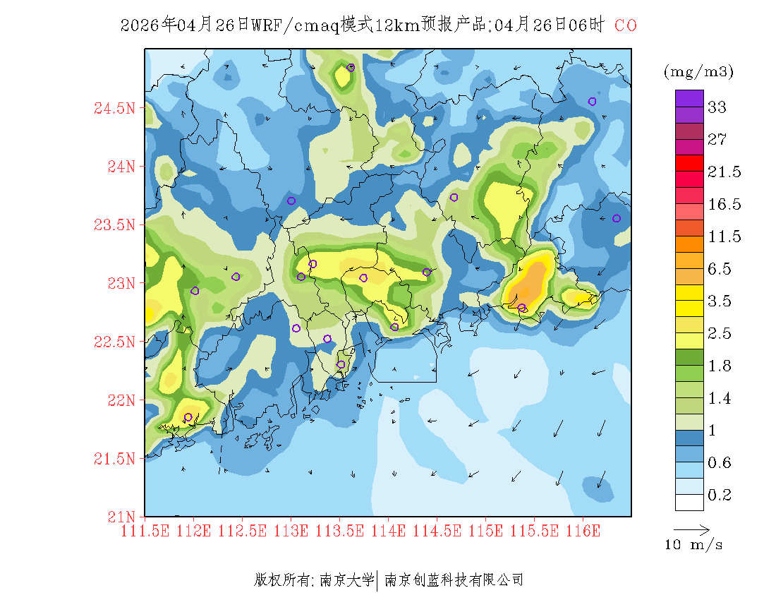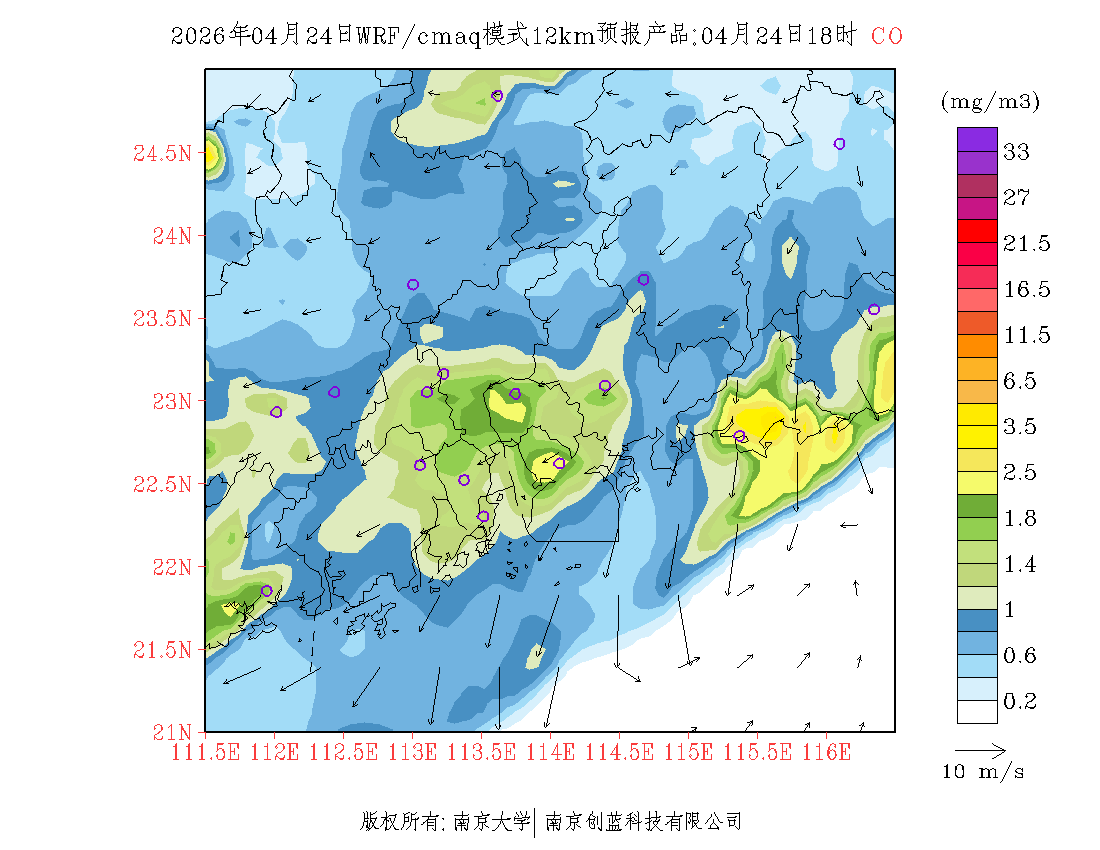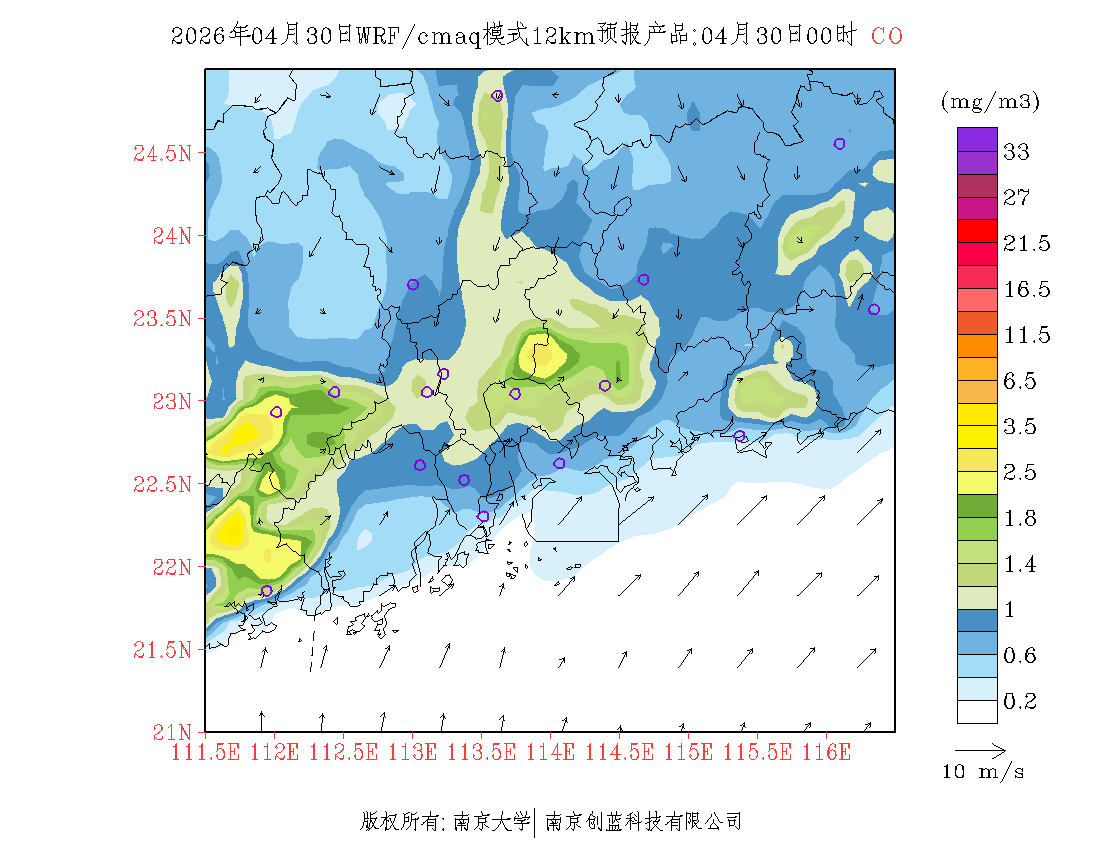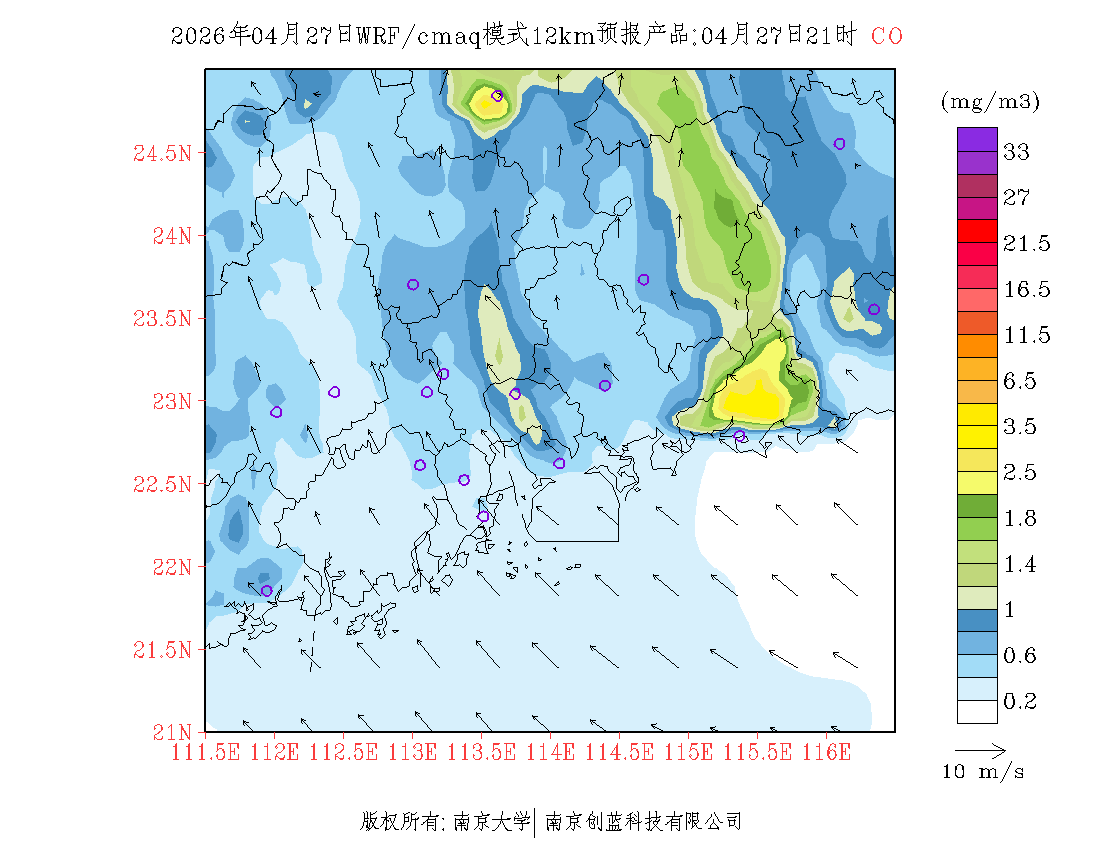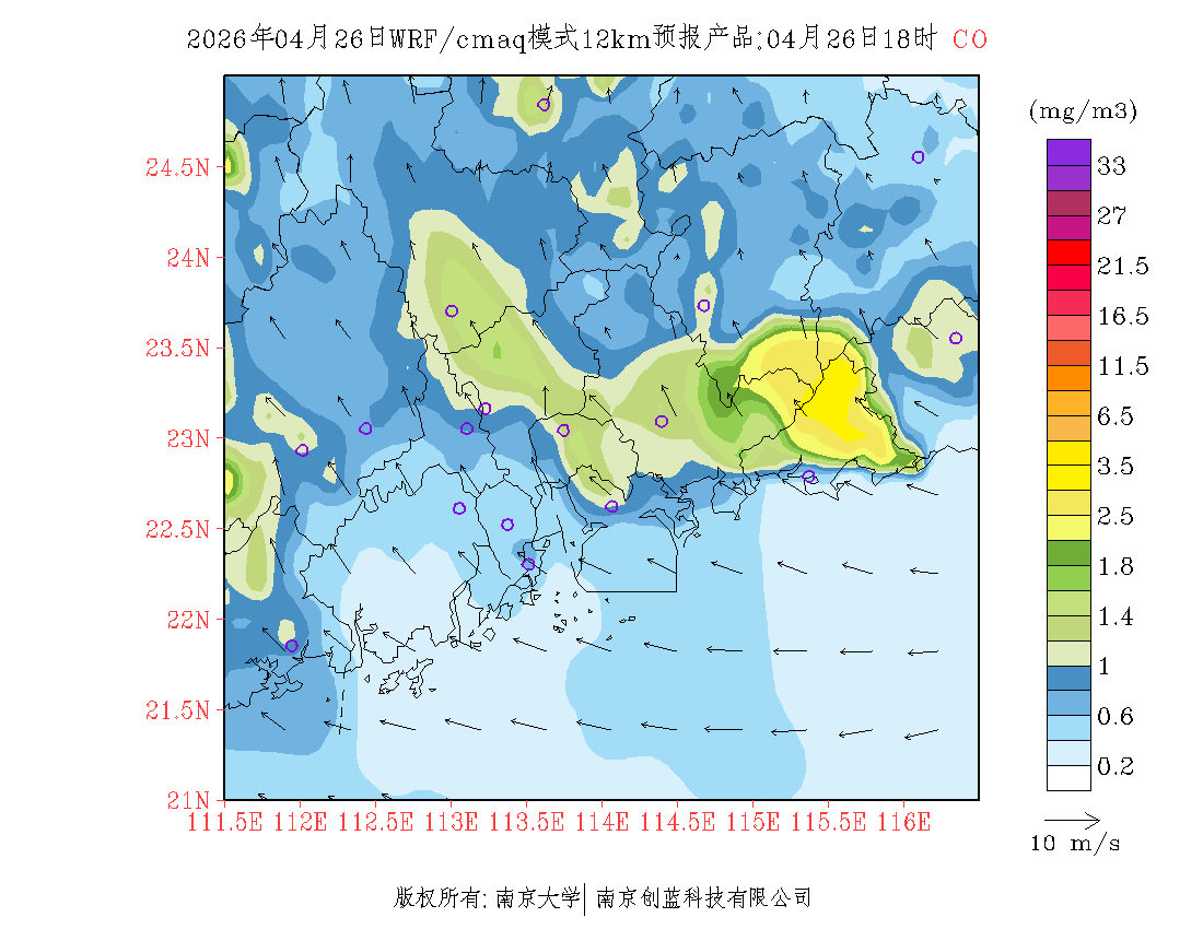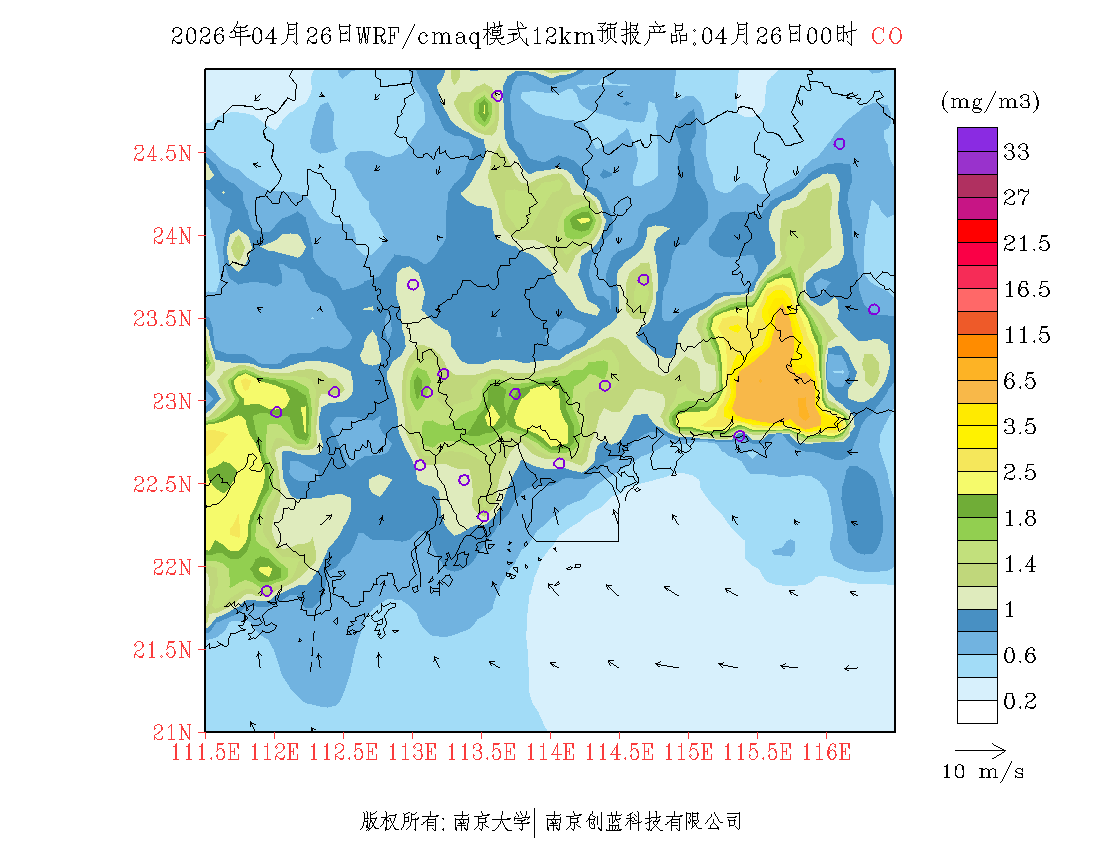 珠三角地区浓度预报场(12km)