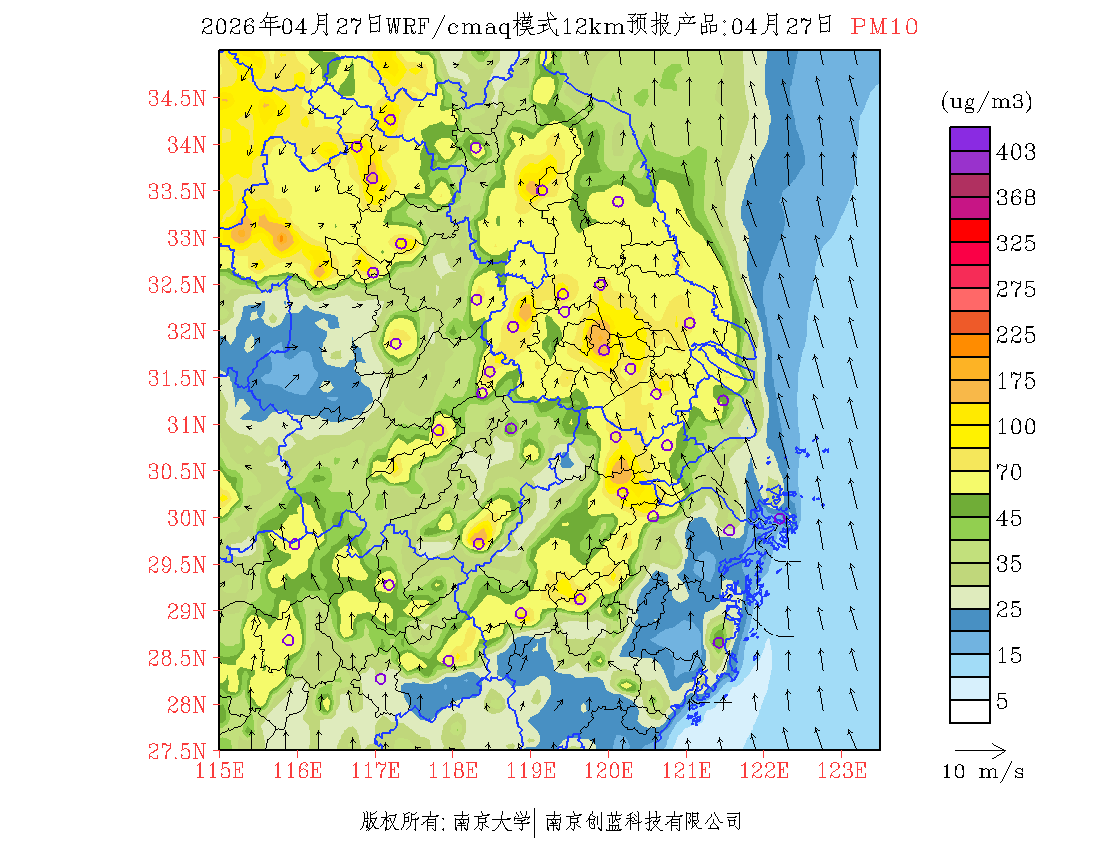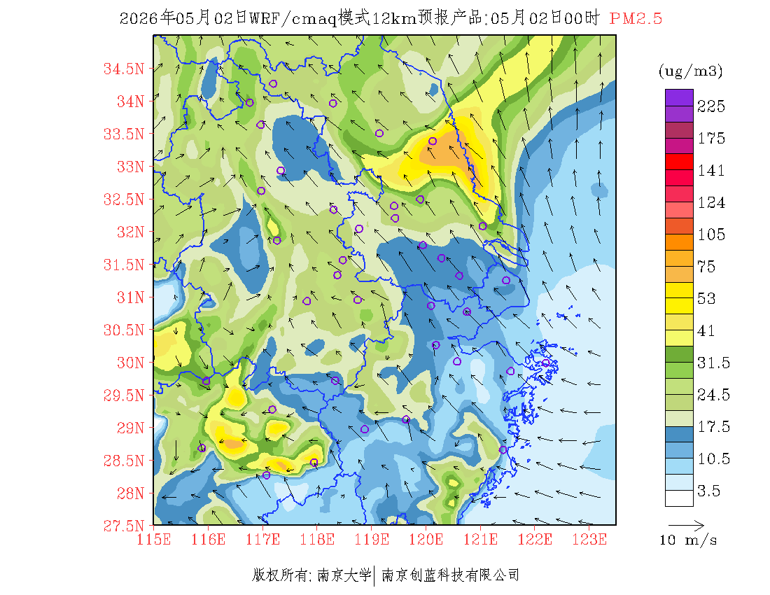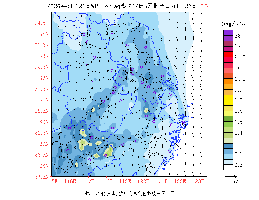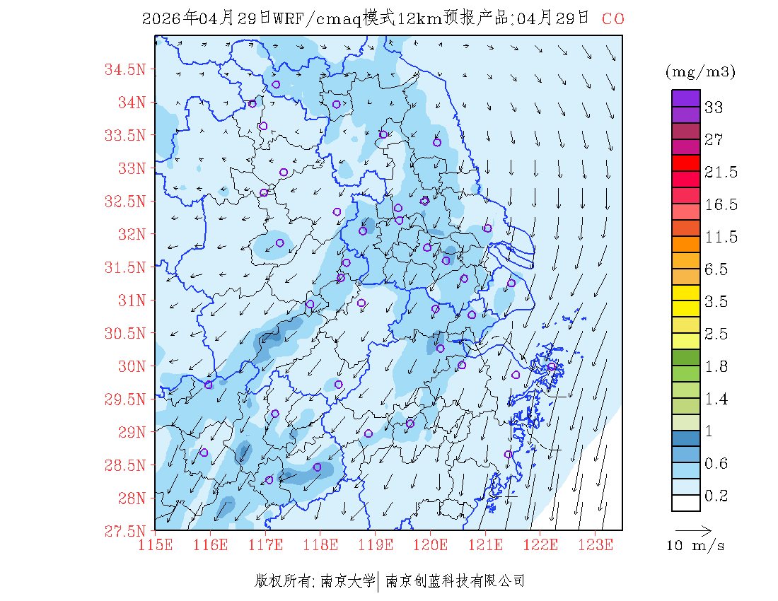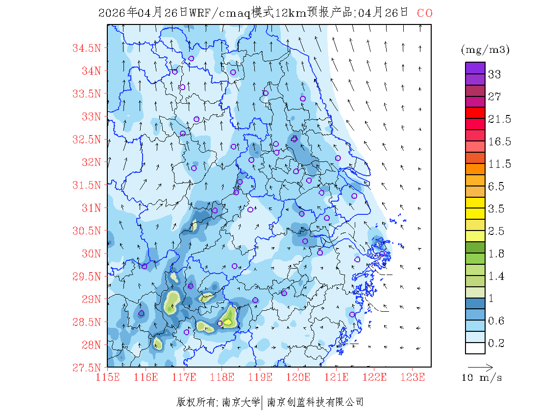 长三角地区浓度预报场(12km)