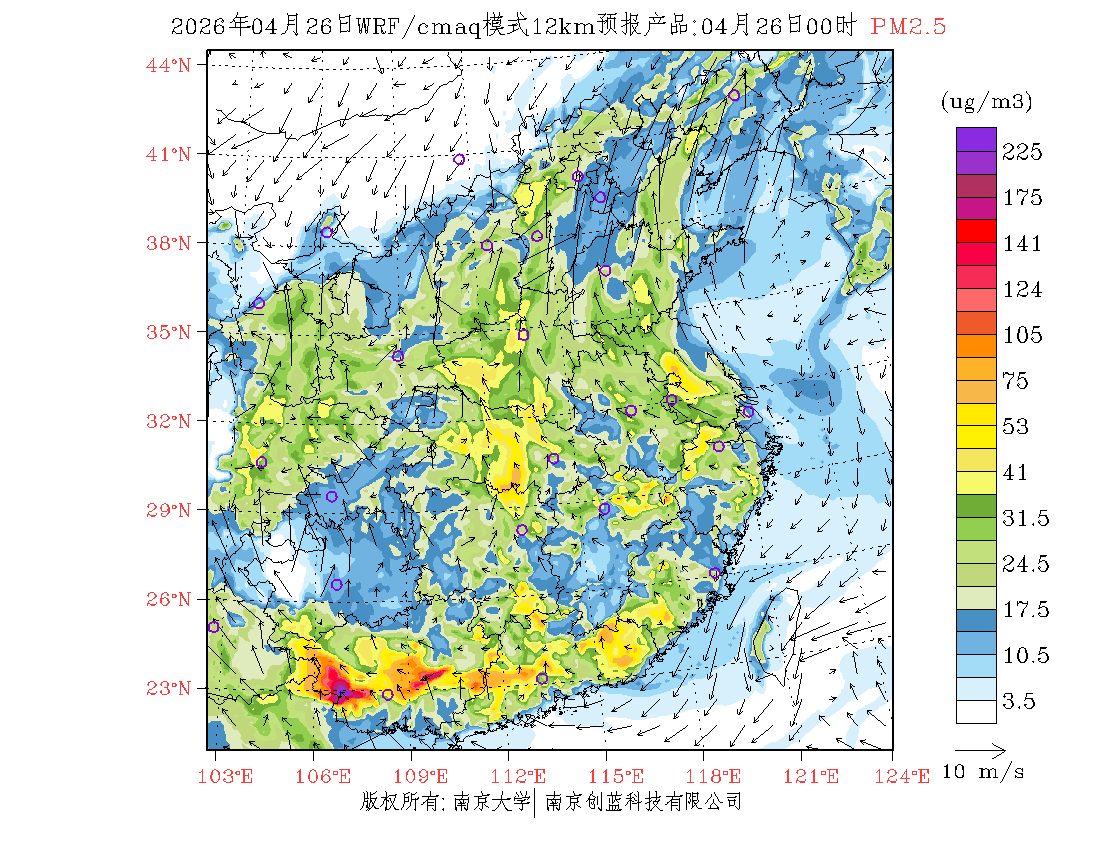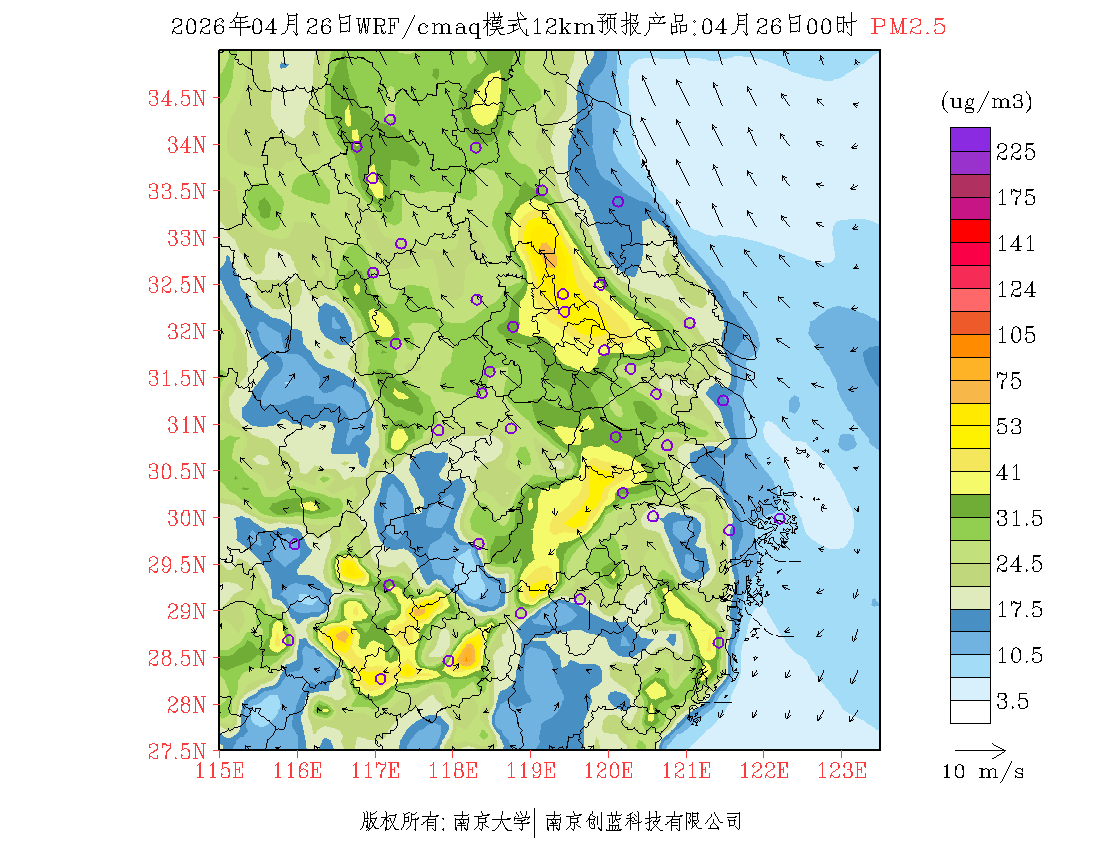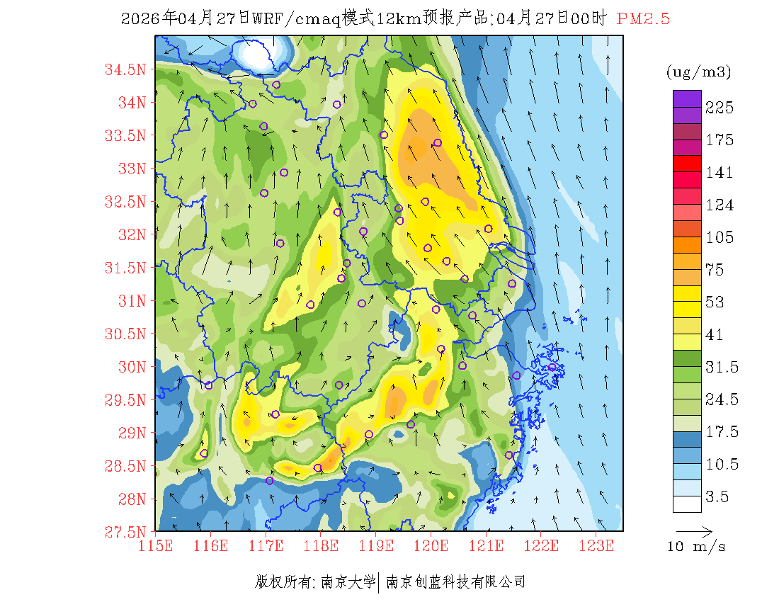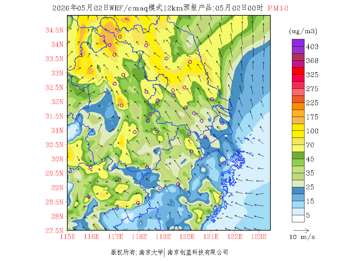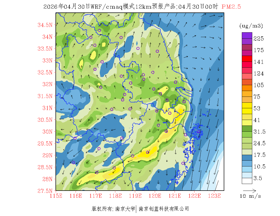 长三角地区浓度预报场(12km)