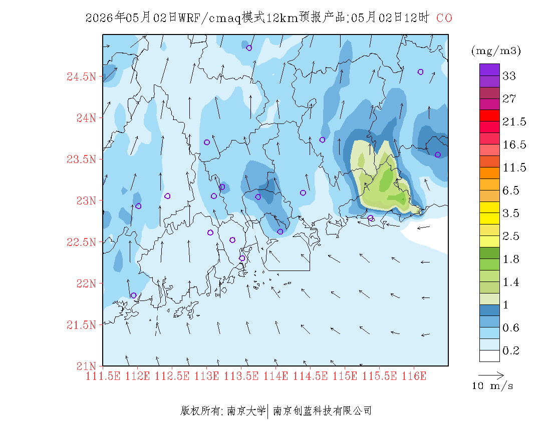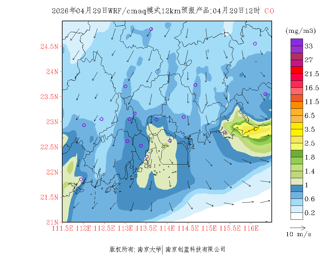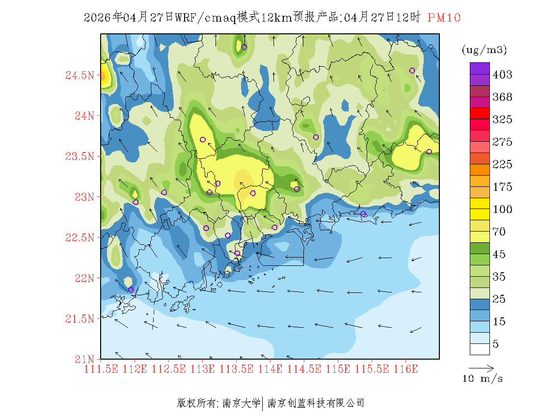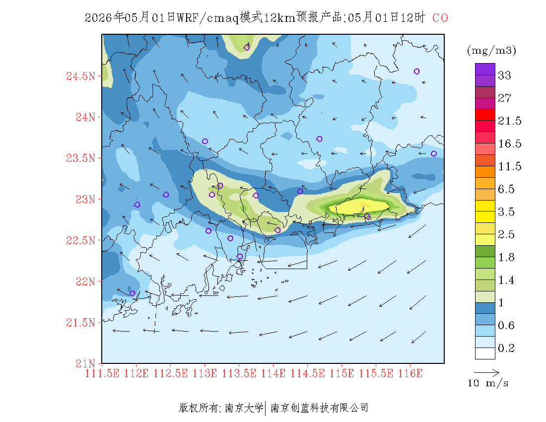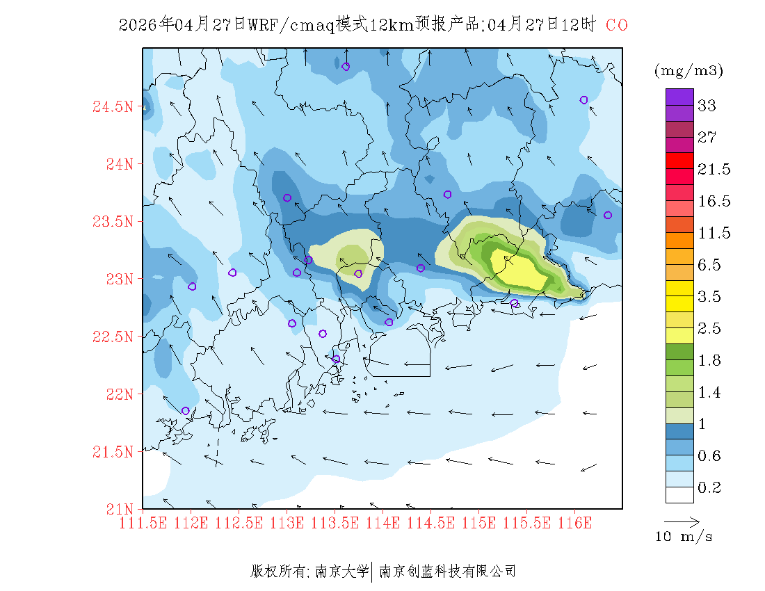 珠三角地区浓度预报场(12km)