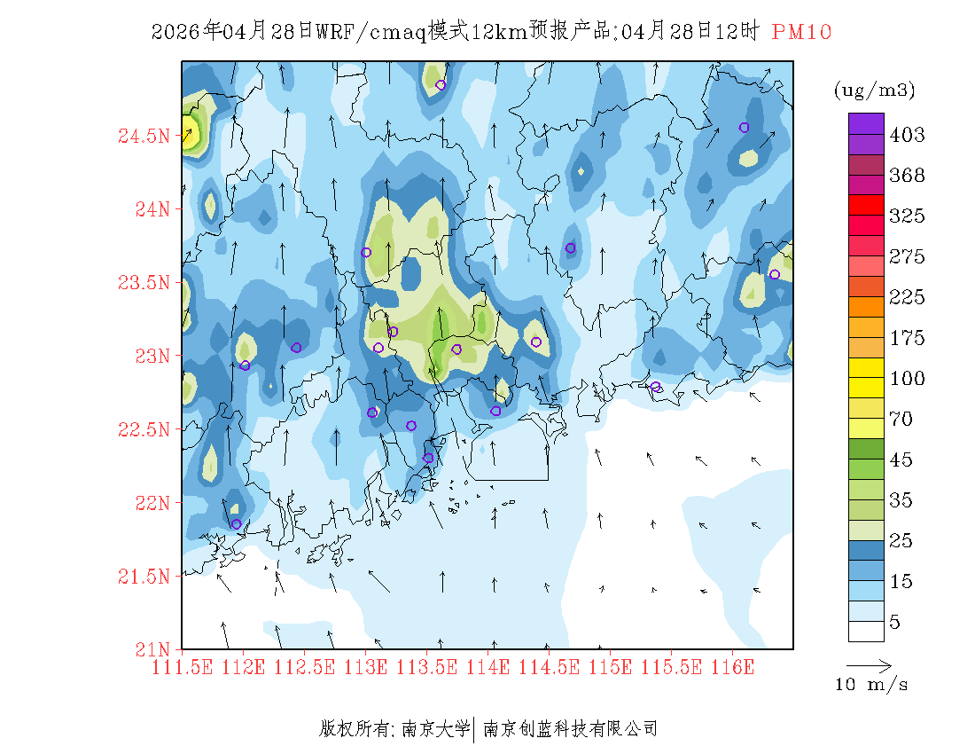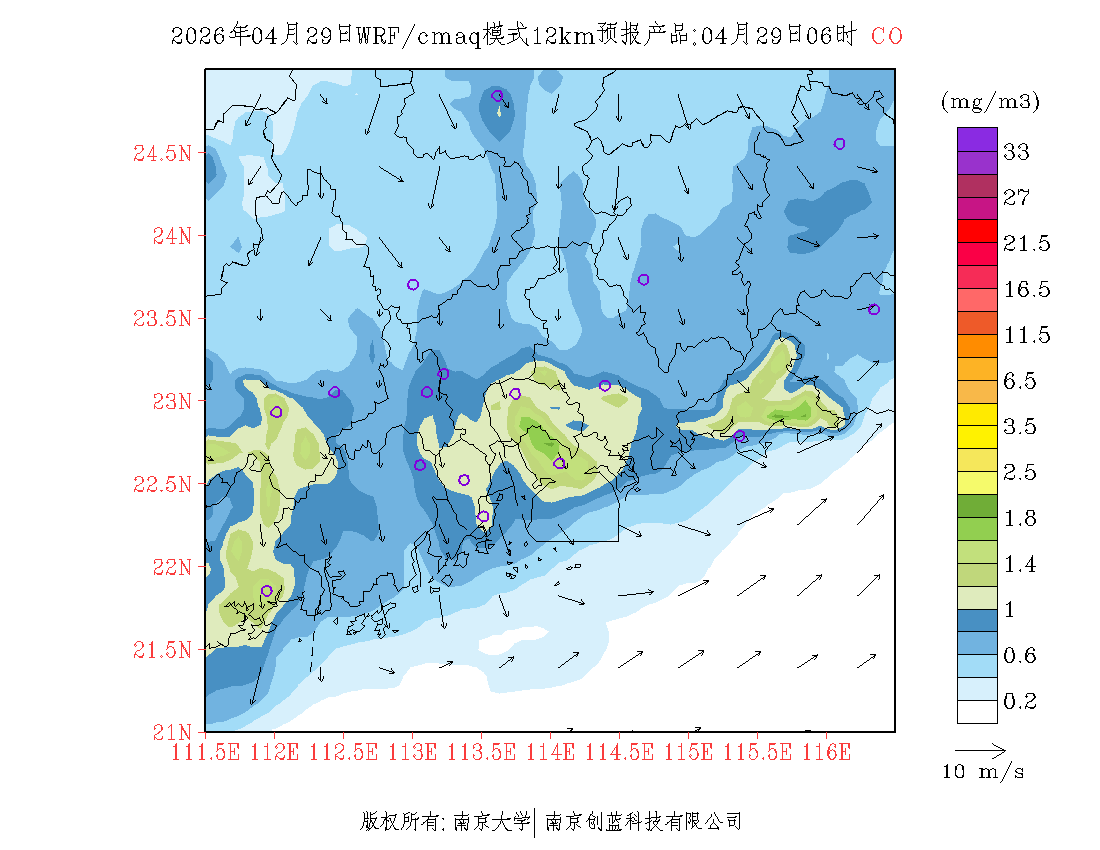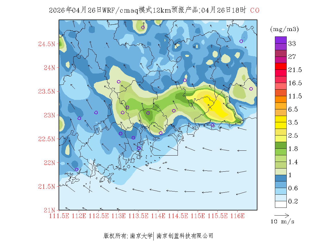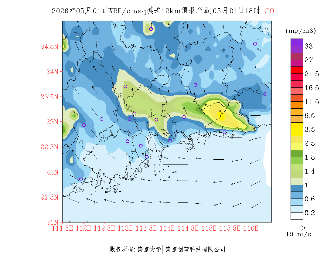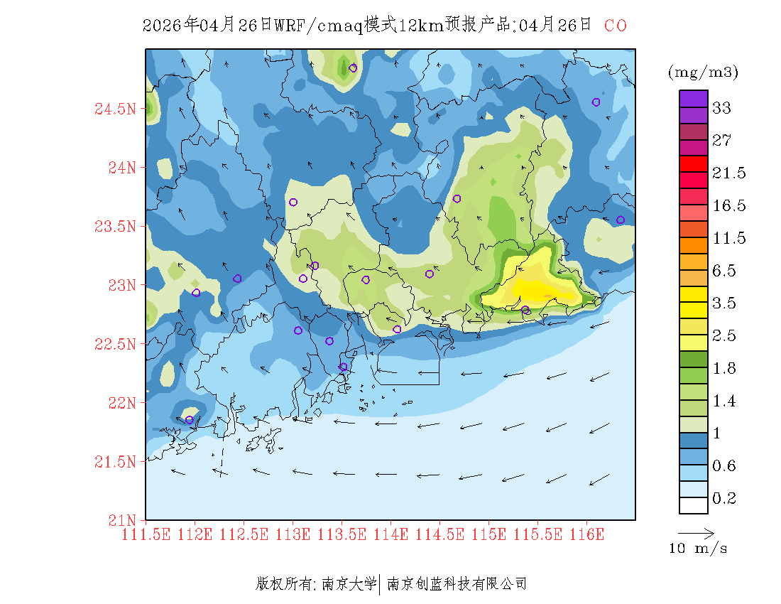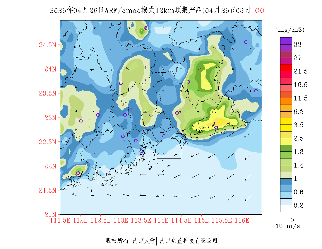 珠三角地区浓度预报场(12km)