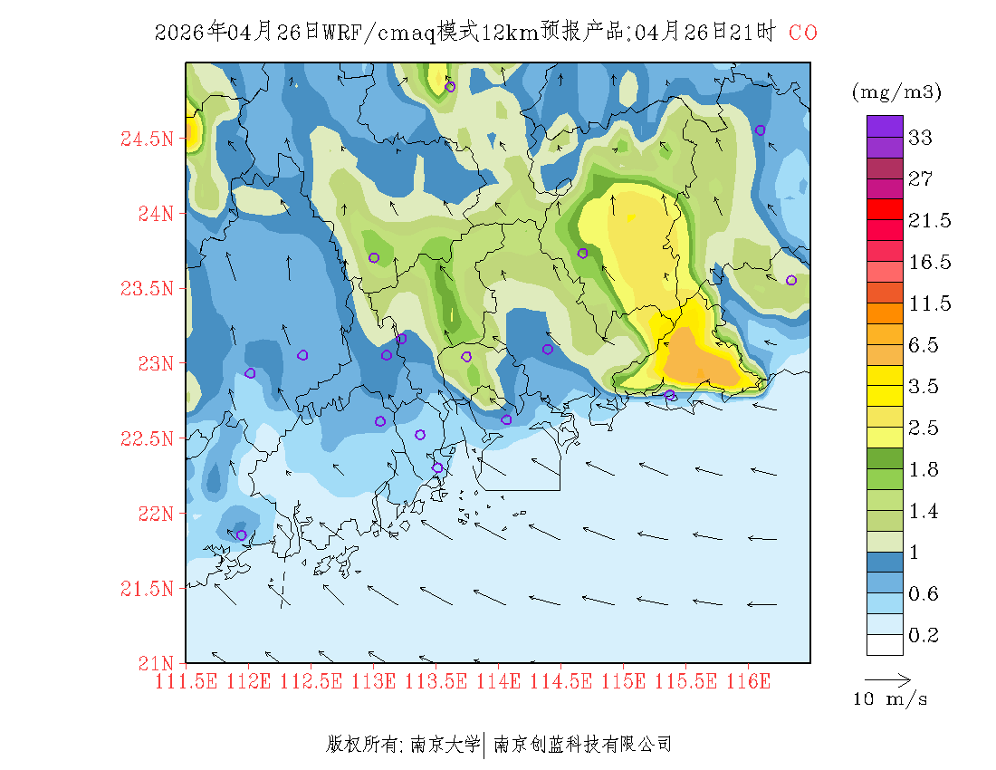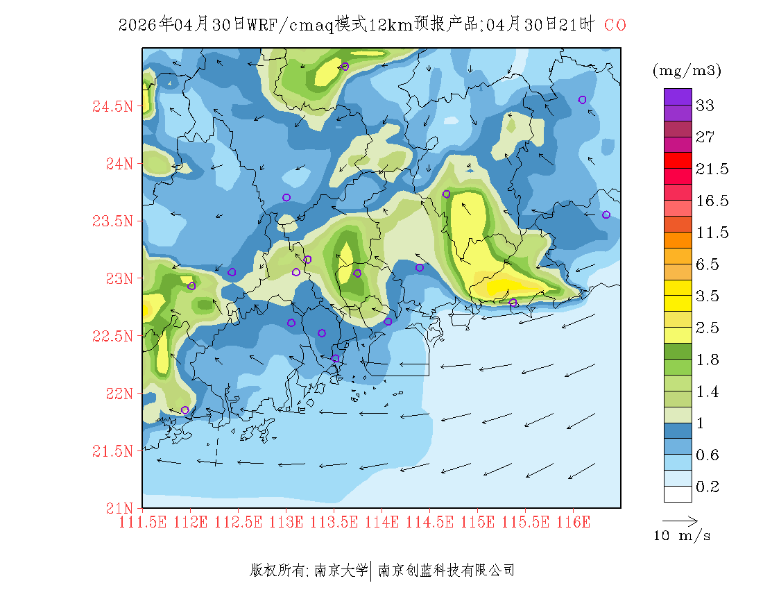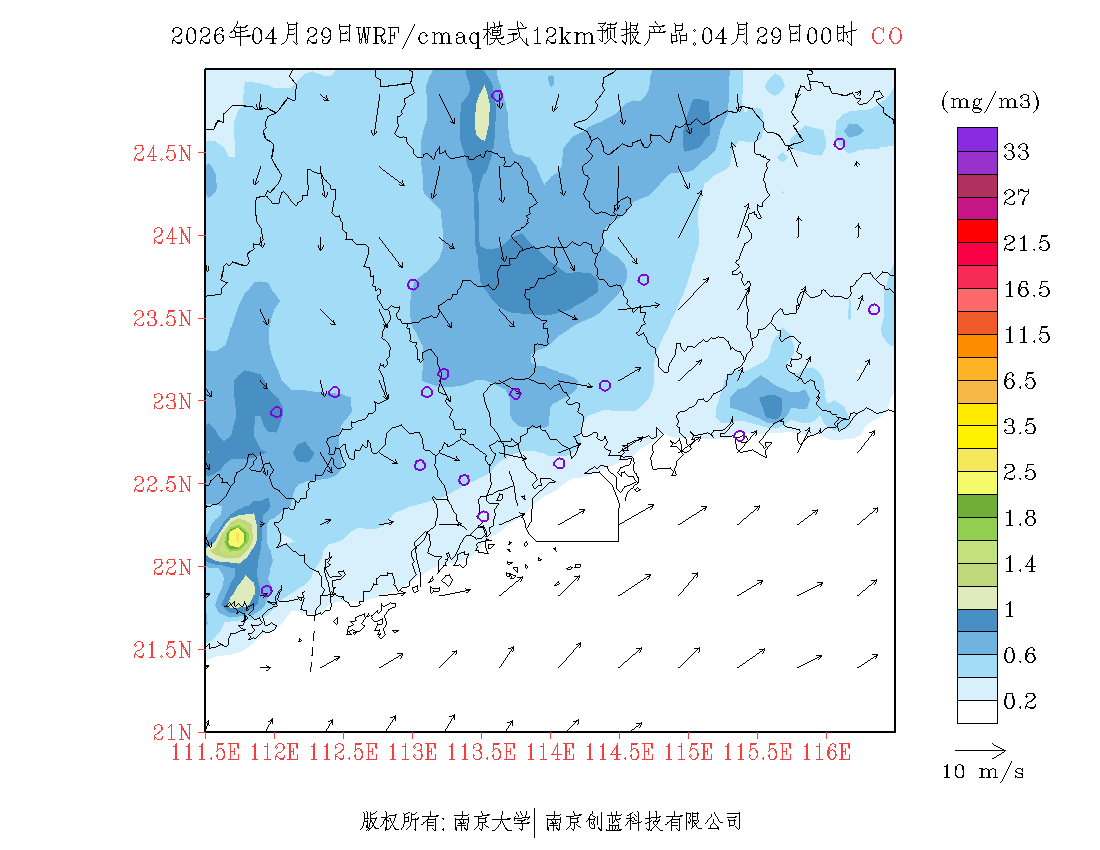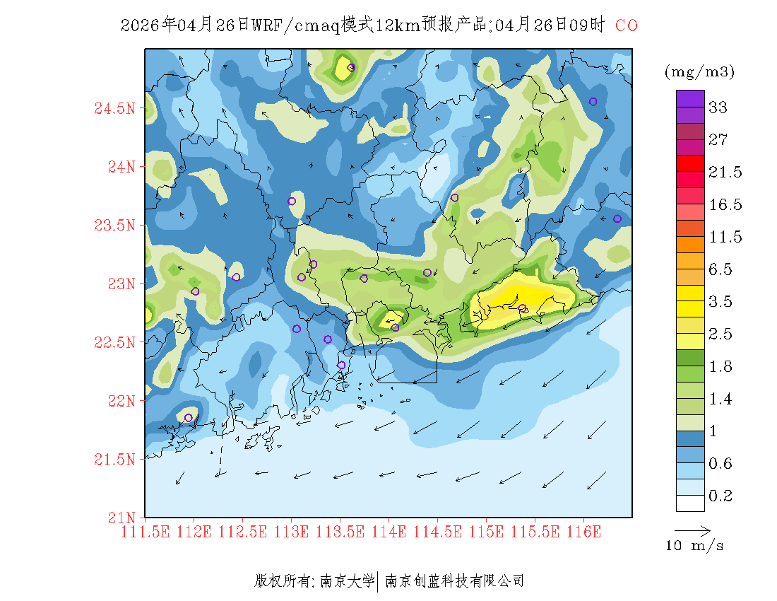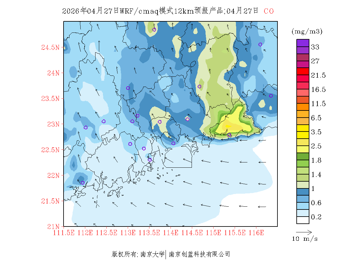 珠三角地区浓度预报场(12km)
