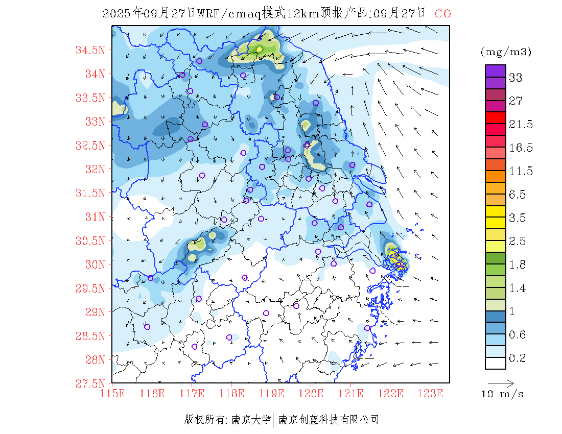 长三角地区浓度预报场(12km)