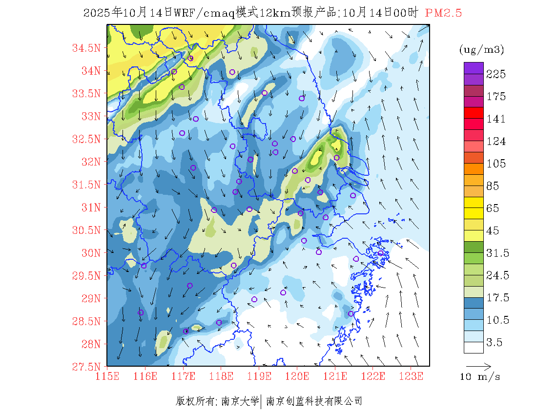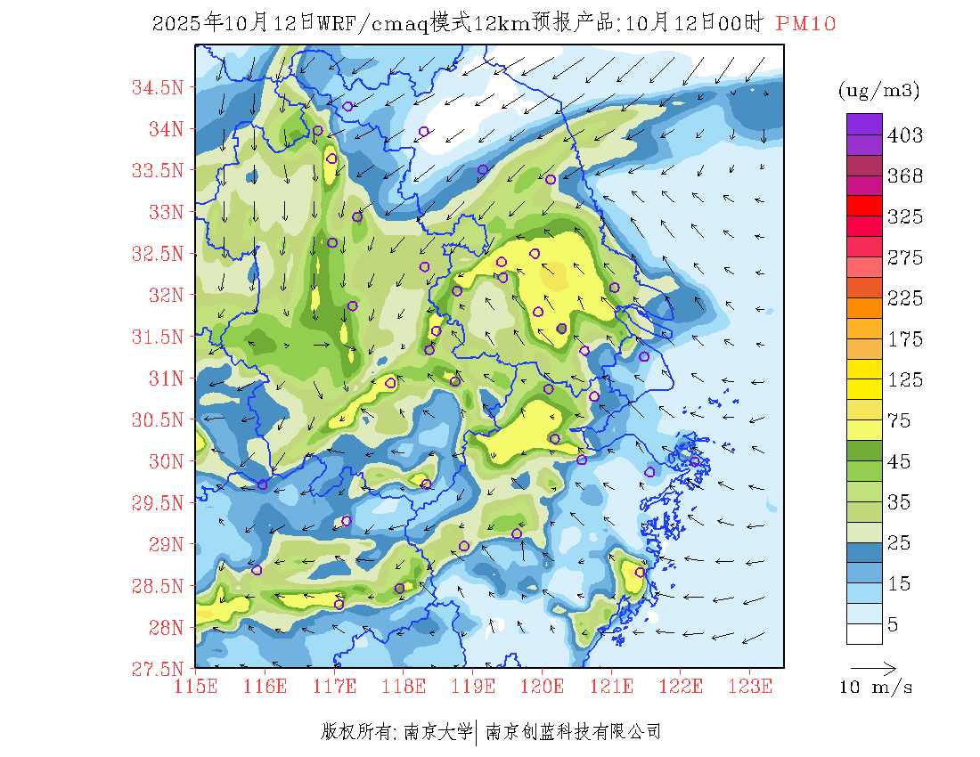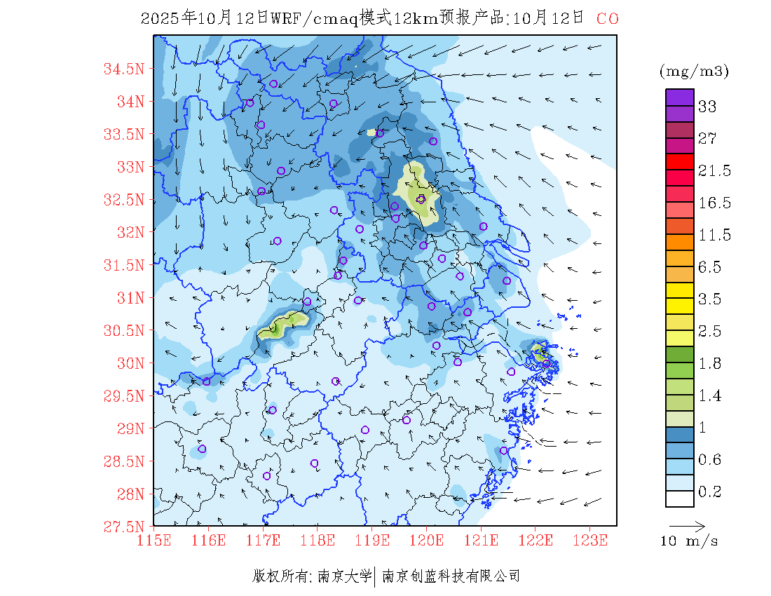 长三角地区浓度预报场(12km)