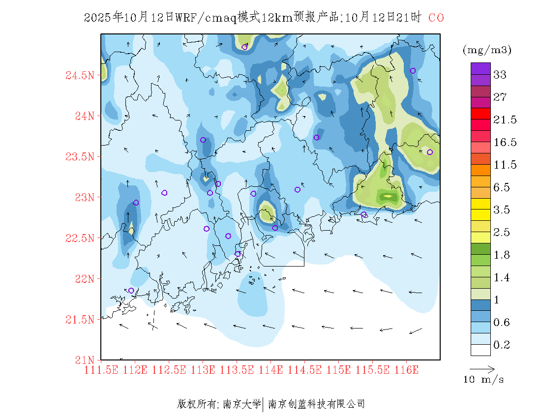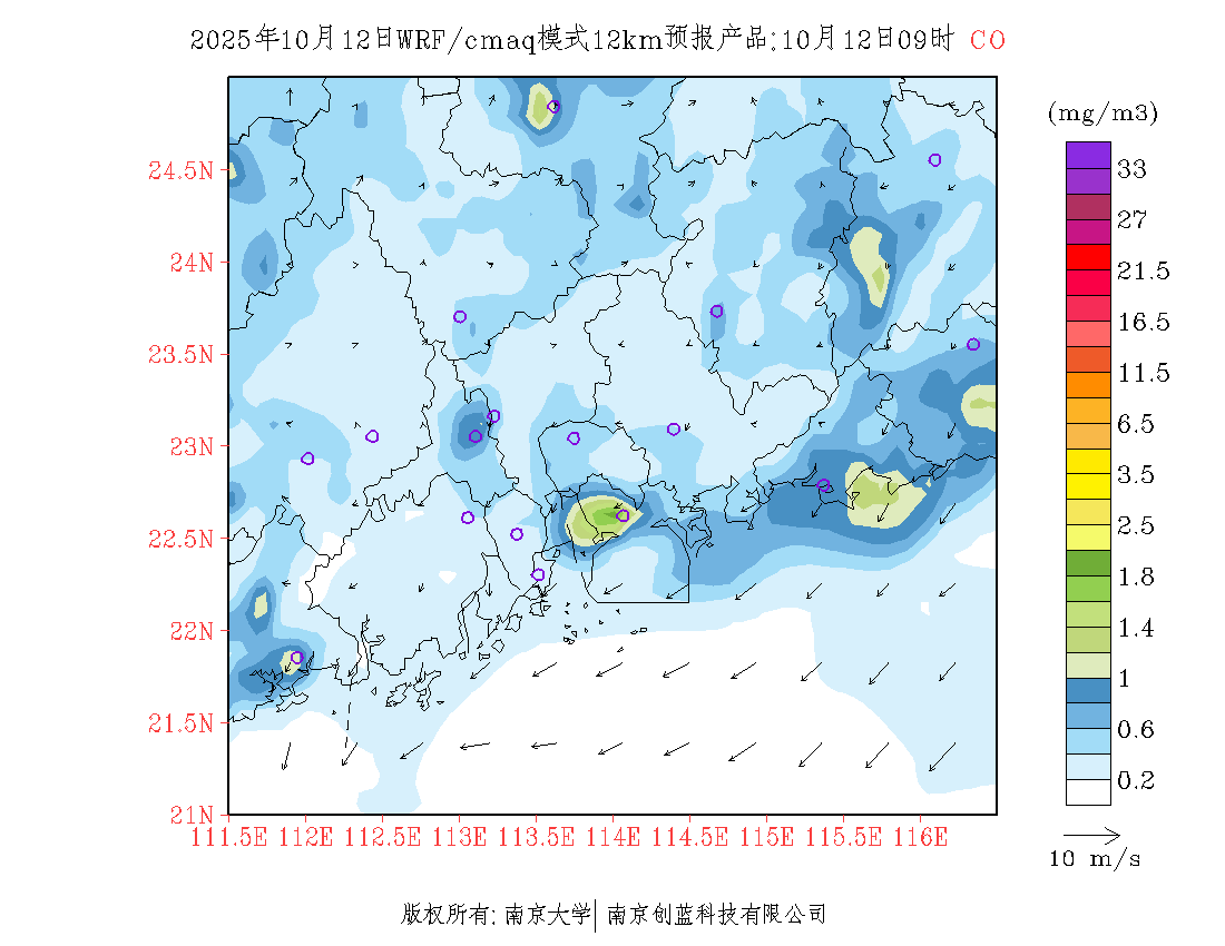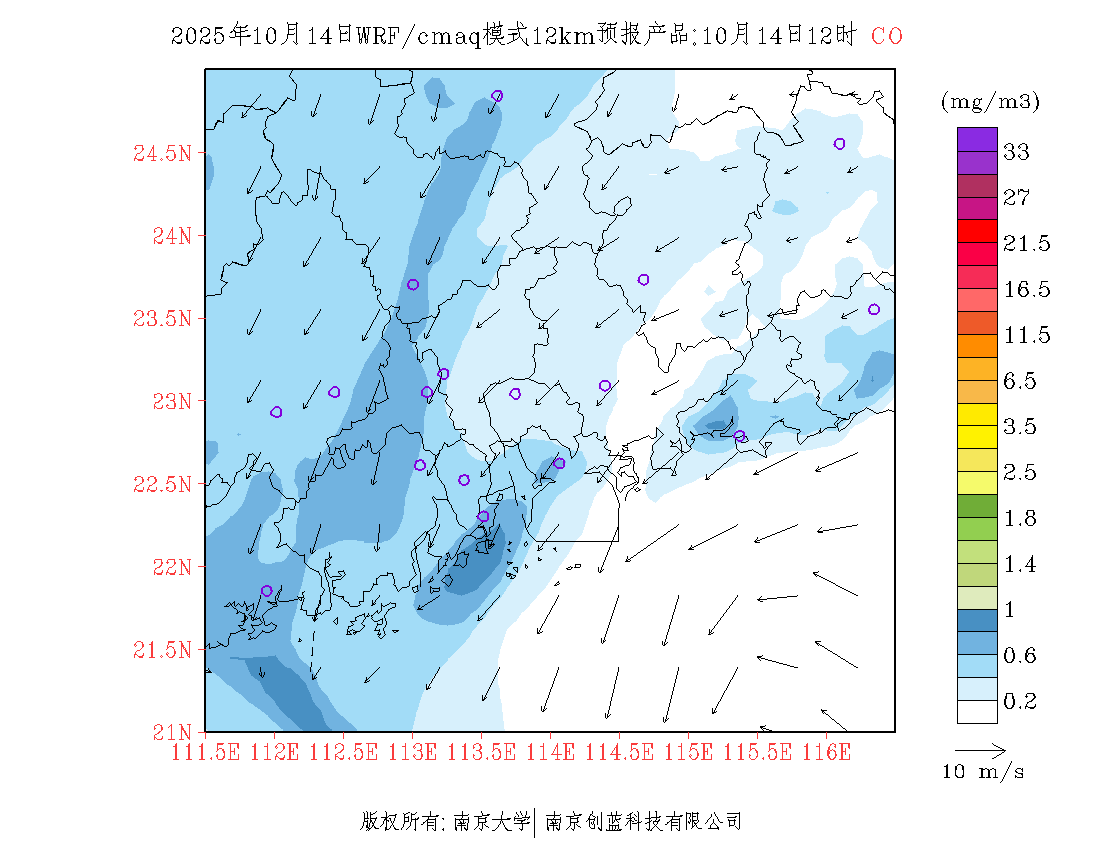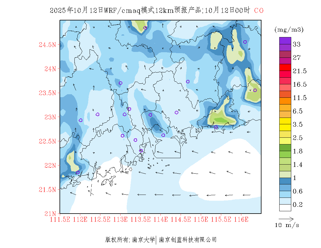 珠三角地区浓度预报场(12km)