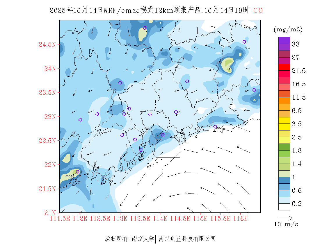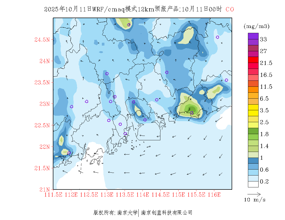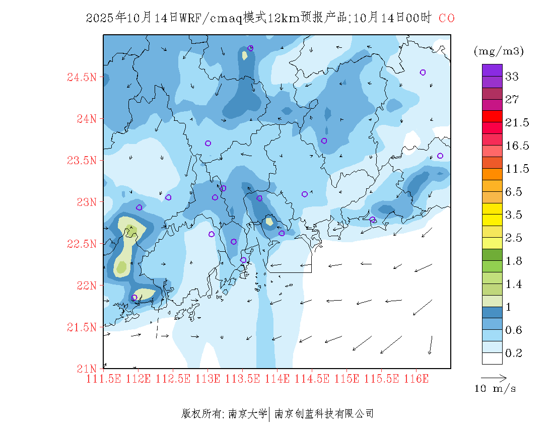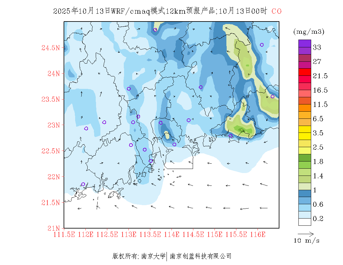 珠三角地区浓度预报场(12km)