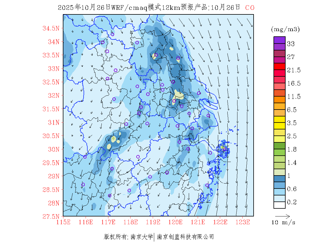 长三角地区浓度预报场(12km)