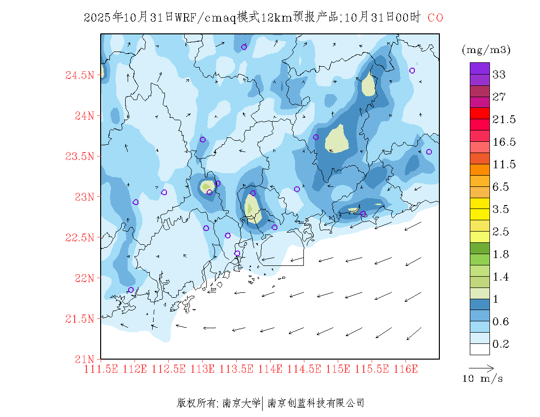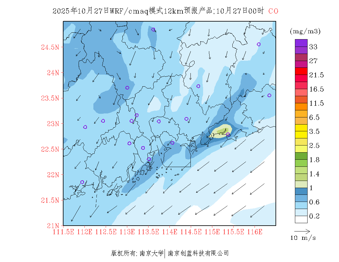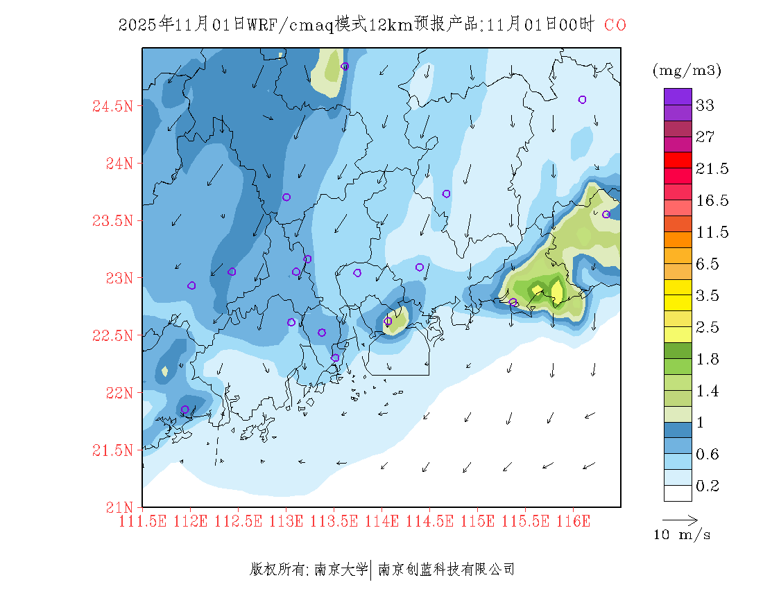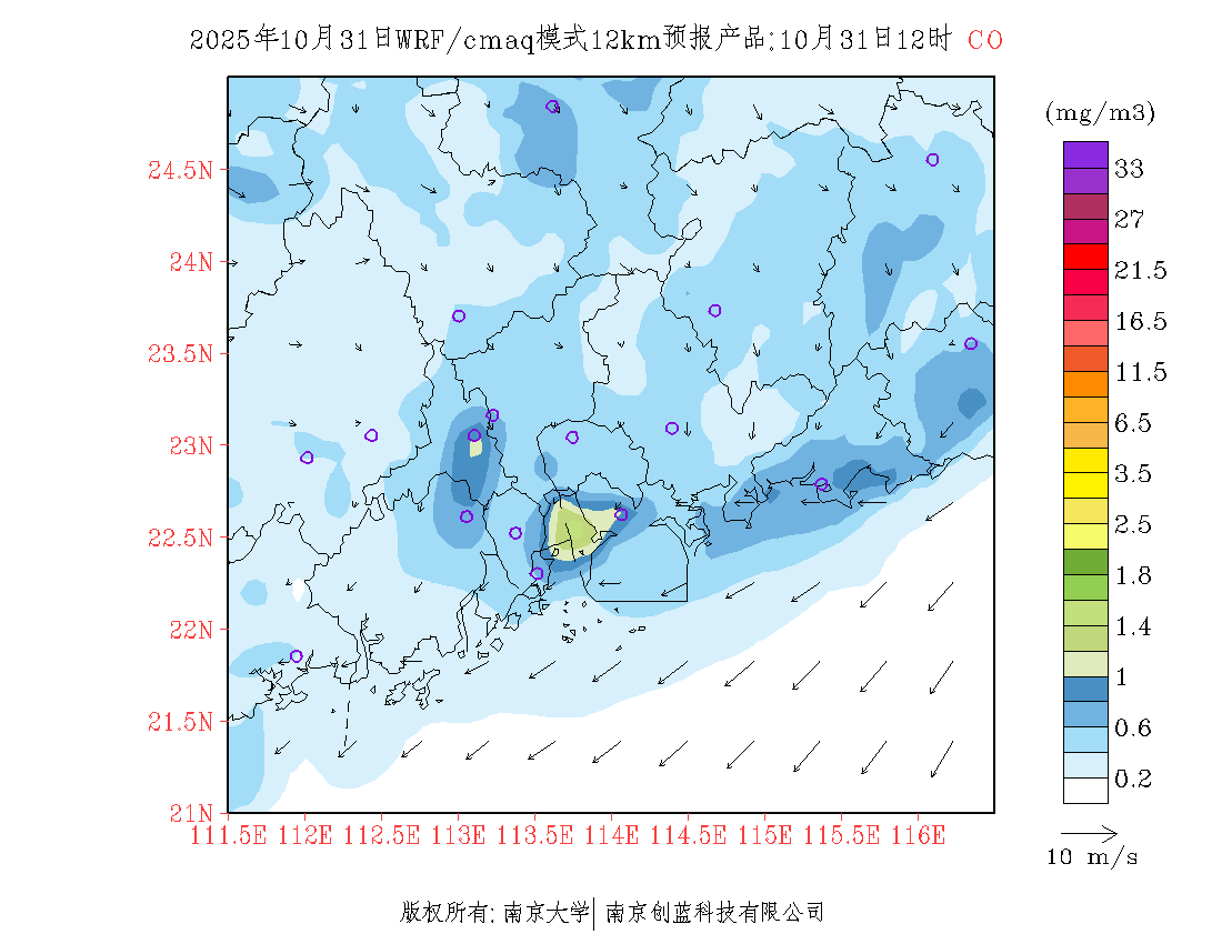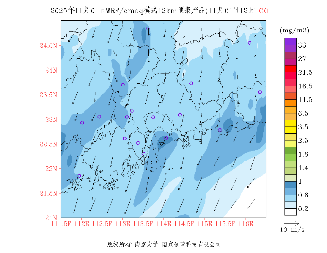 珠三角地区浓度预报场(12km)